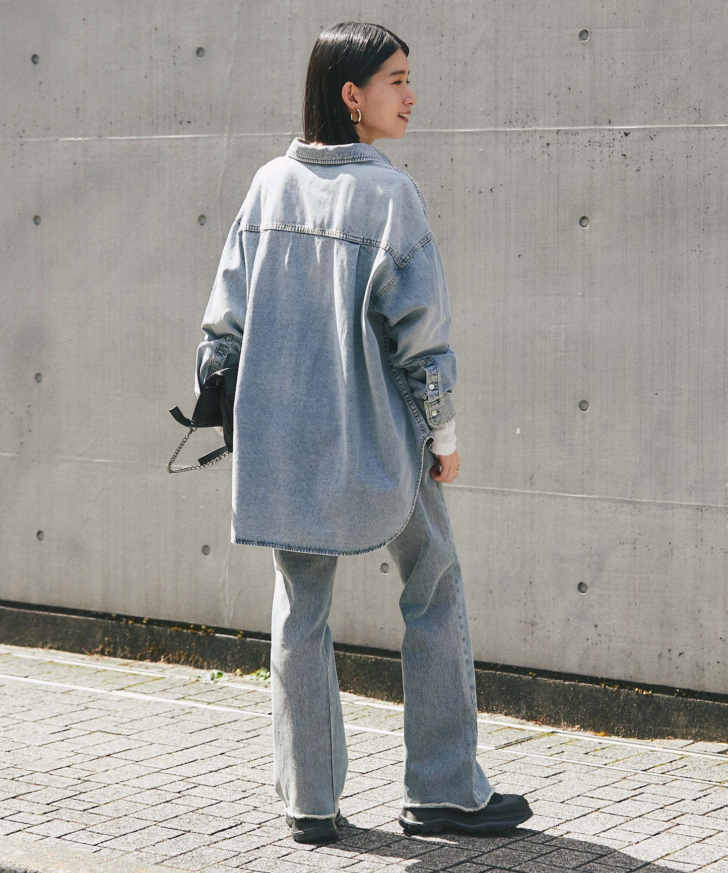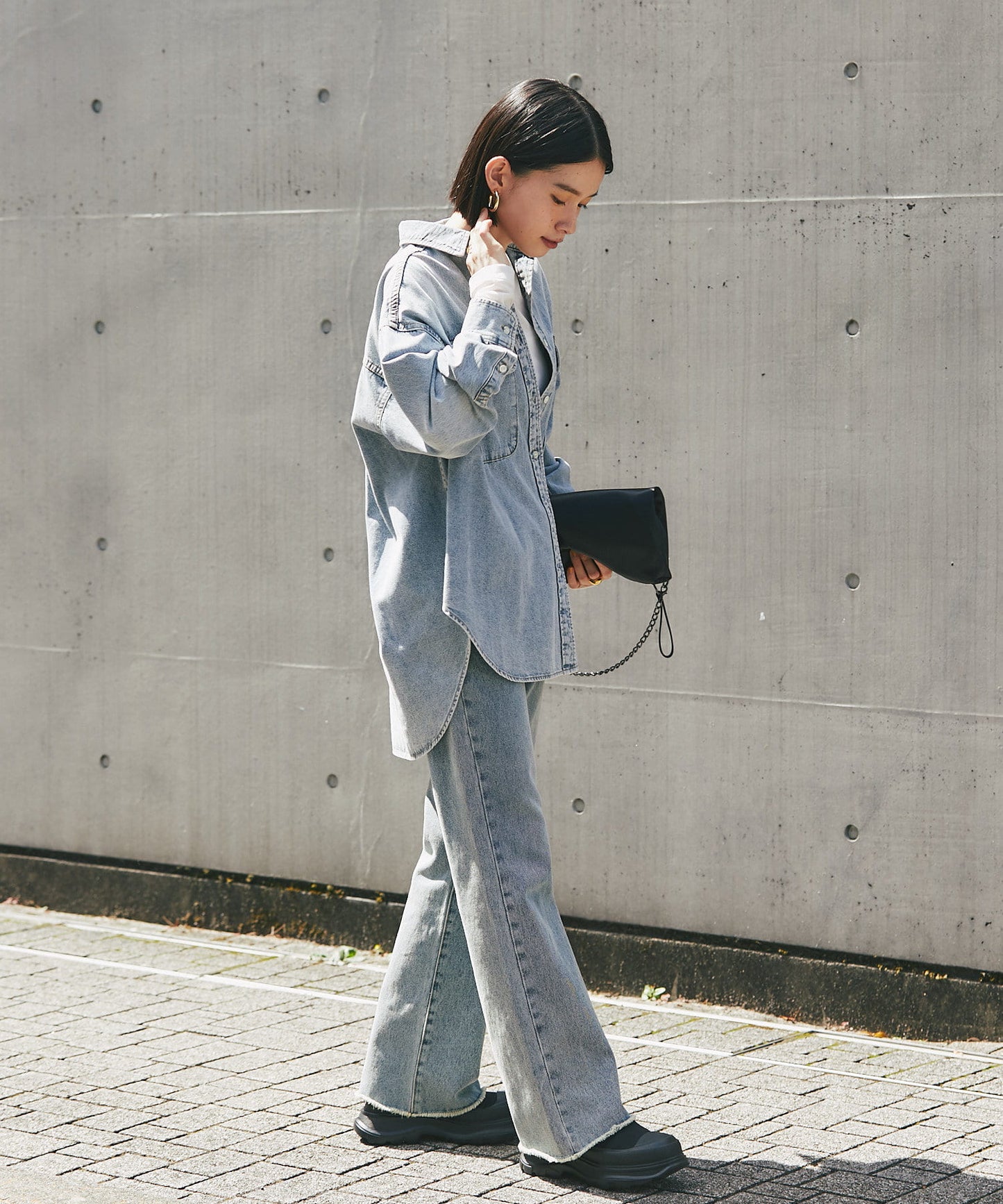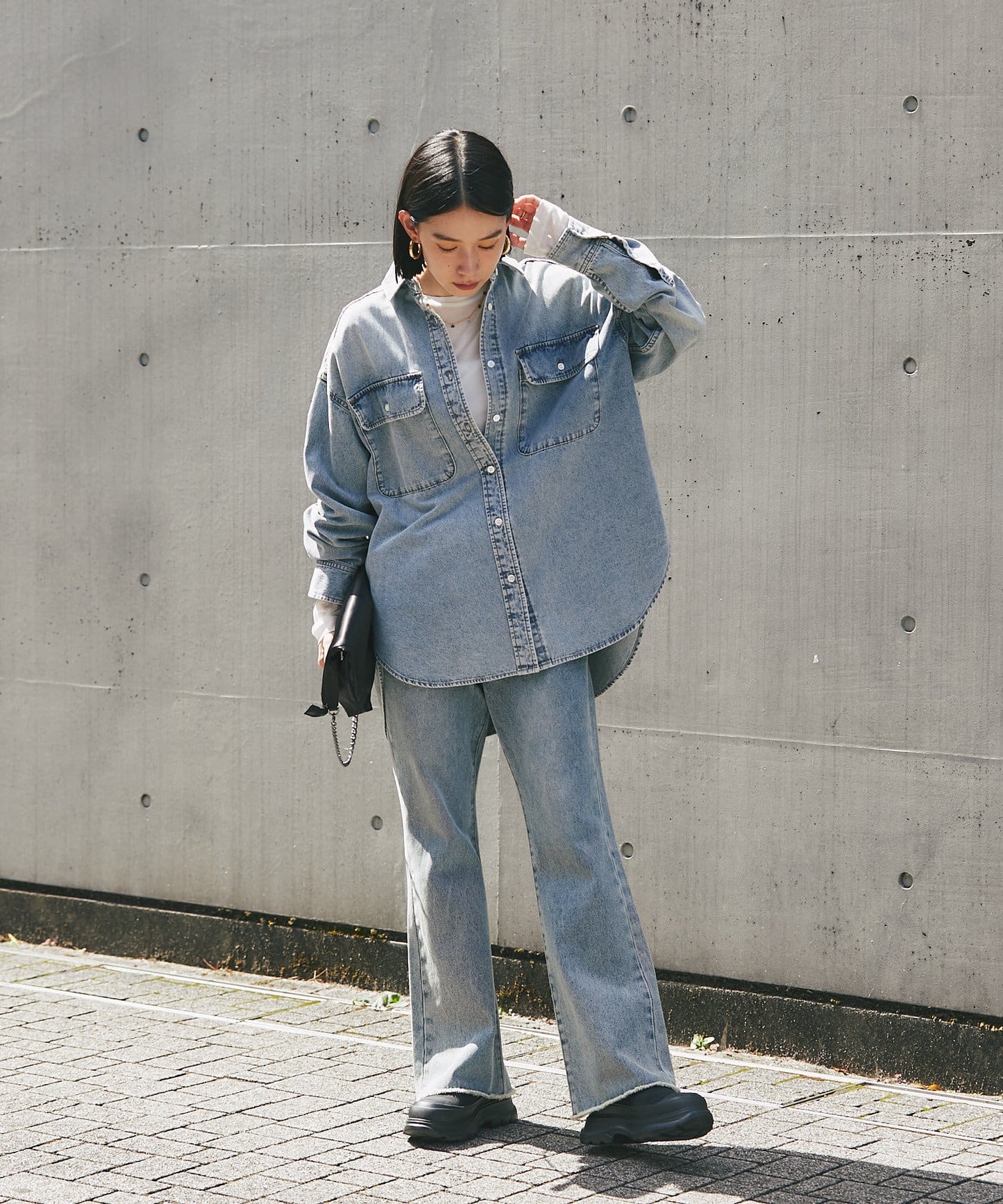 顏色與 MONN 彩繪牛仔布和喇叭牛仔布相同,所以也推薦牛仔布搭牛仔布的時髦款式。