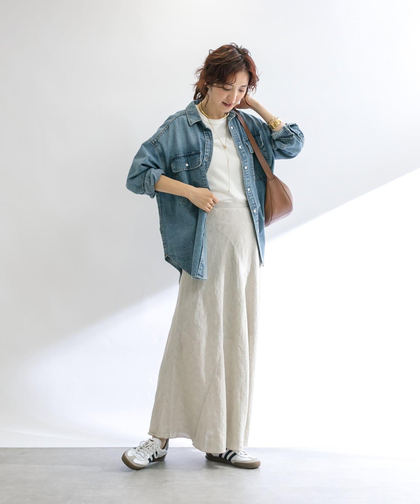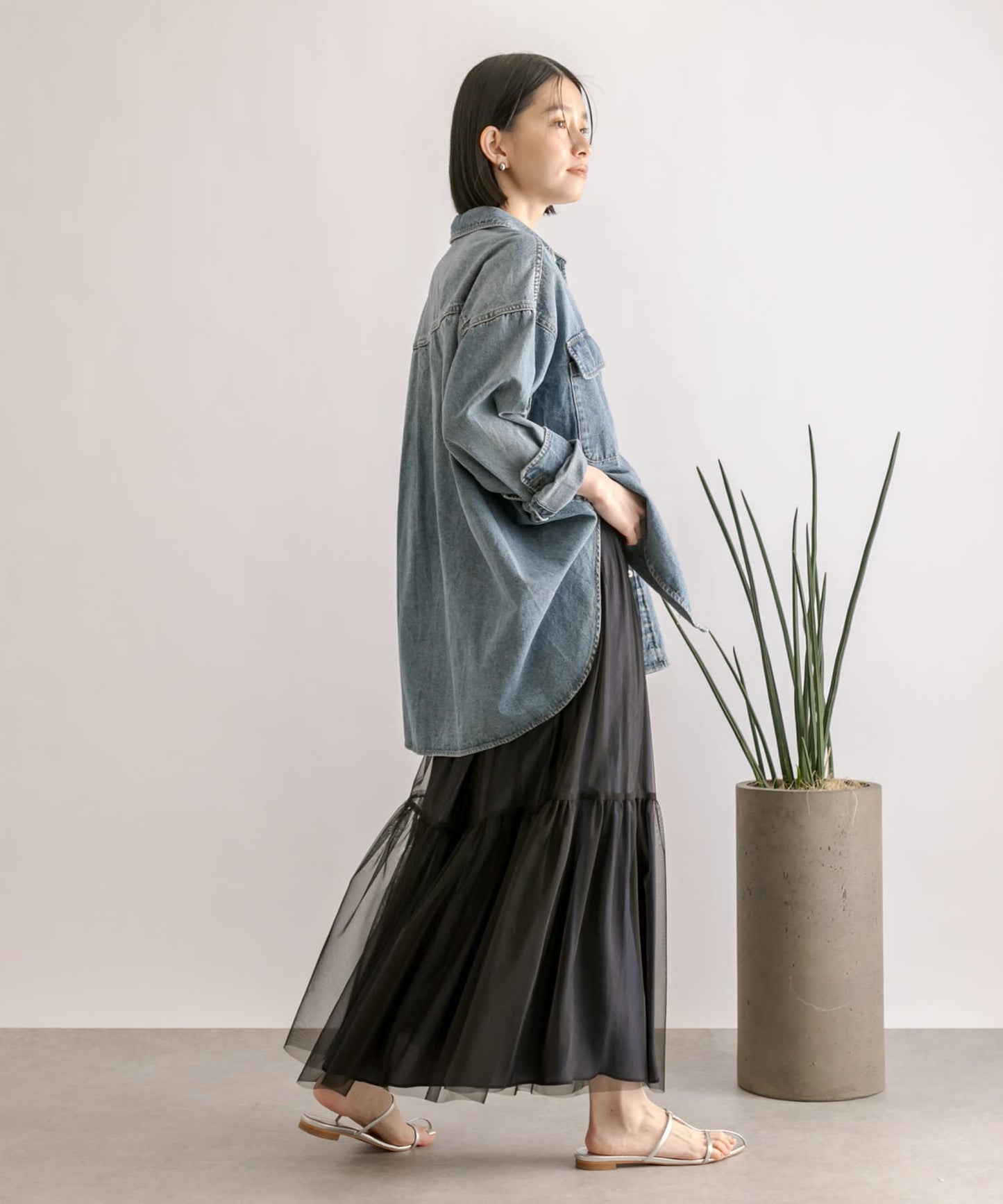 由於面料的質感即使單穿也很方便,簡單地作為牛仔襯衫穿也不錯,多件單品在季節交替時作為斗篷穿也不錯。