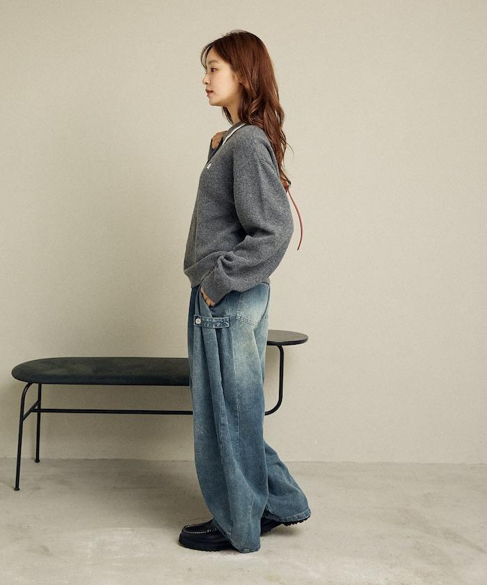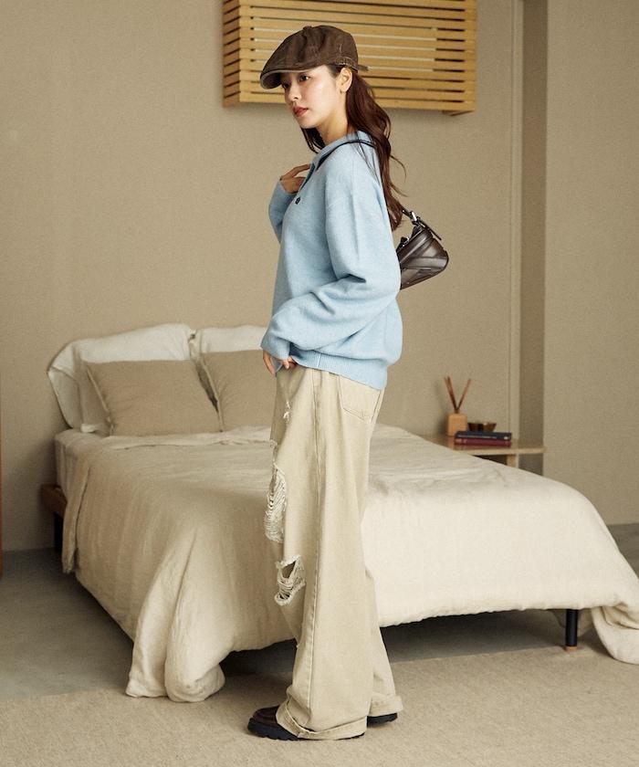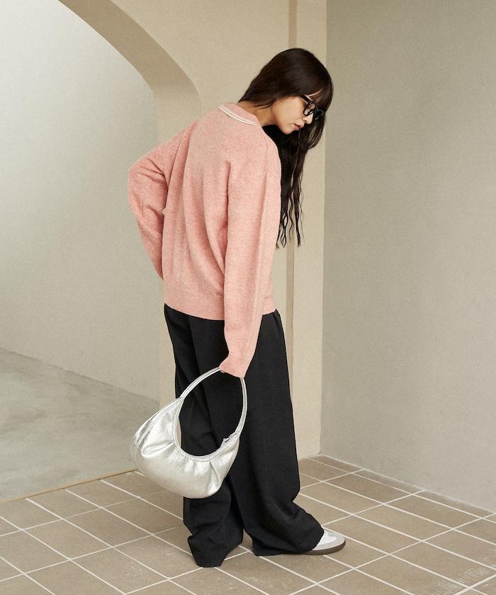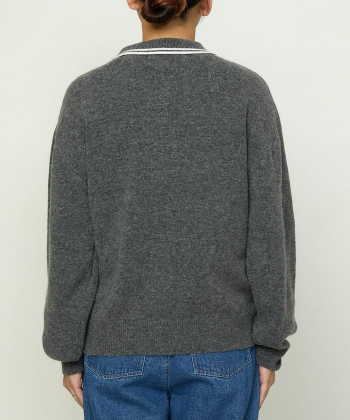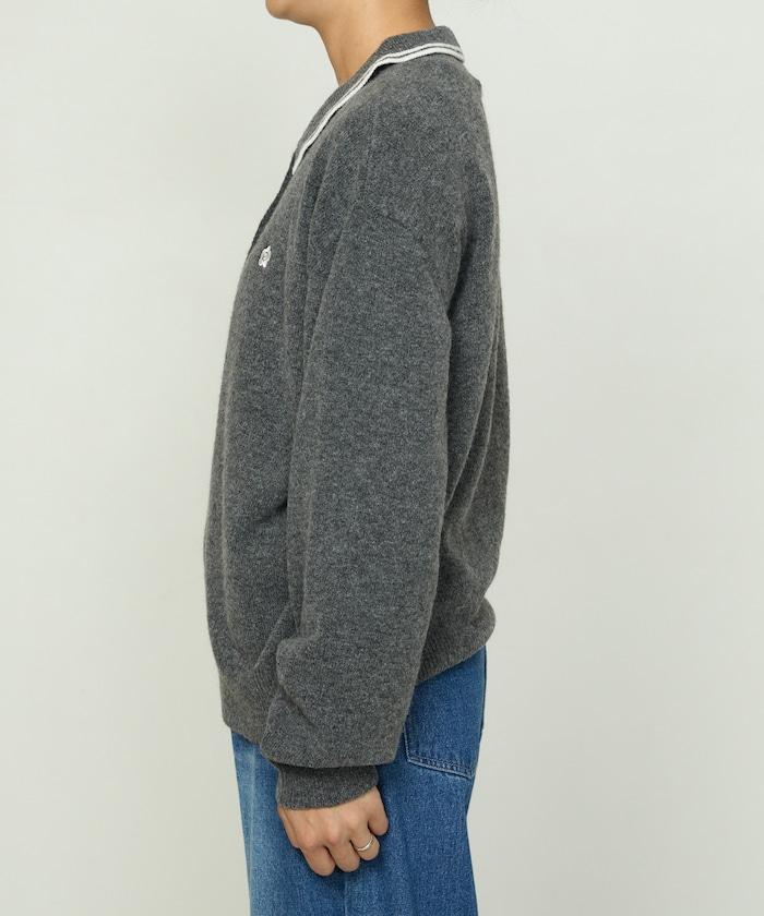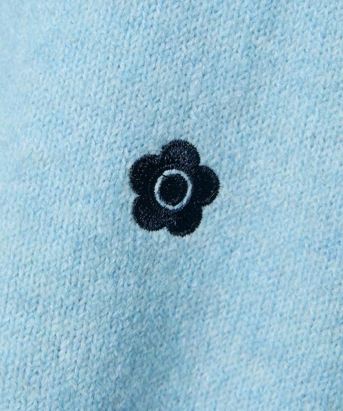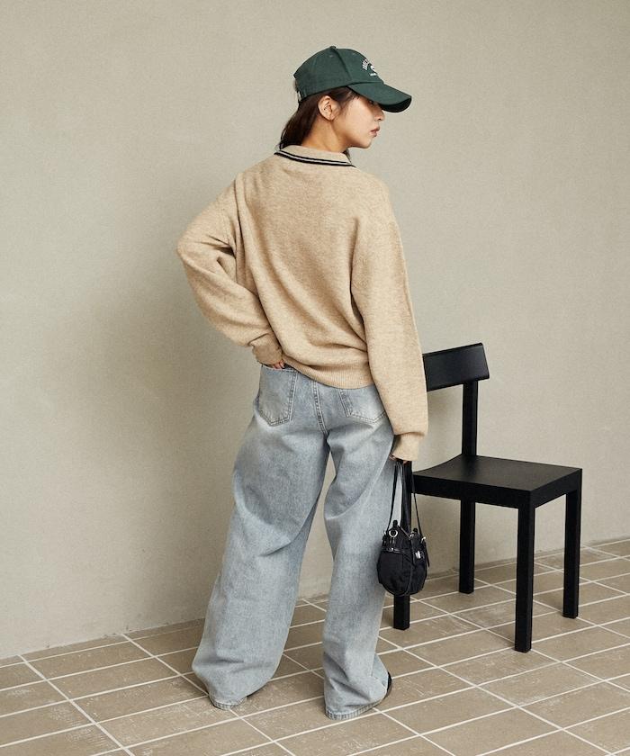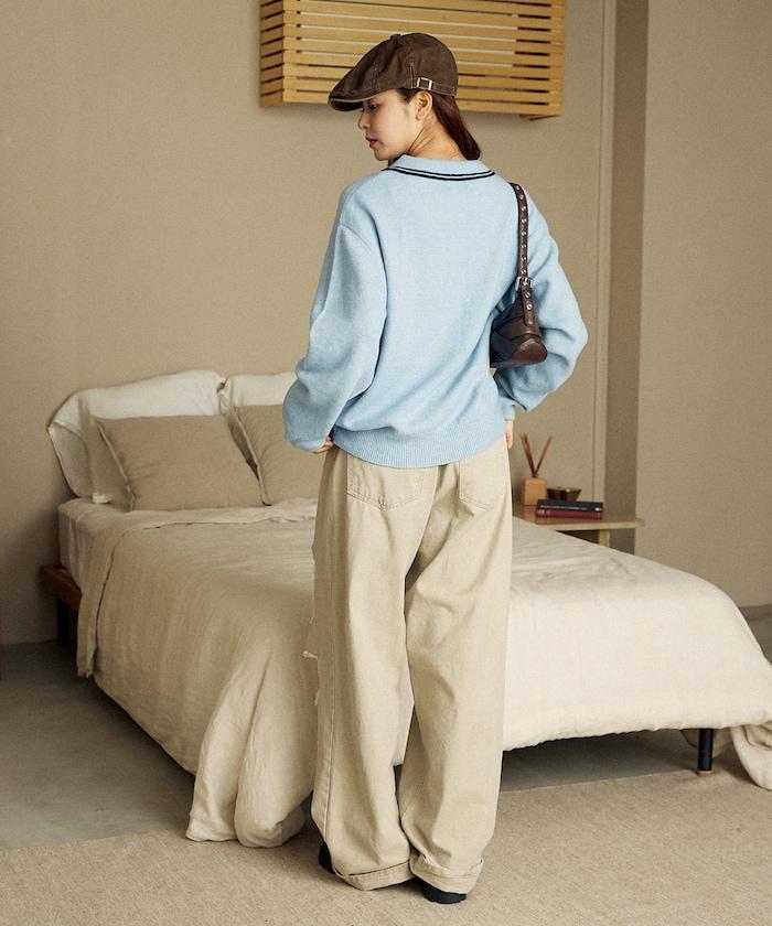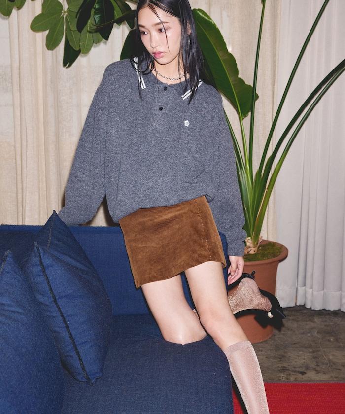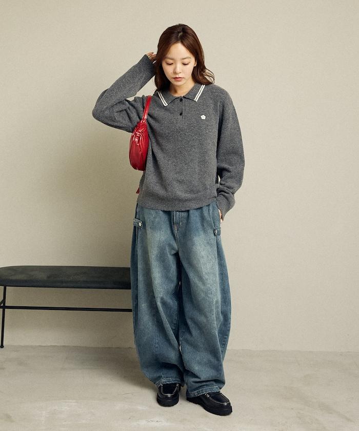 簡潔可愛的針織 Polo 衫,領口飾有線條,胸前飾有單點刺繡。