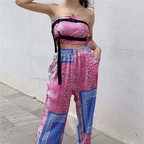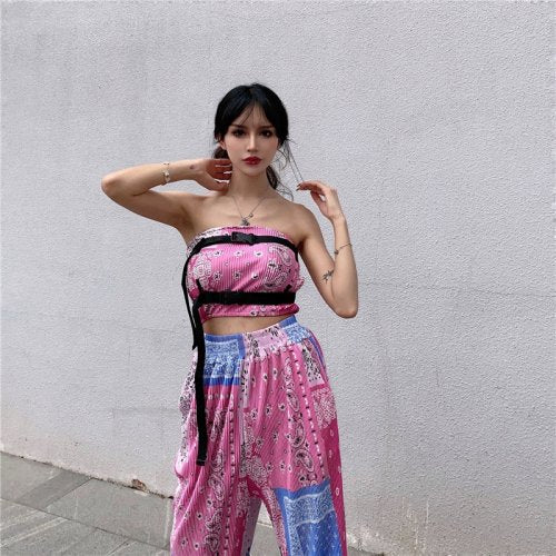 帶腰帶設計的管狀上衣和下裝作為套裝出售。