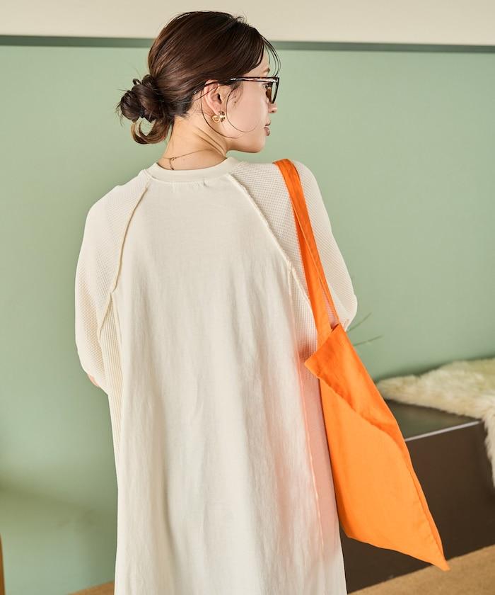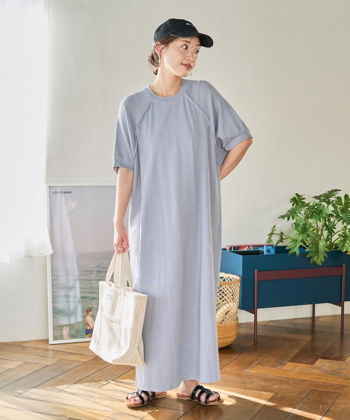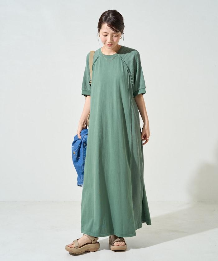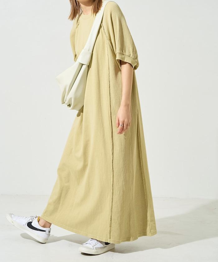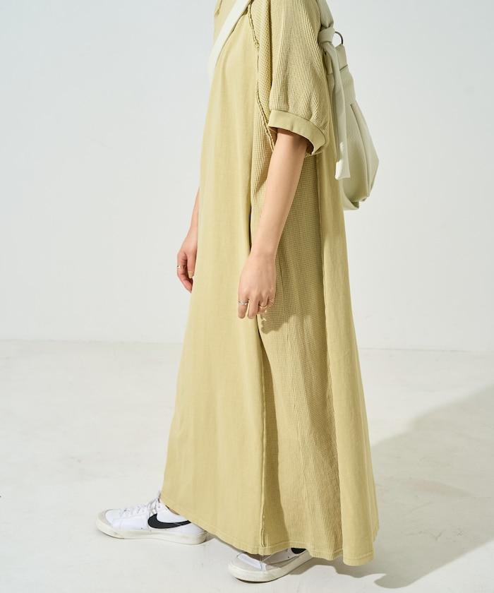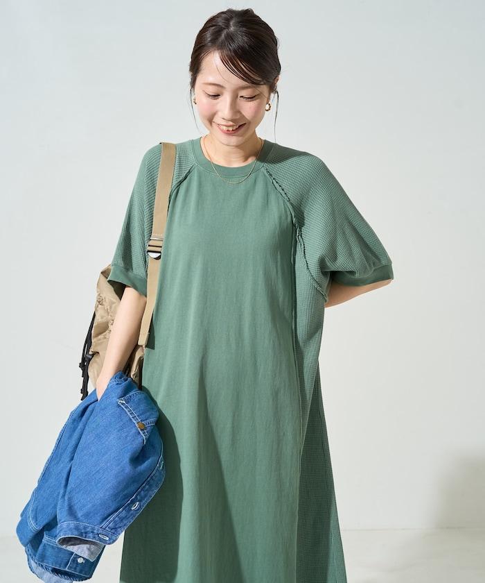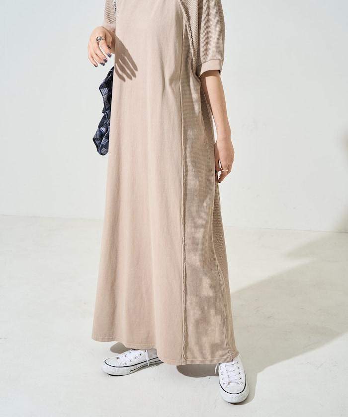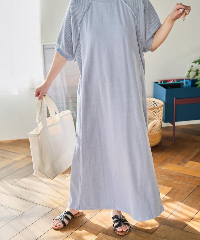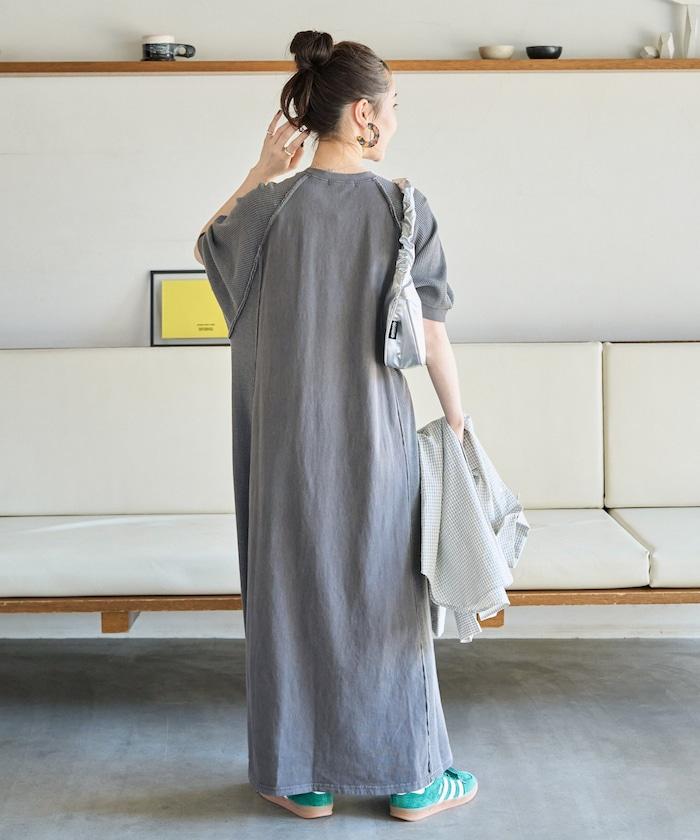 裁剪縫製的連衣裙,採用獨特的面料切換設計。