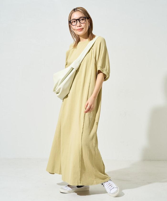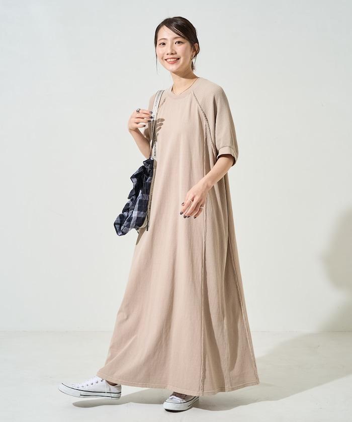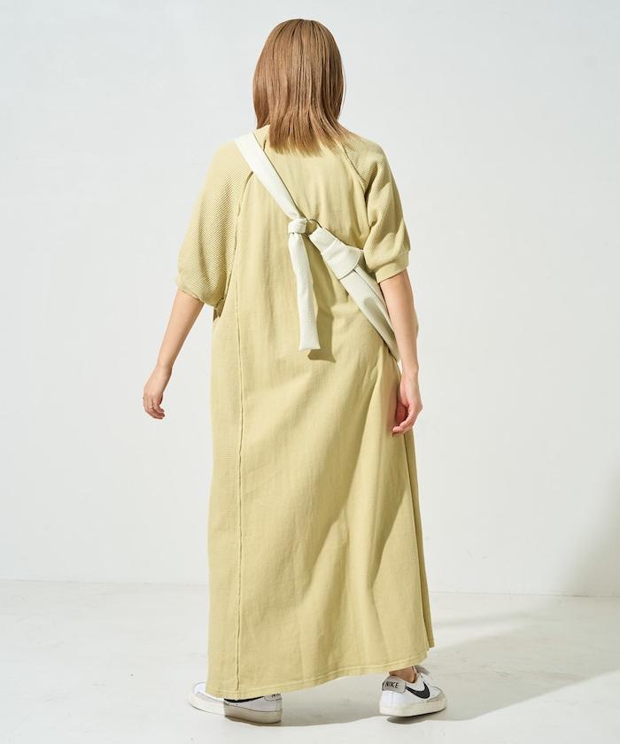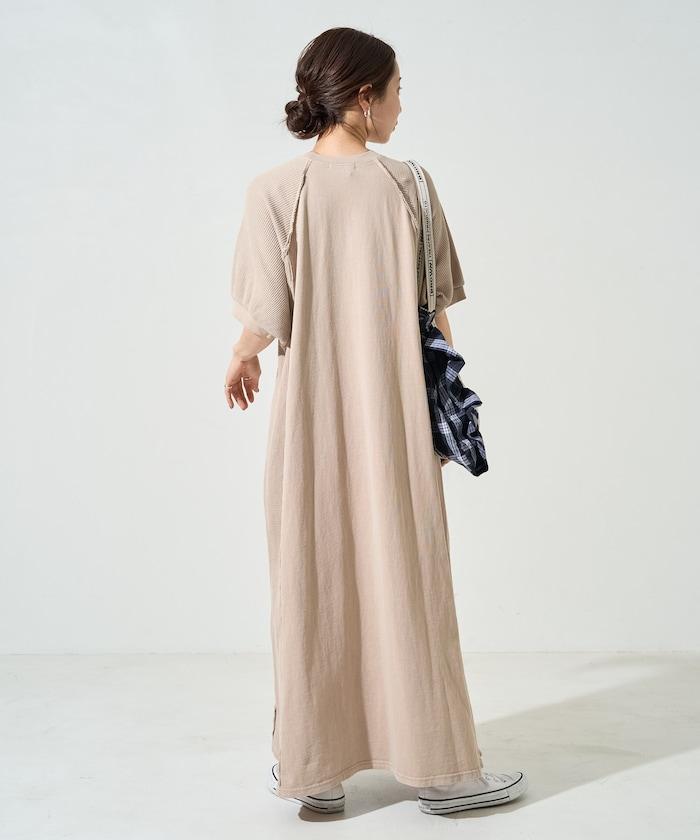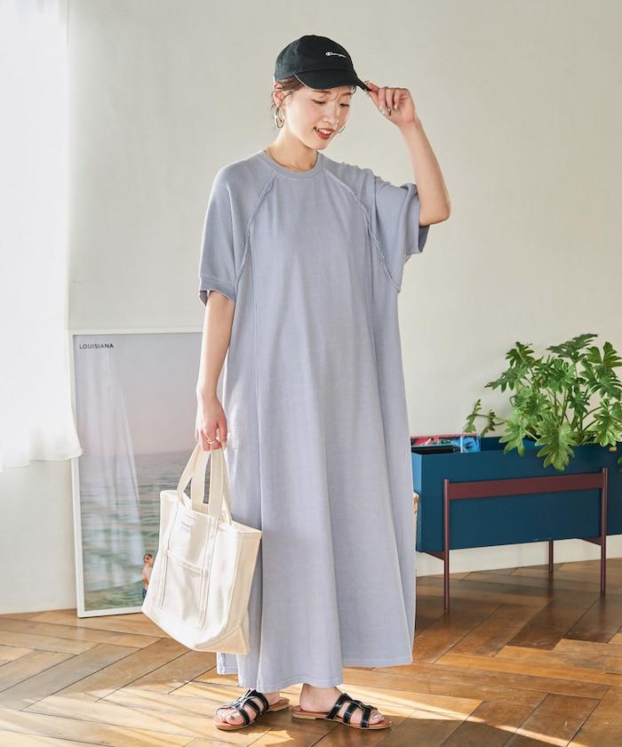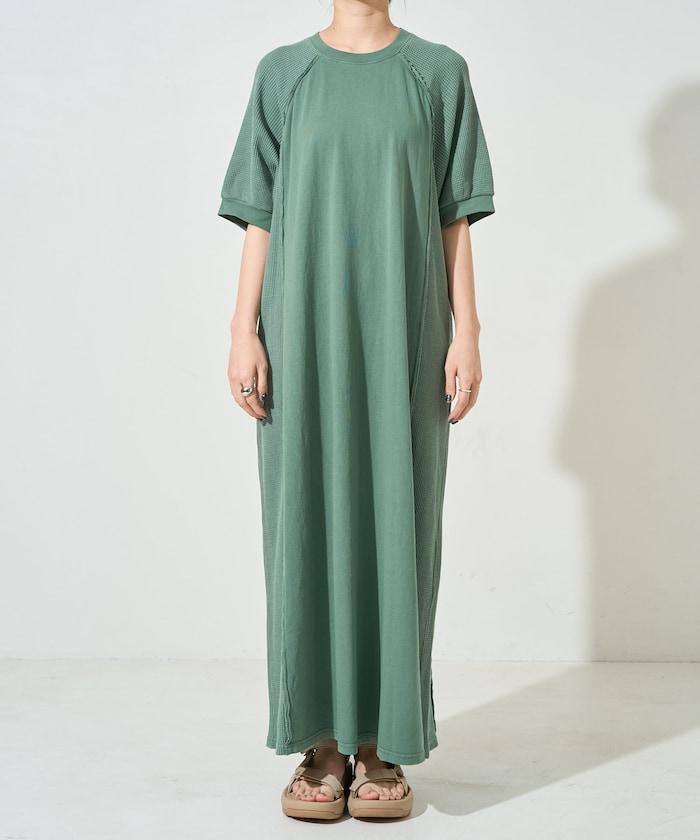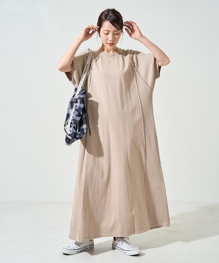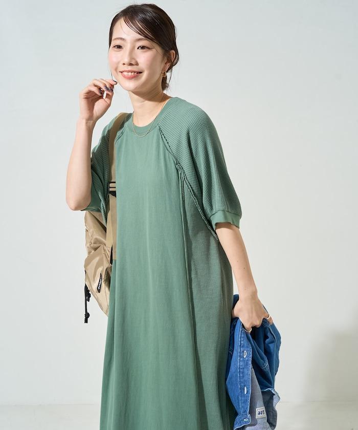 裁剪縫製的連衣裙,採用獨特的面料切換設計。