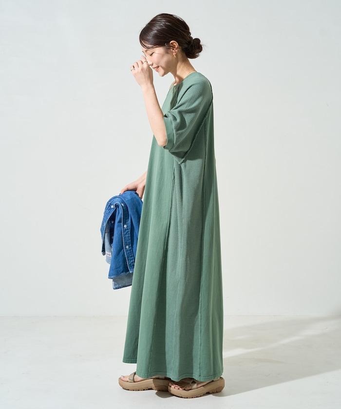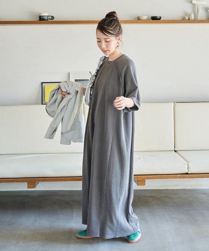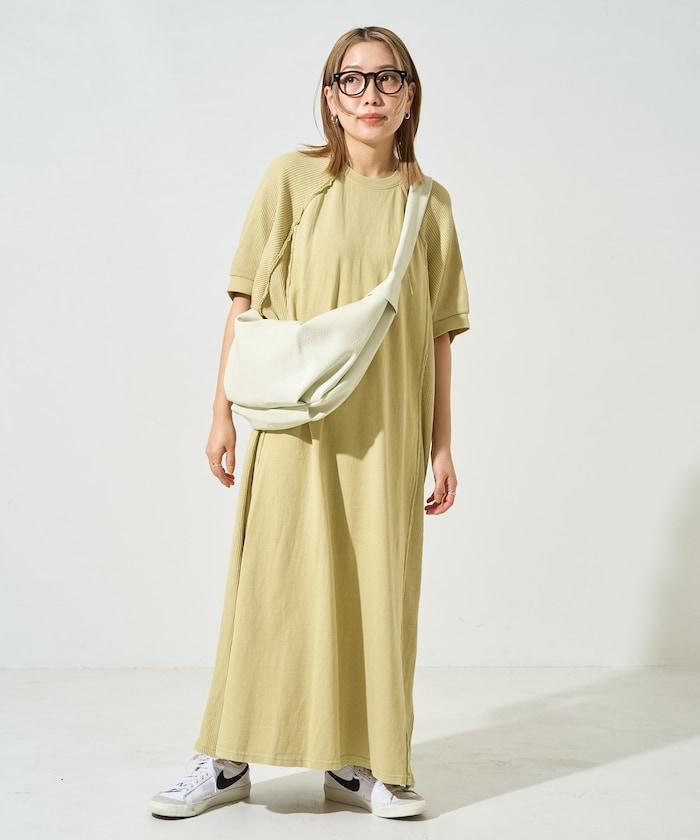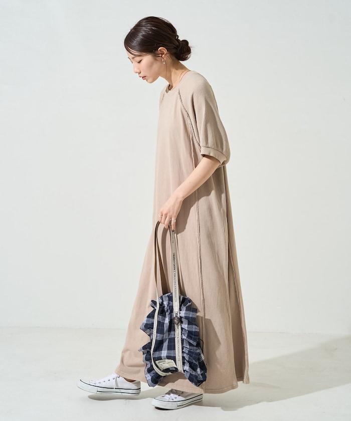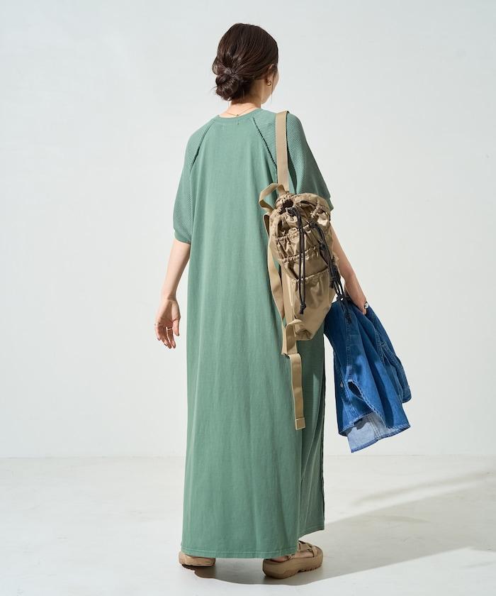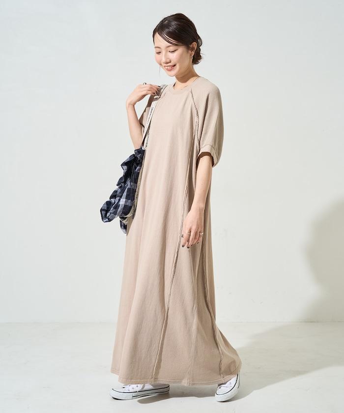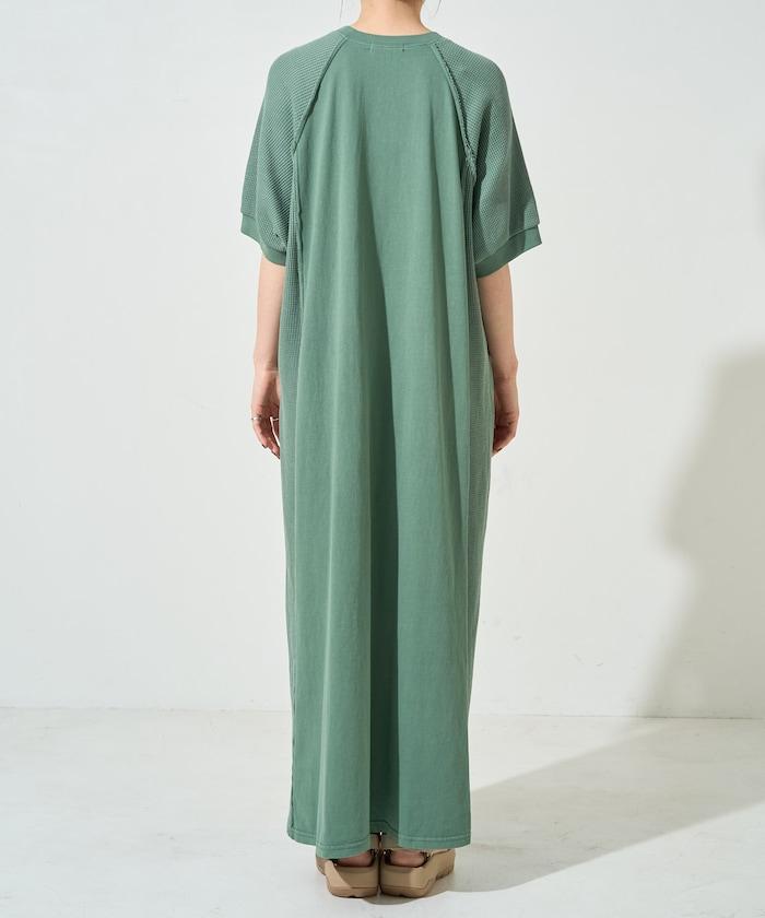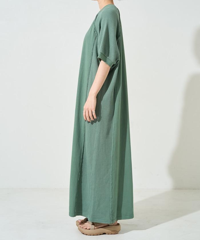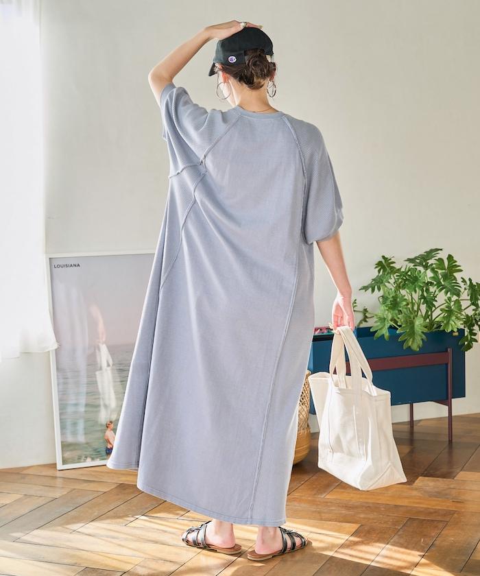 裁剪縫製的連衣裙,採用獨特的面料切換設計。