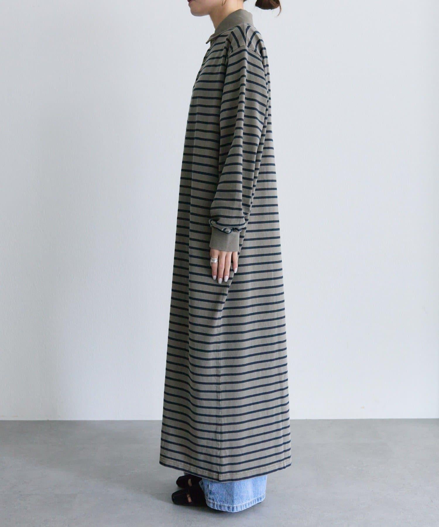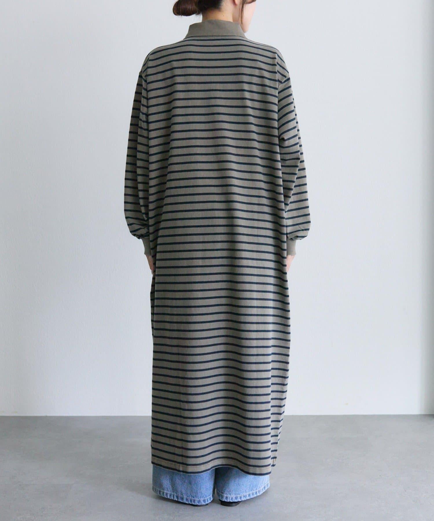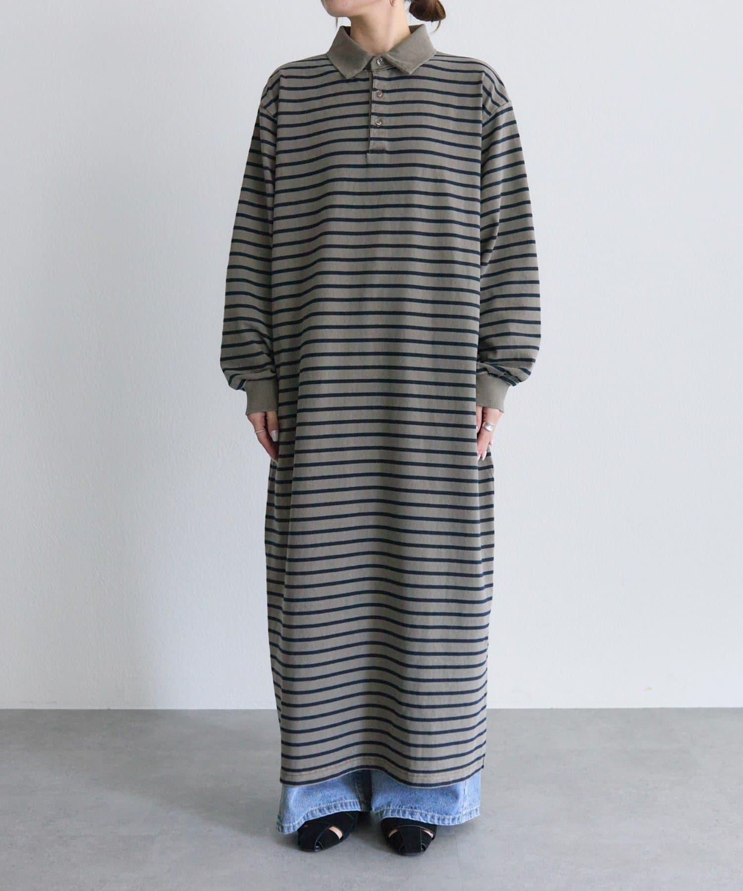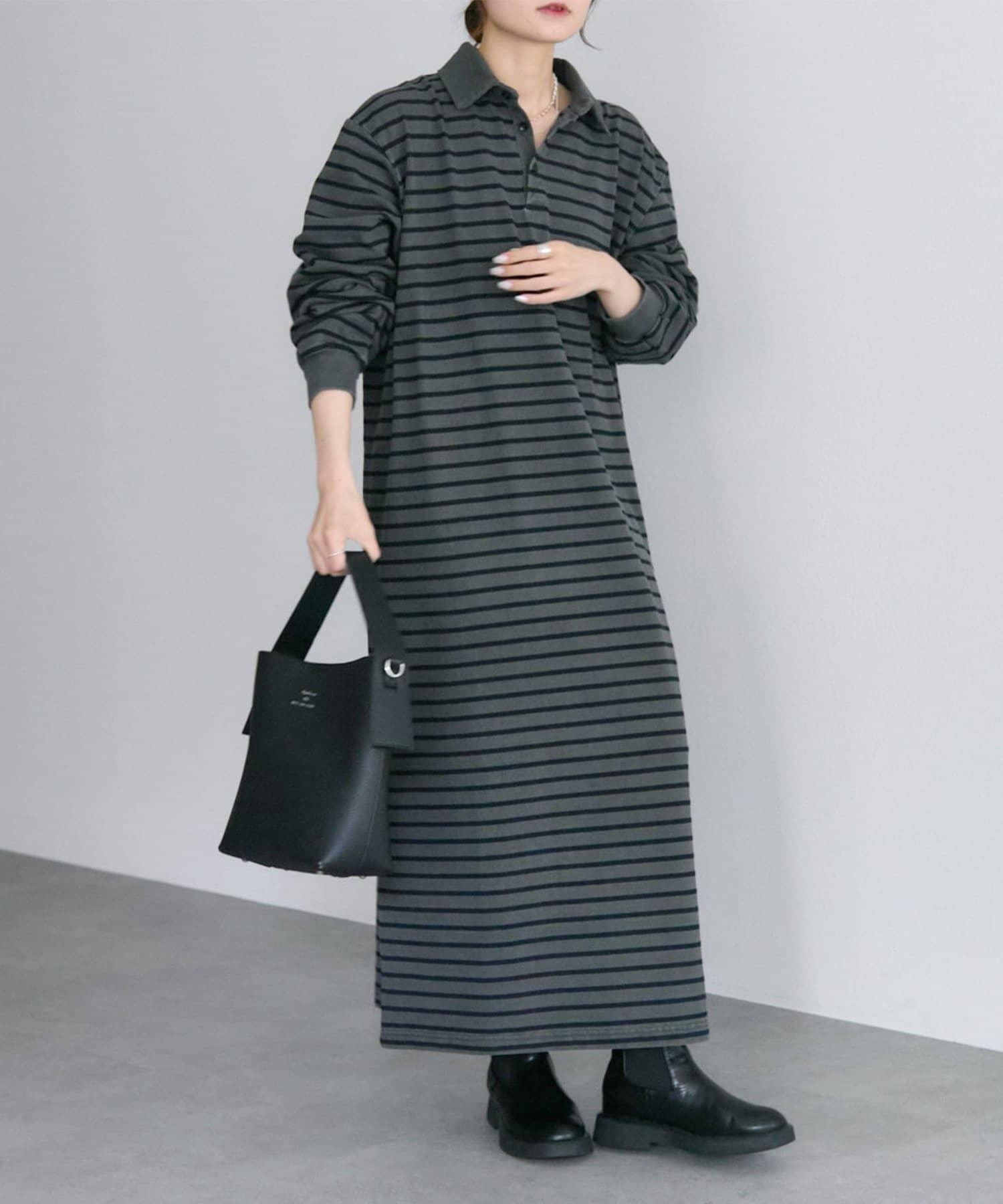 類似 Polo 衫的堅固衣領收緊了整體造型,為休閒邊飾連衣裙增添了整潔感。