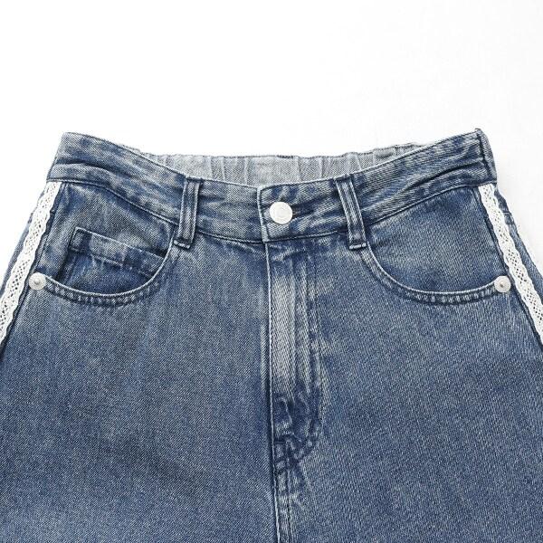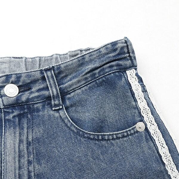牛仔布加工的凹凸感營造出協調的層次感,賦予其時尚氣息♪百搭單品,可隨意穿著,也可美美地穿上身♪腰部有鬆緊調節器,可隨意調節。