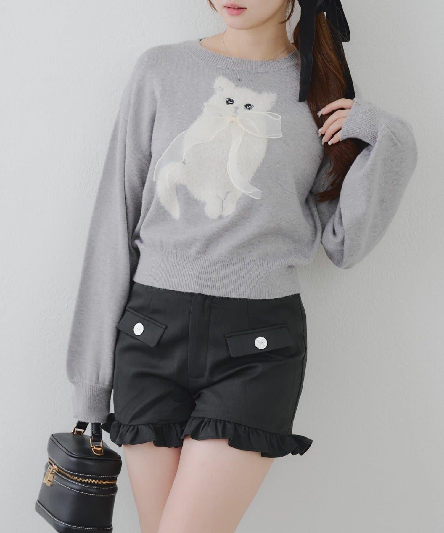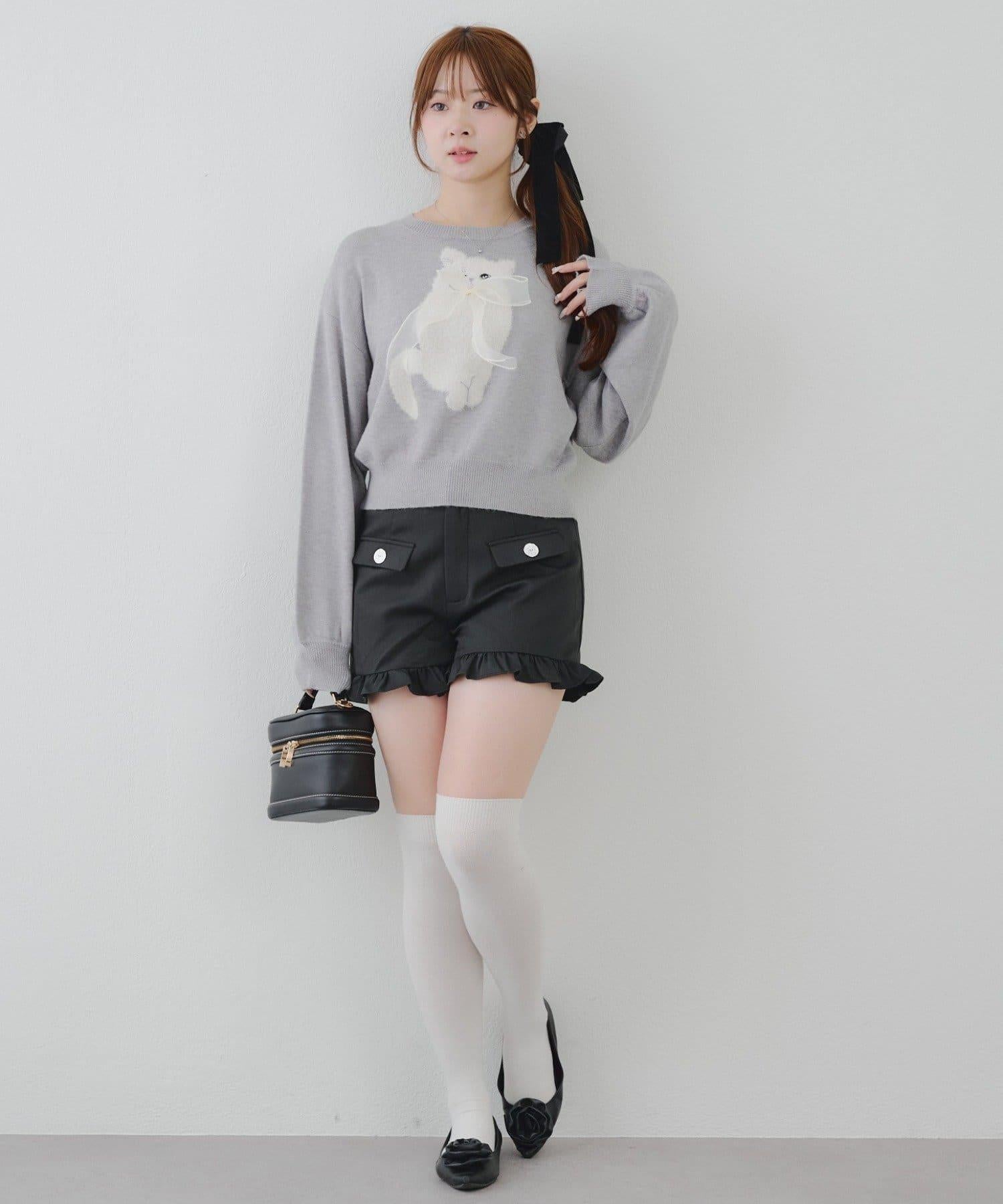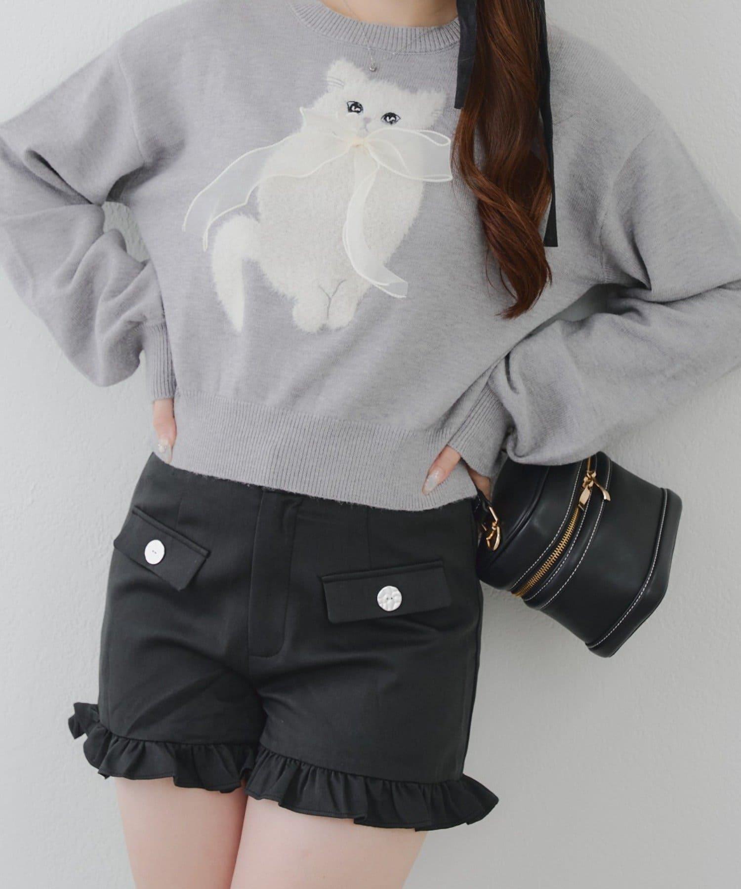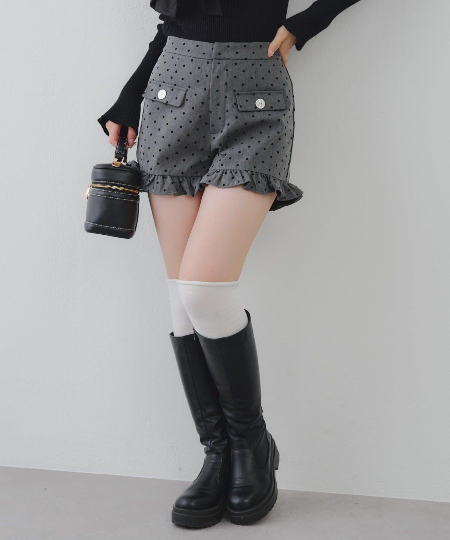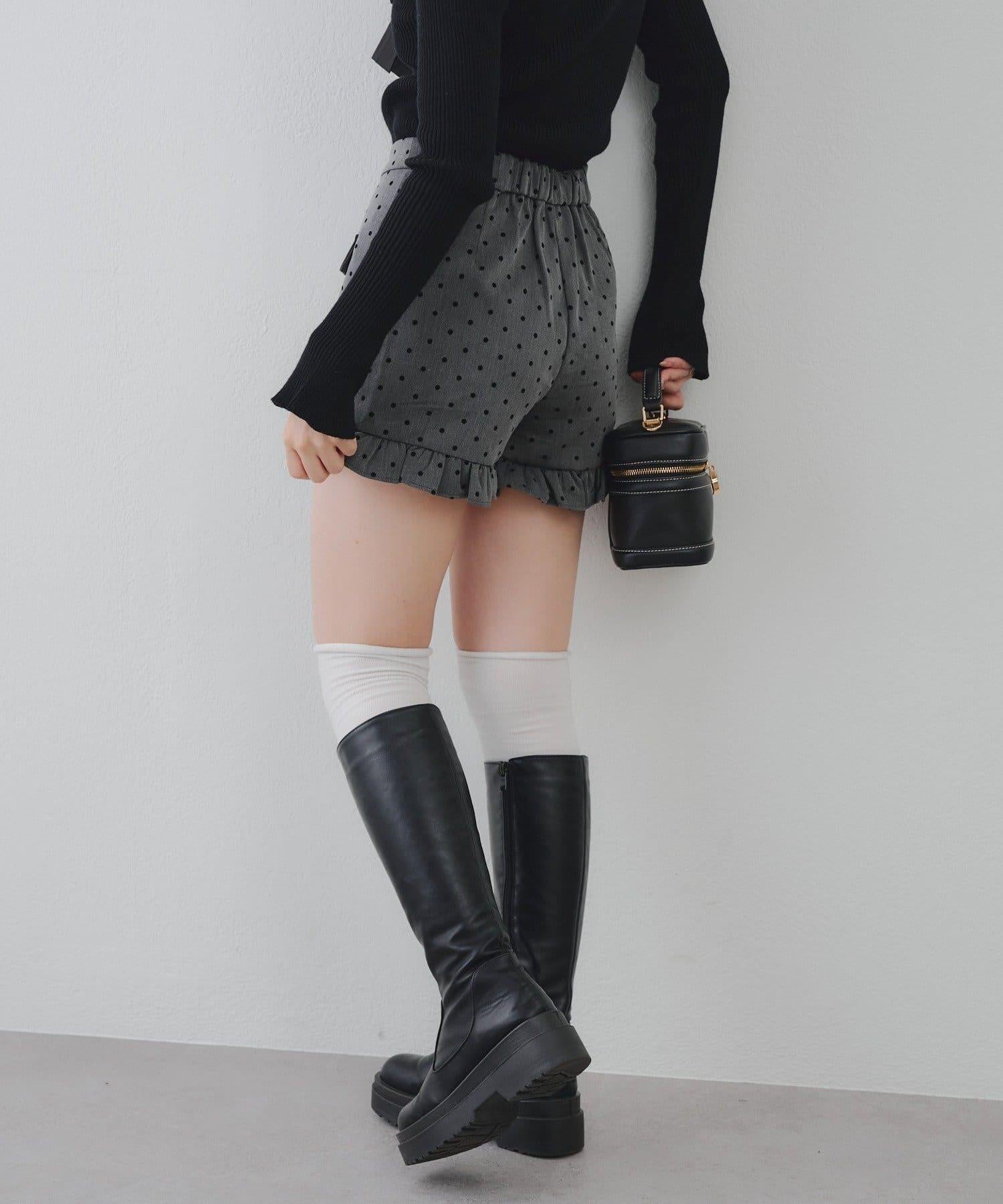 緊湊的長度具有拉長腿部線條的效果,而下襬的荷葉邊則遮住了大腿。