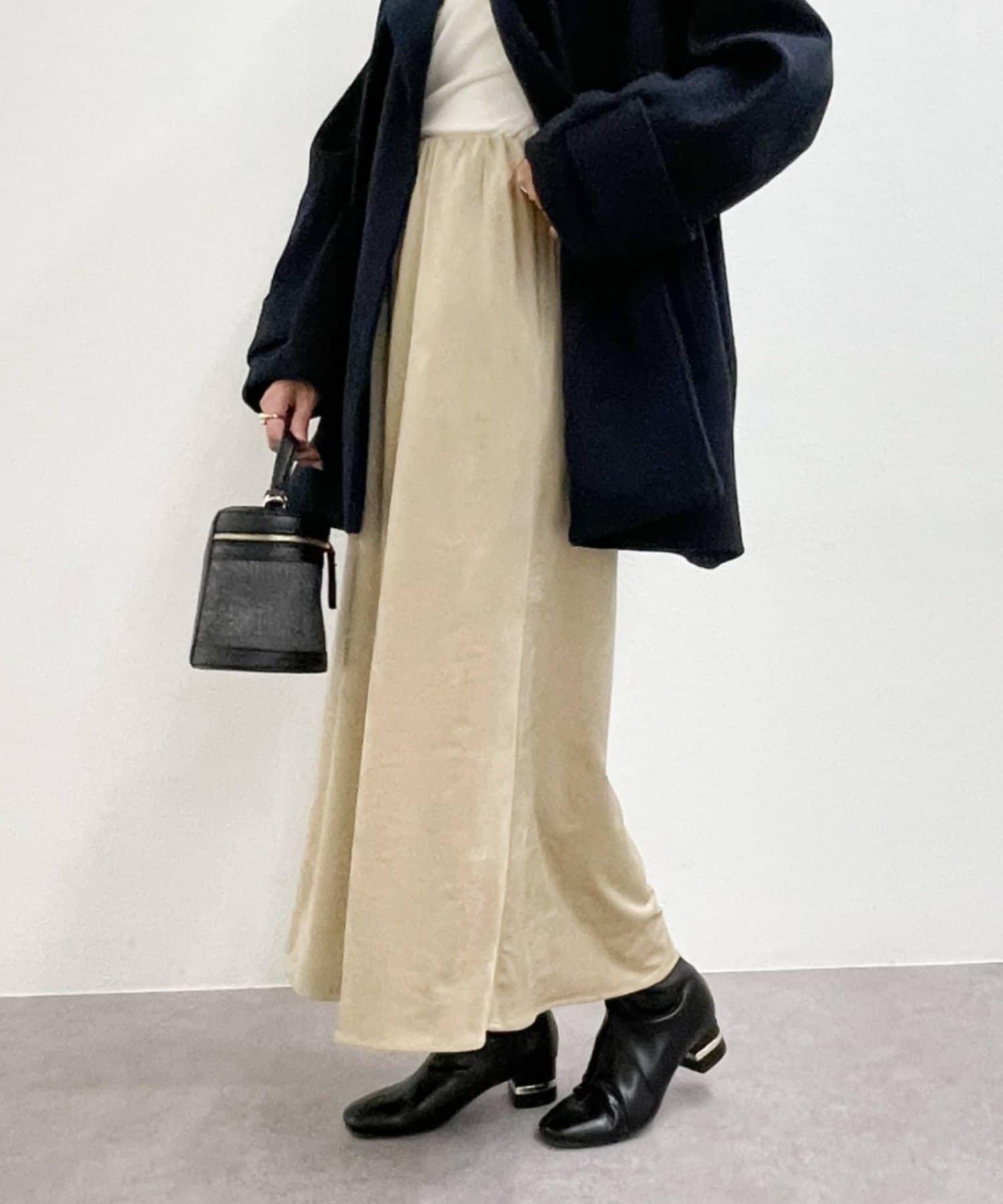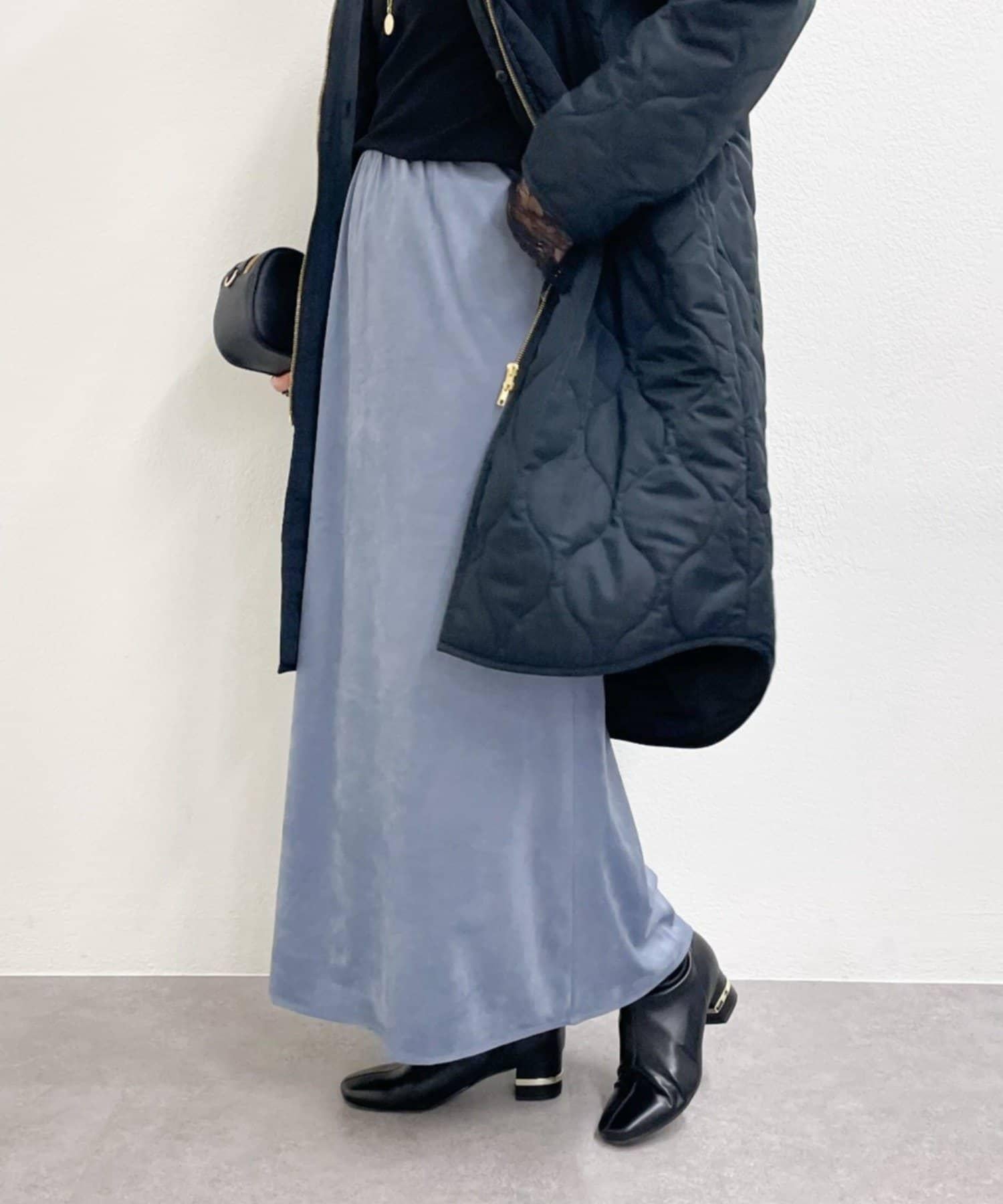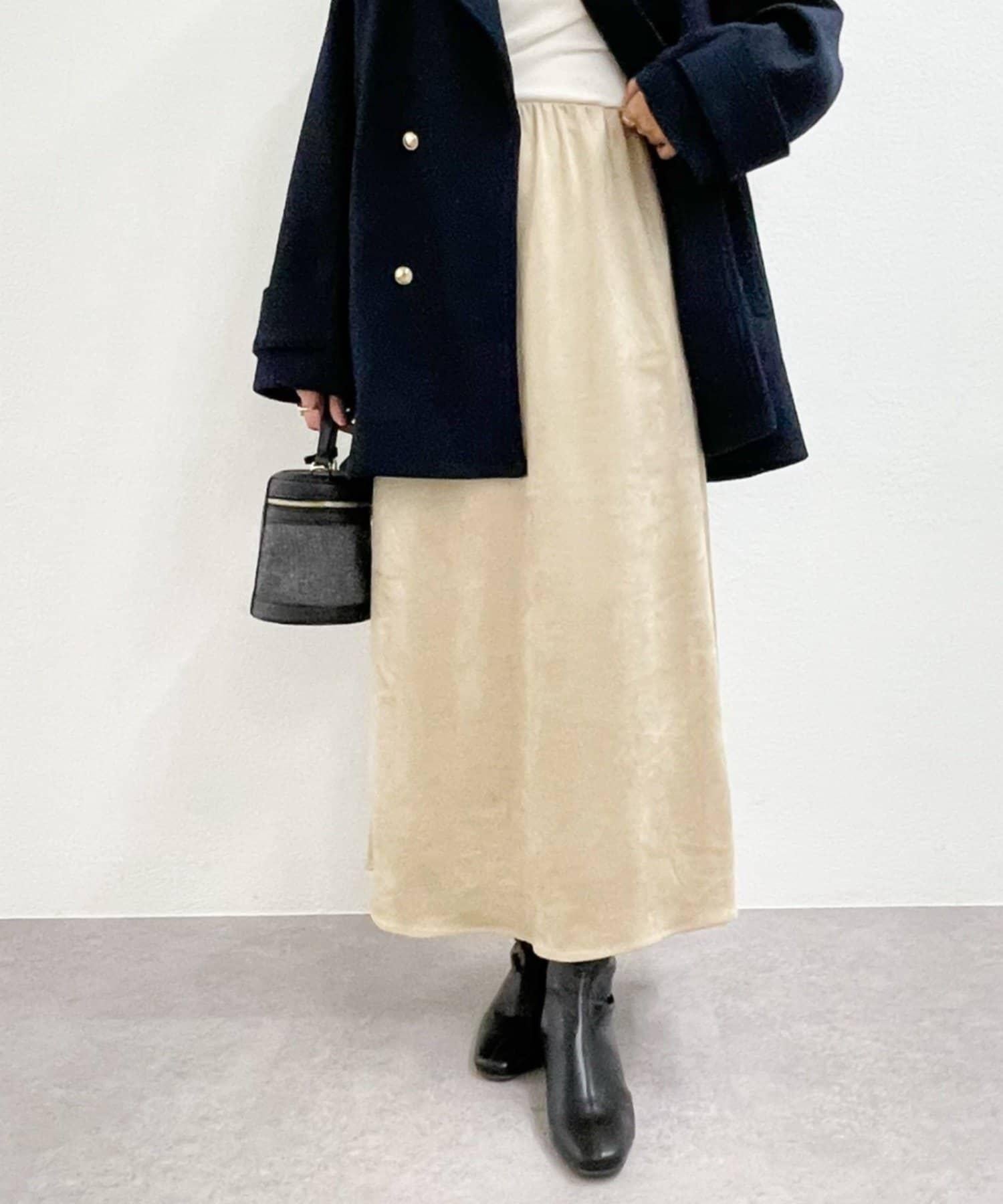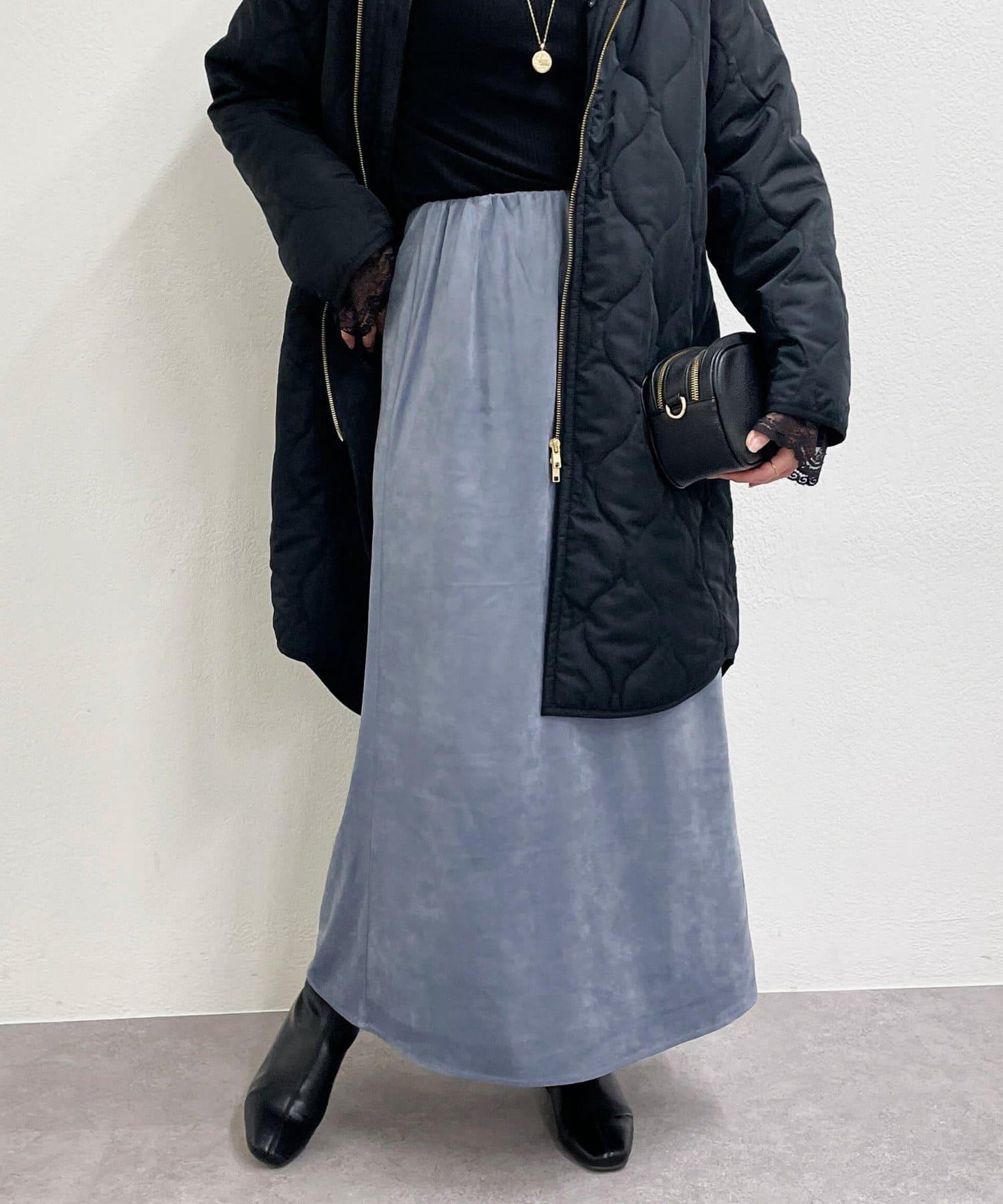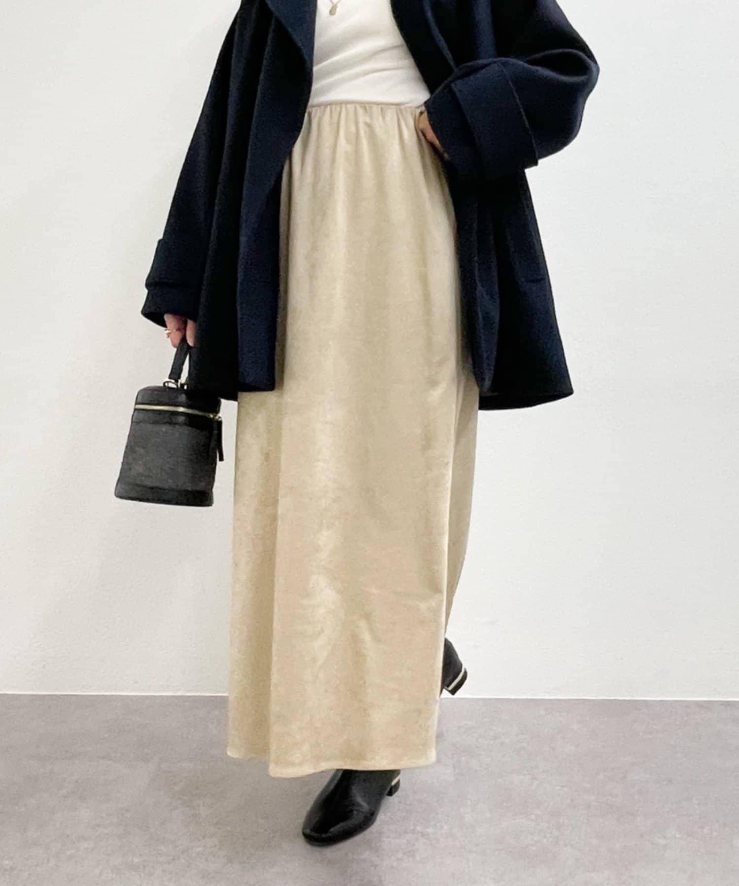 預約商品顯瘦美腿彈力麂皮喇叭裙