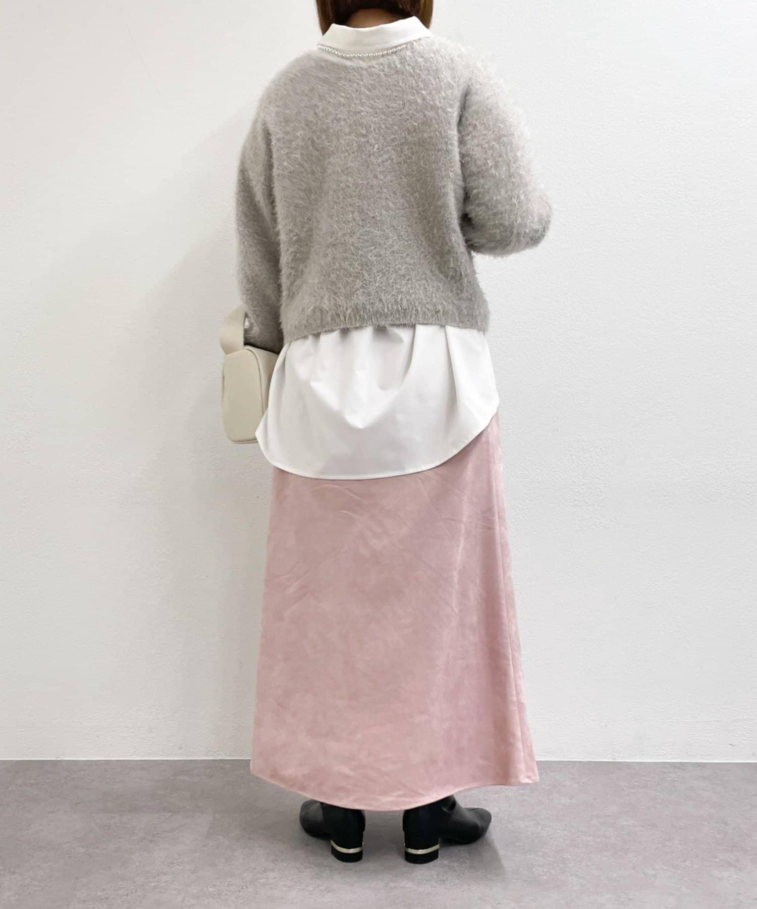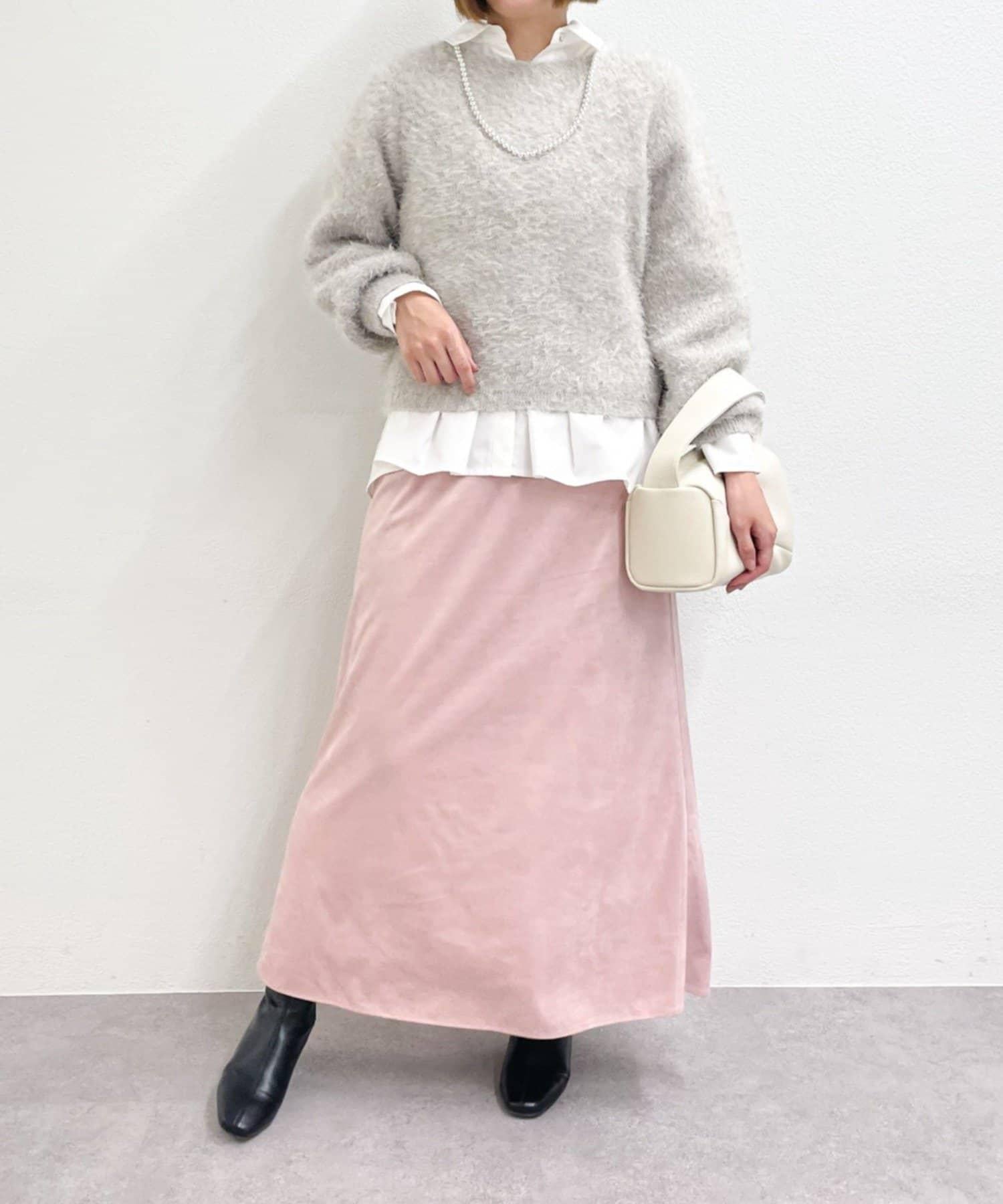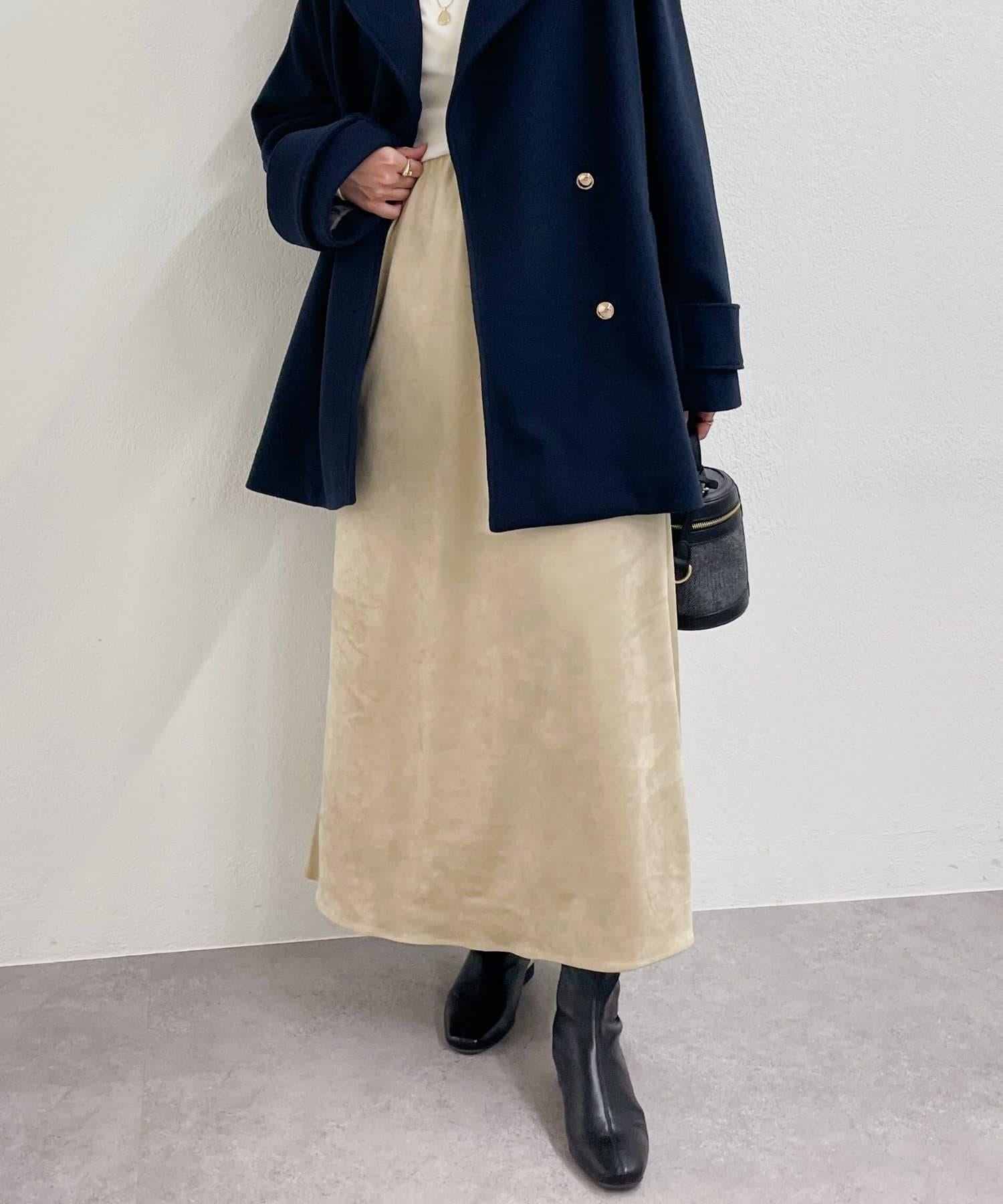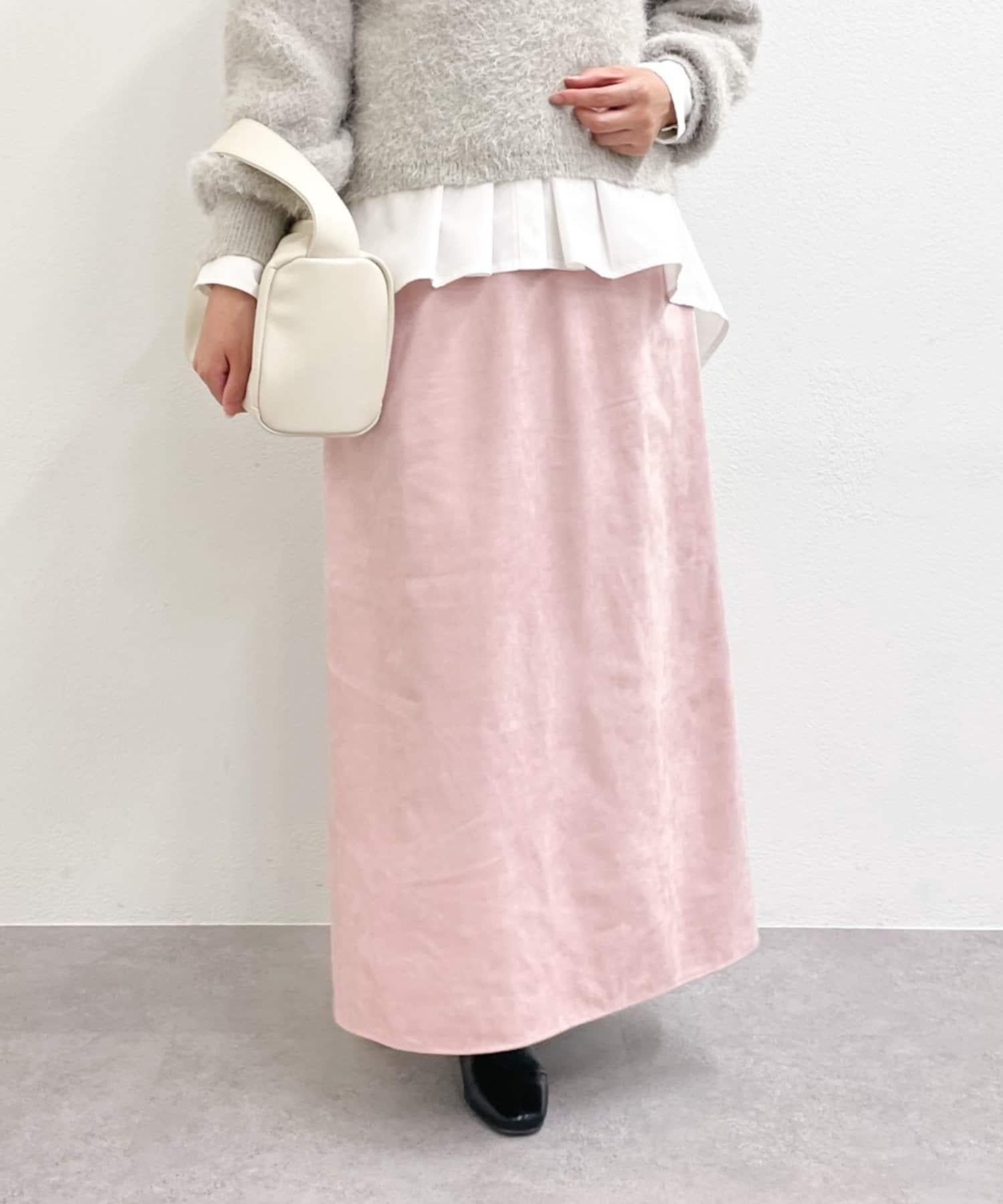 這款裙子採用優雅的麂皮絨面料製成,光滑的質感為其增添了一絲精緻感。