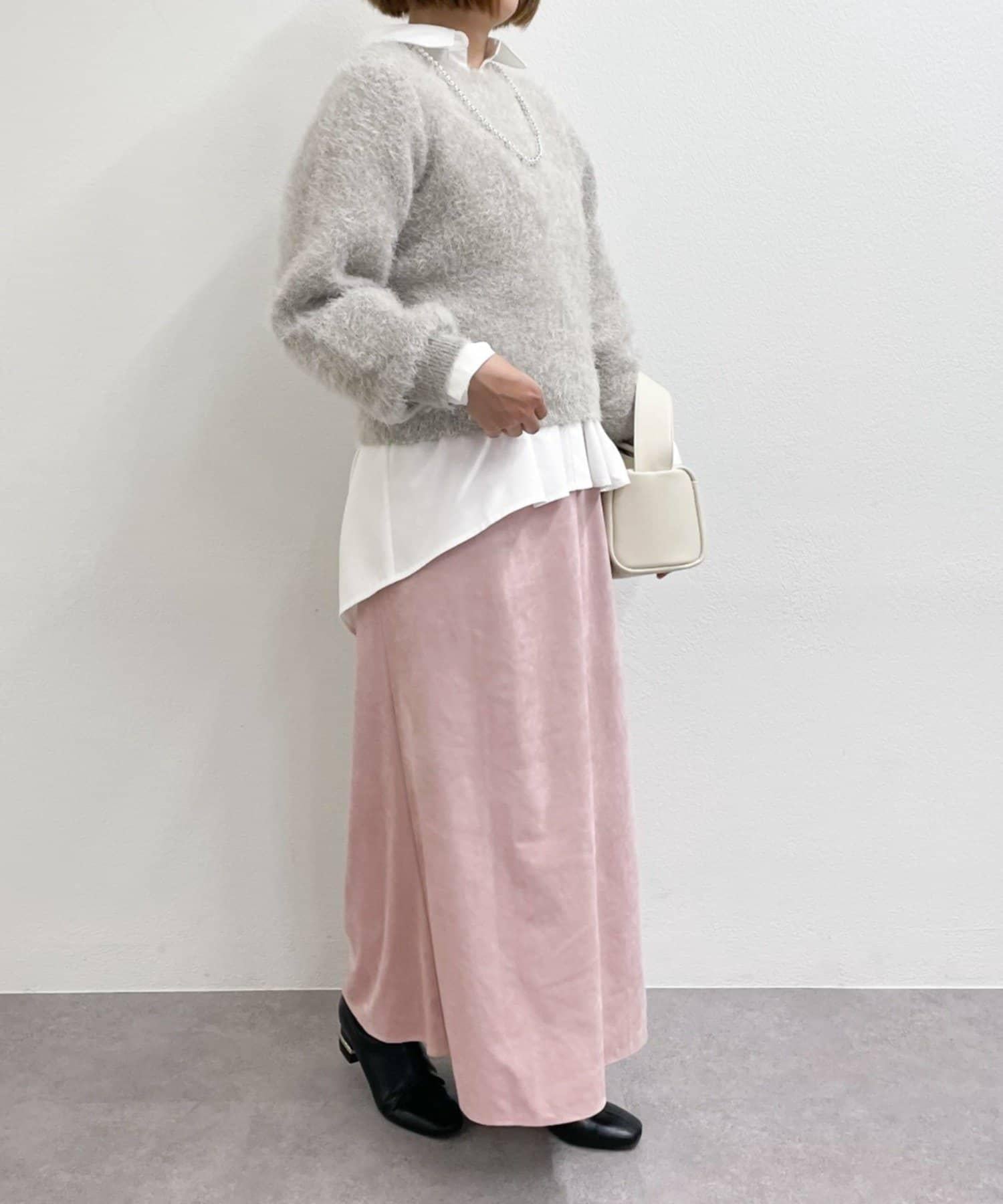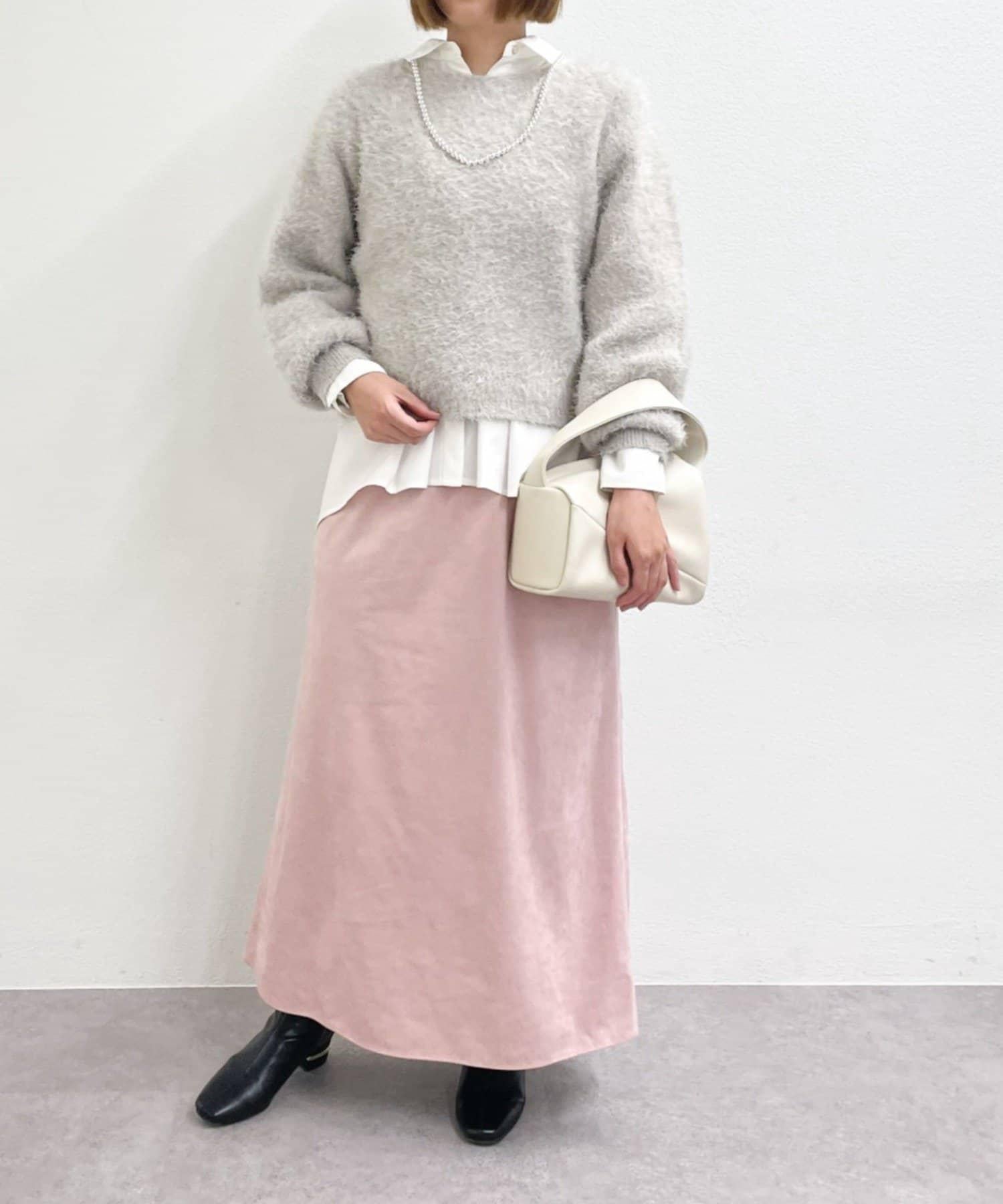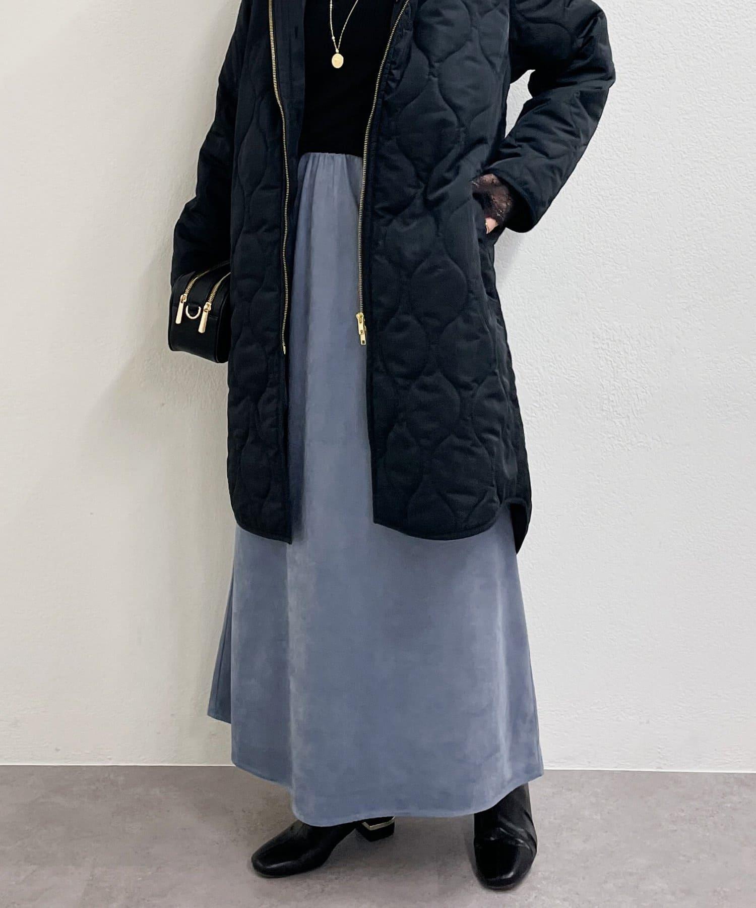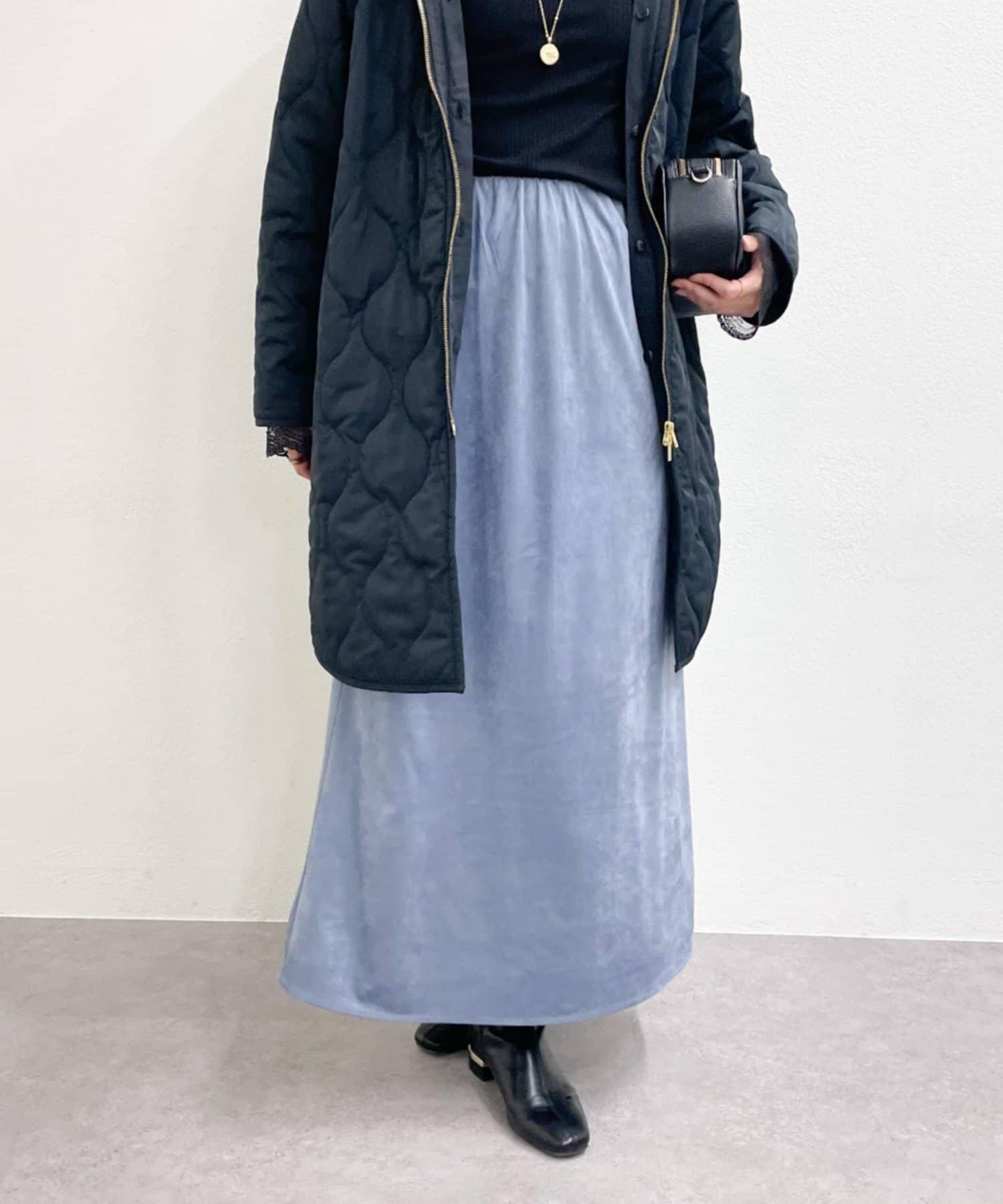 這款裙子採用優雅的麂皮絨面料製成,光滑的質感為其增添了一絲精緻感。