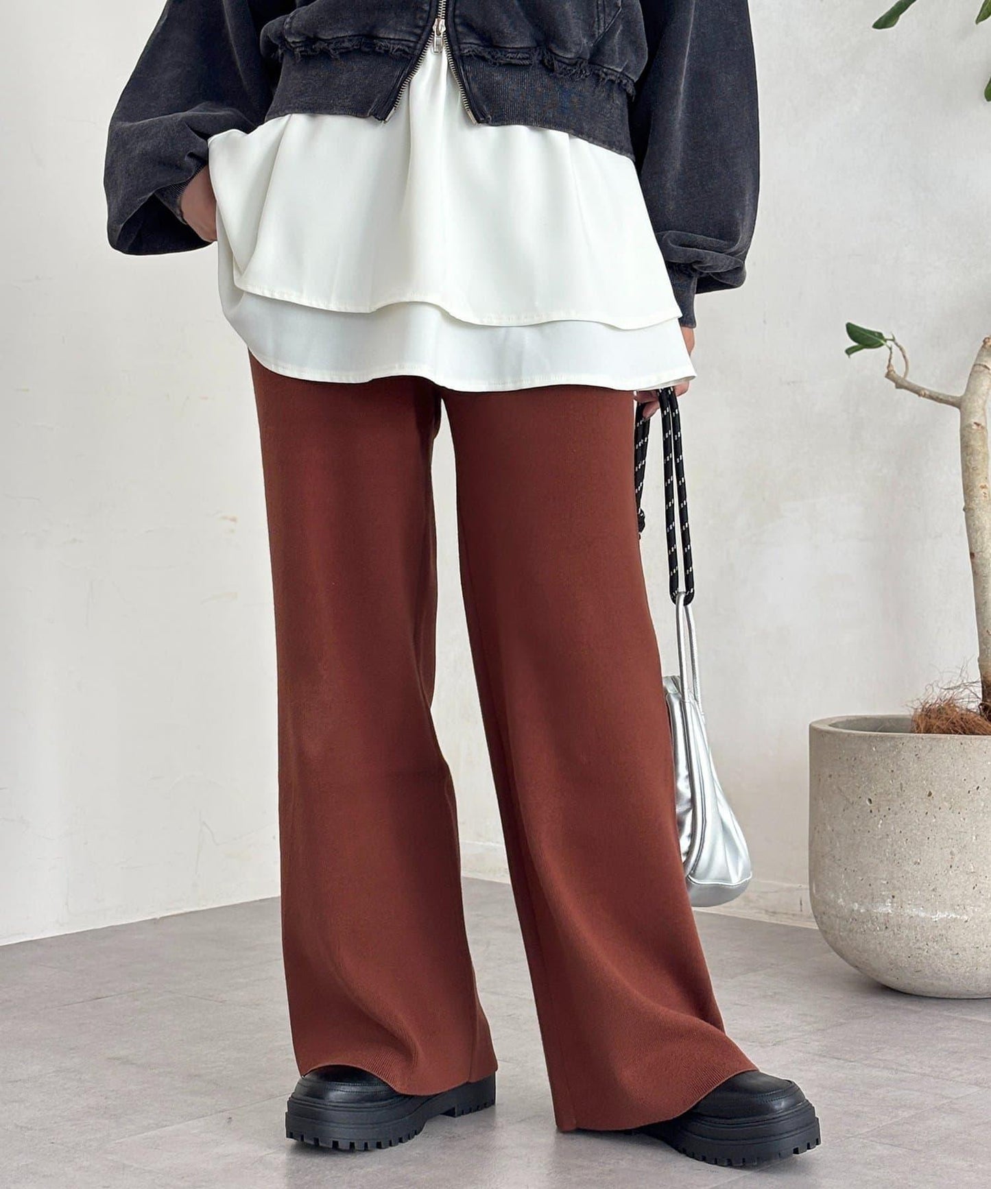 羅紋針織輕鬆褲,讓你看起來輕鬆時尚。