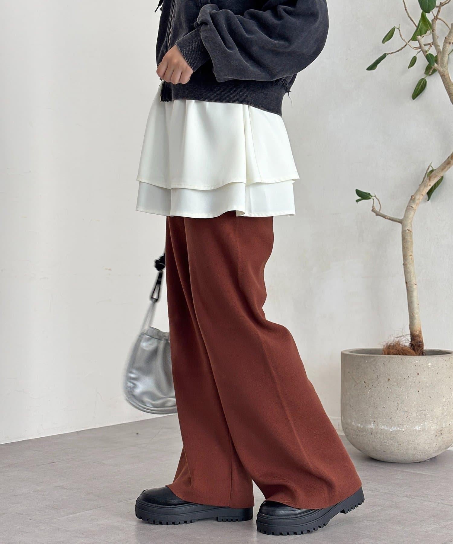 預約商品【顯瘦3公斤!】羅紋針織休閒褲
