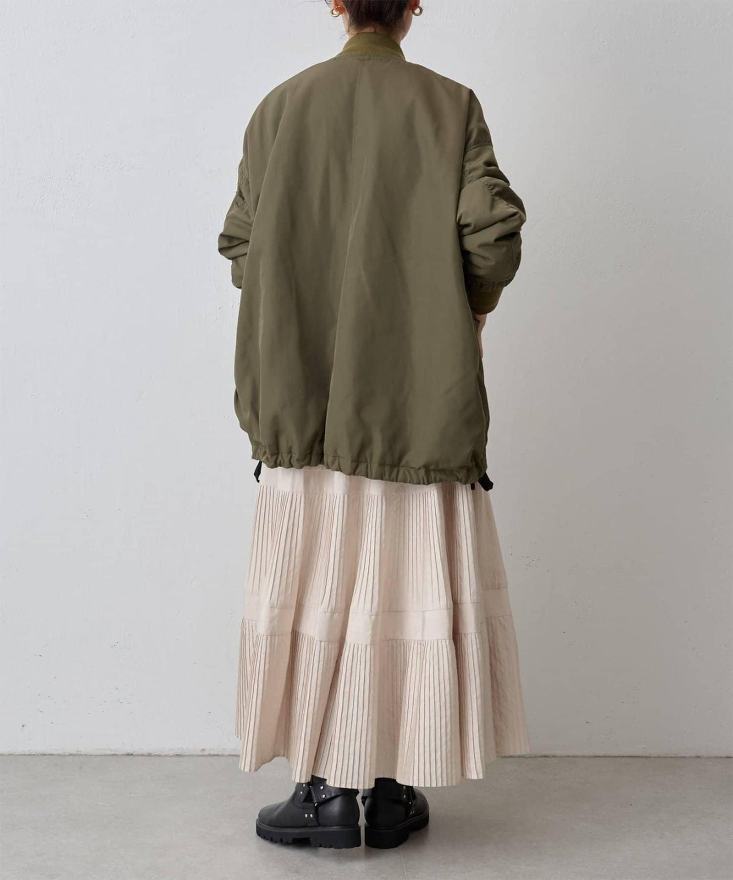 MA-1 以飛行夾克為原型,具有男裝形象,但重新安排了喇叭形下襬和稍長的長度。