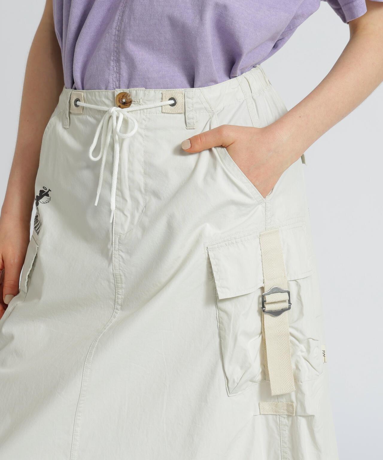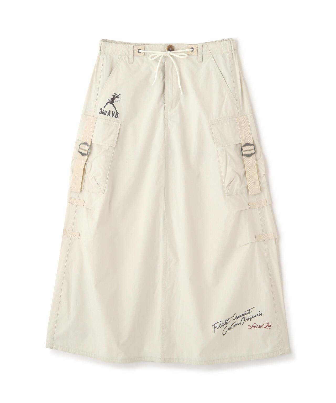俏皮的單品,貨箱裙上的印花--點綴的紅色印花增添了點睛之筆。兩側的褶襉給裙子增添了動感。AVIREX WOMAN] 該系列將純正軍裝的功能性和設計感融入女式休閒裝。作為一個獨特而永恆的女裝品牌,它為聰明、自由、好奇、高貴和活潑的職業成年女性提供女式休閒裝。