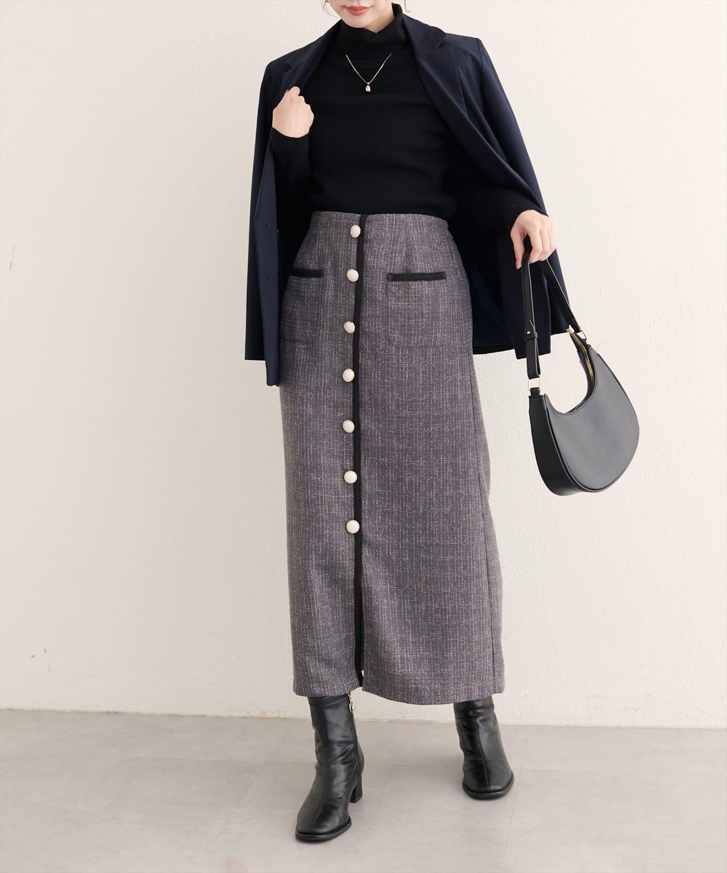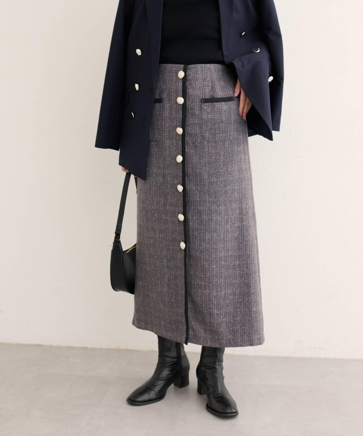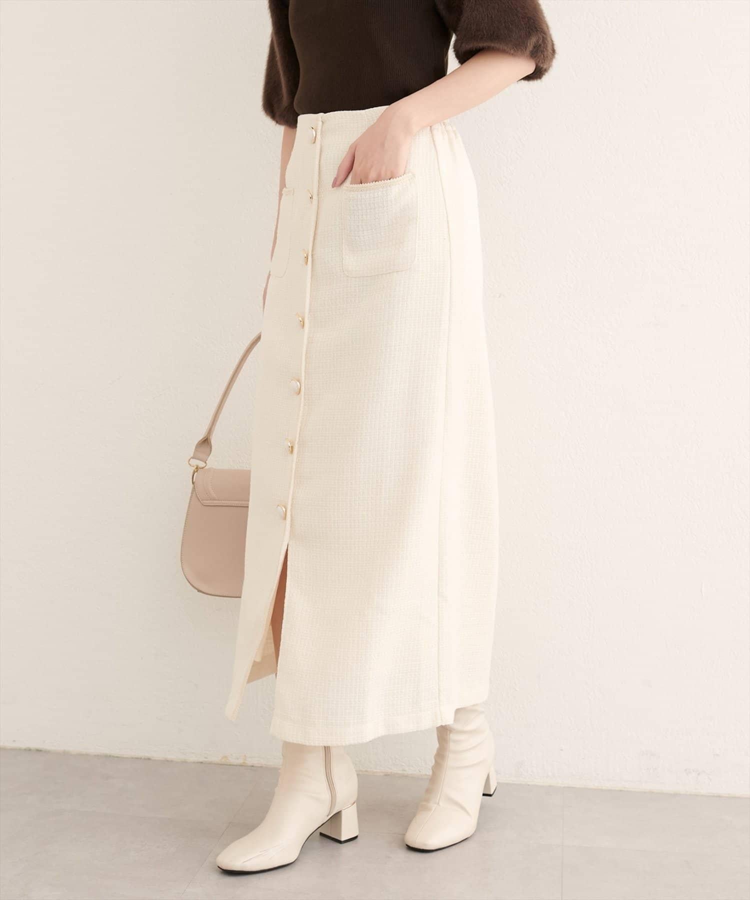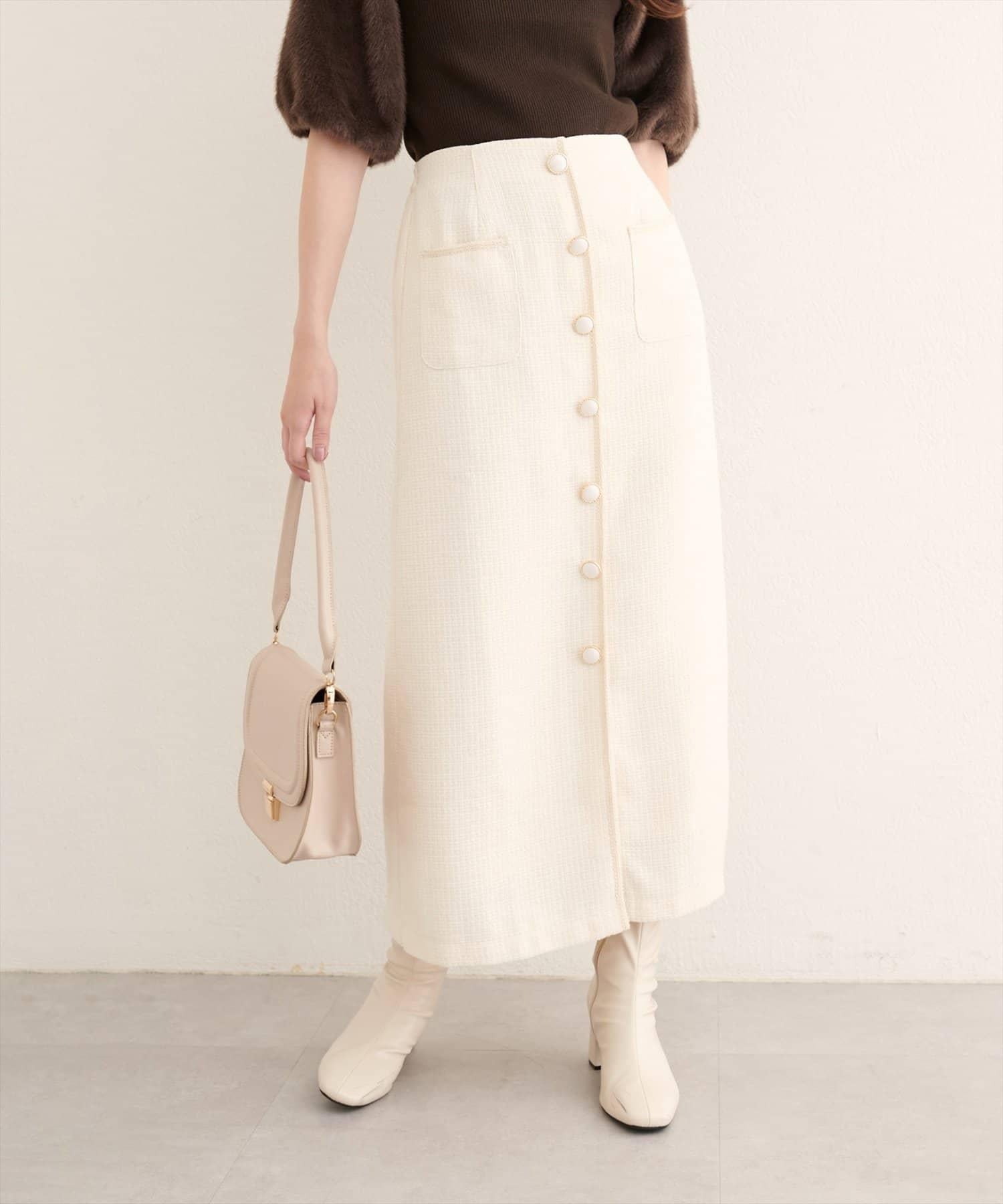 緊身裙的表面採用花呢面料,給人一種協調的感覺。