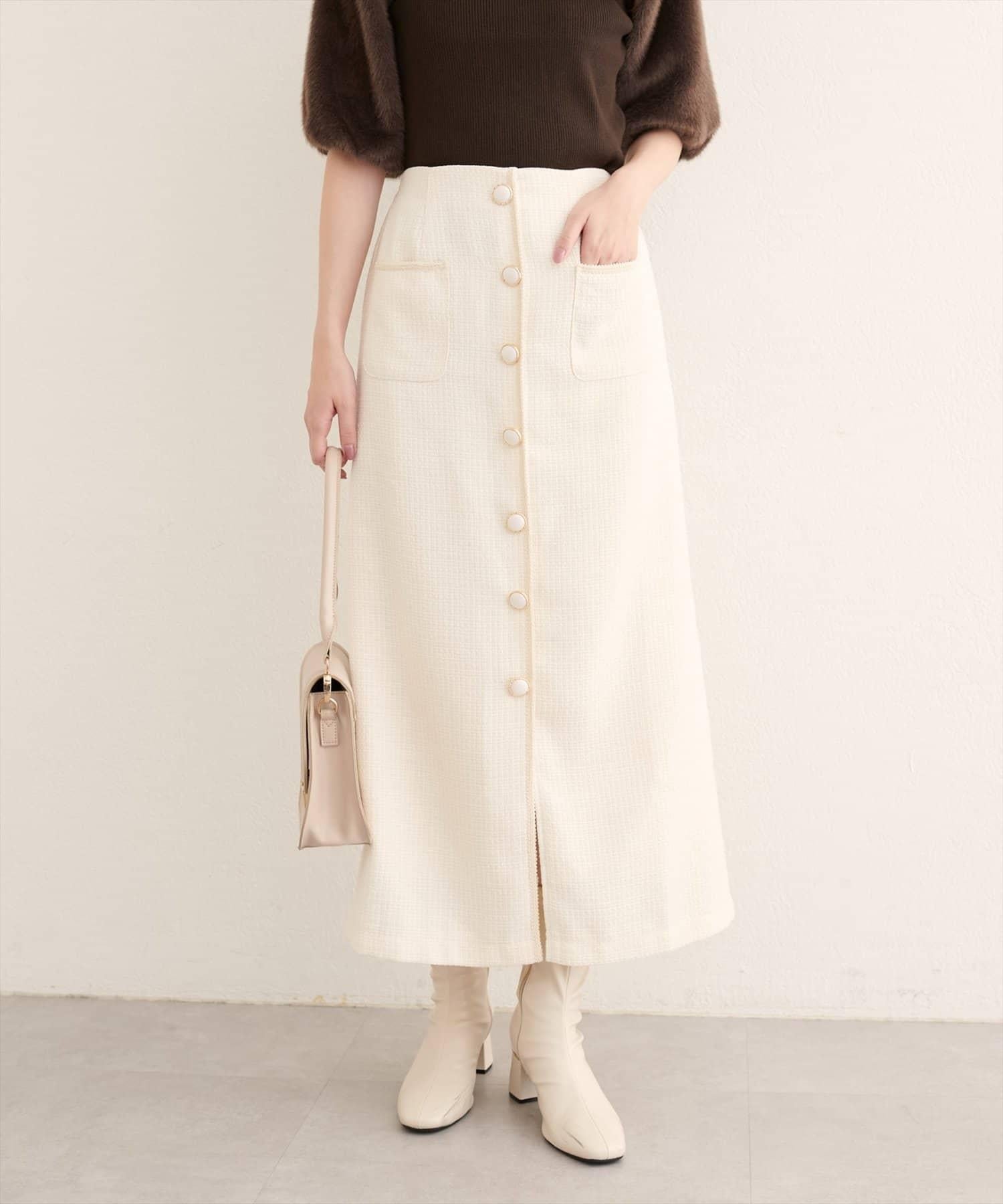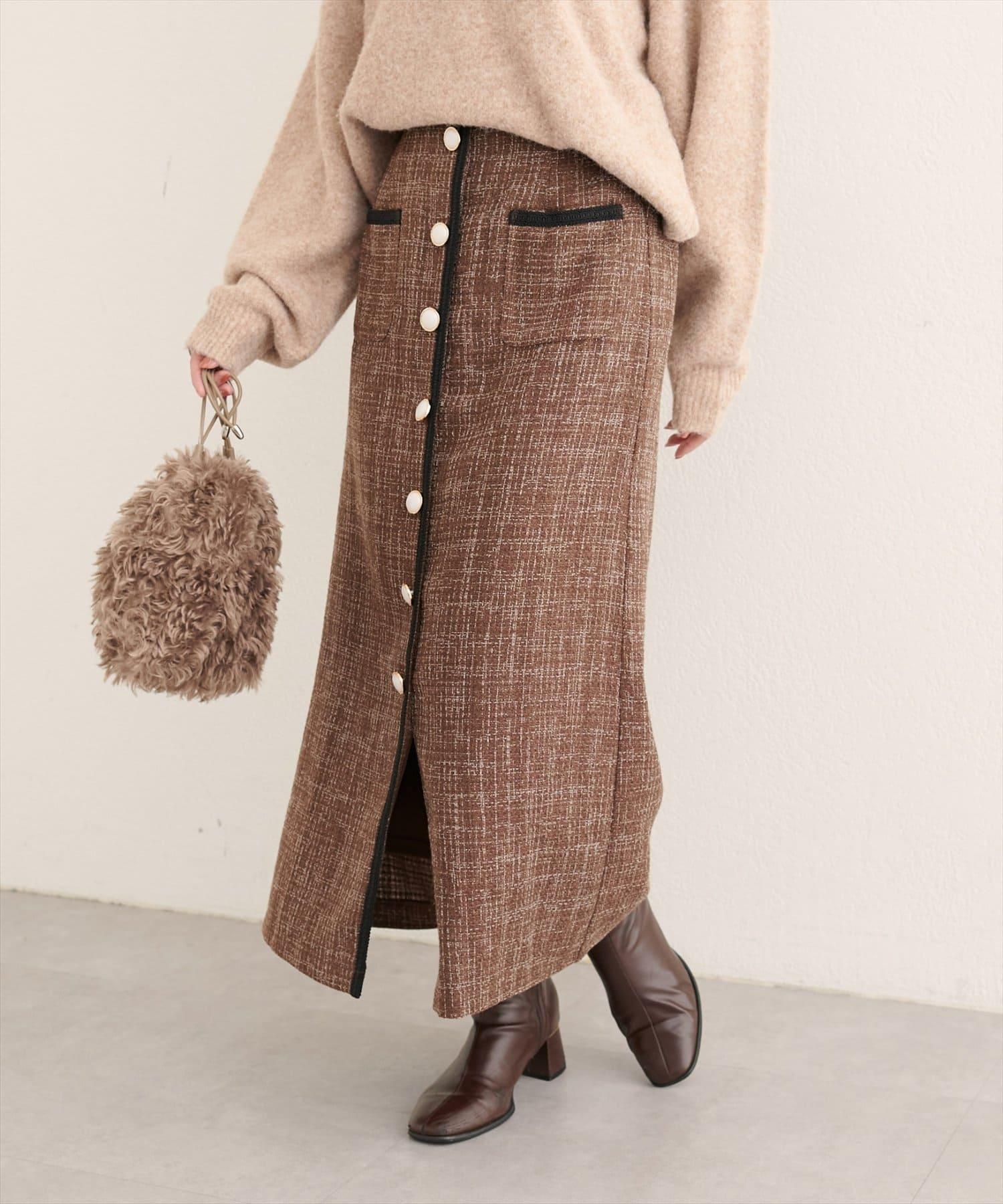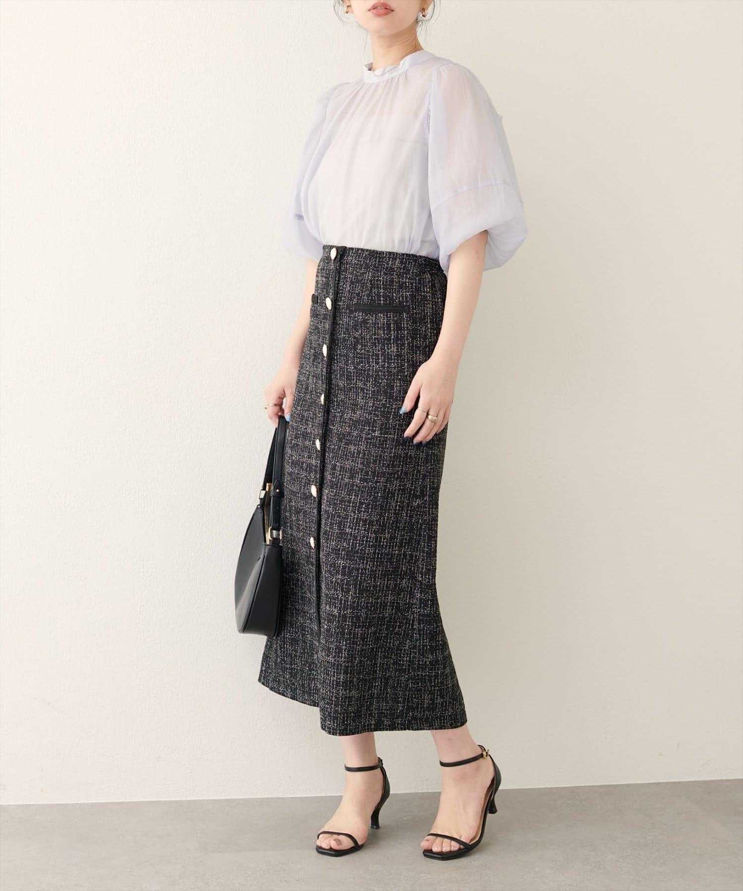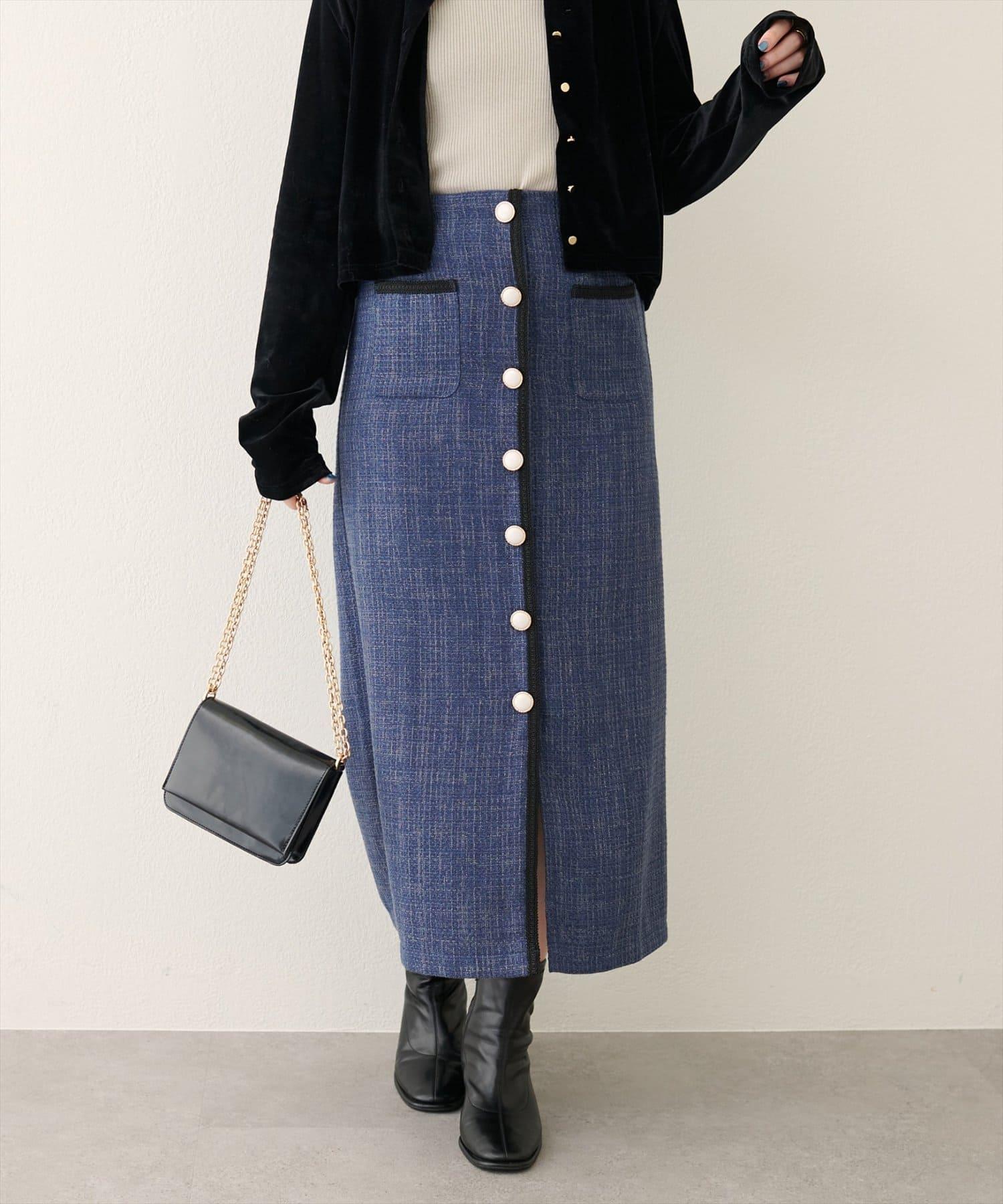 緊身裙的表面採用花呢面料,給人一種協調的感覺。