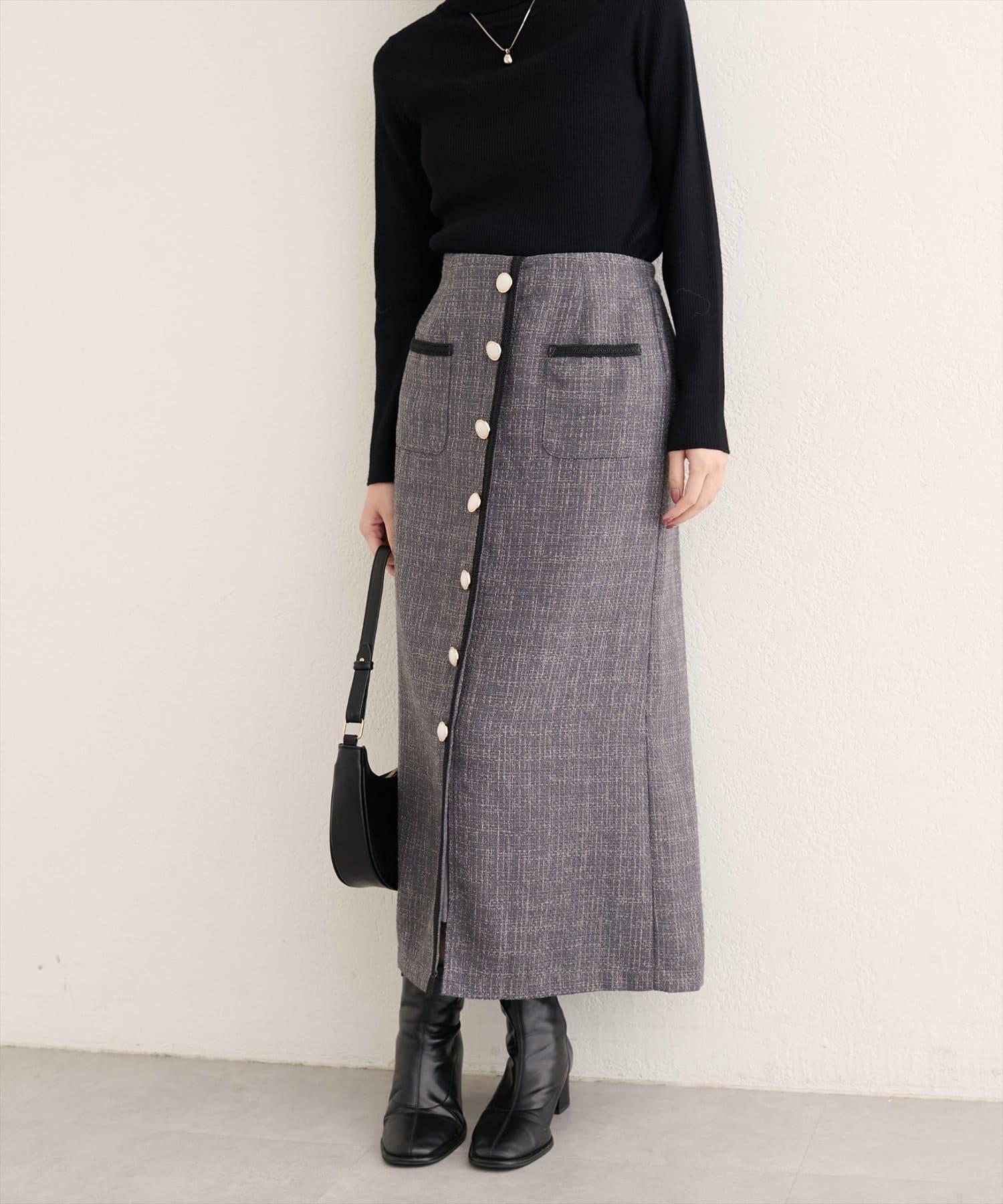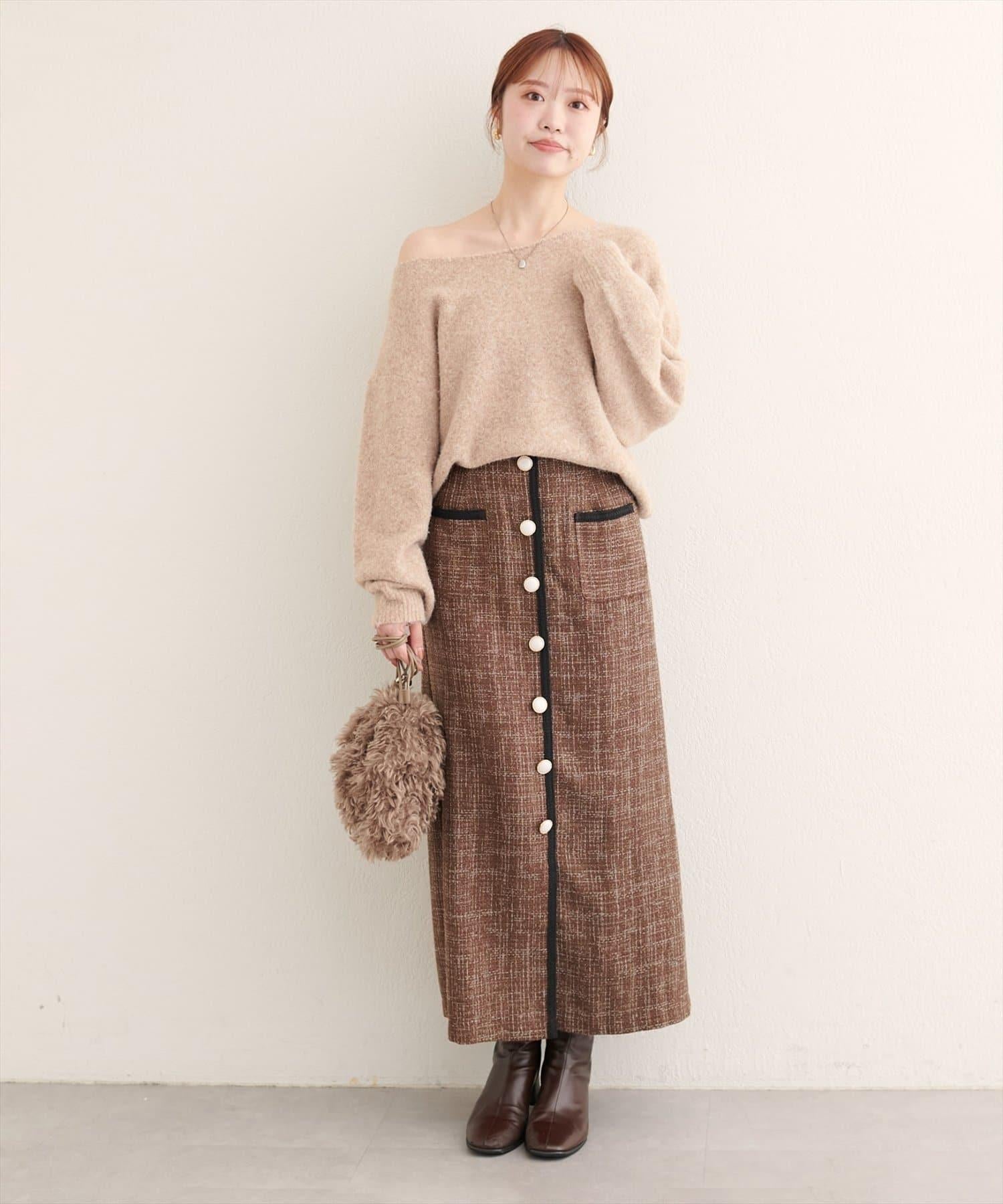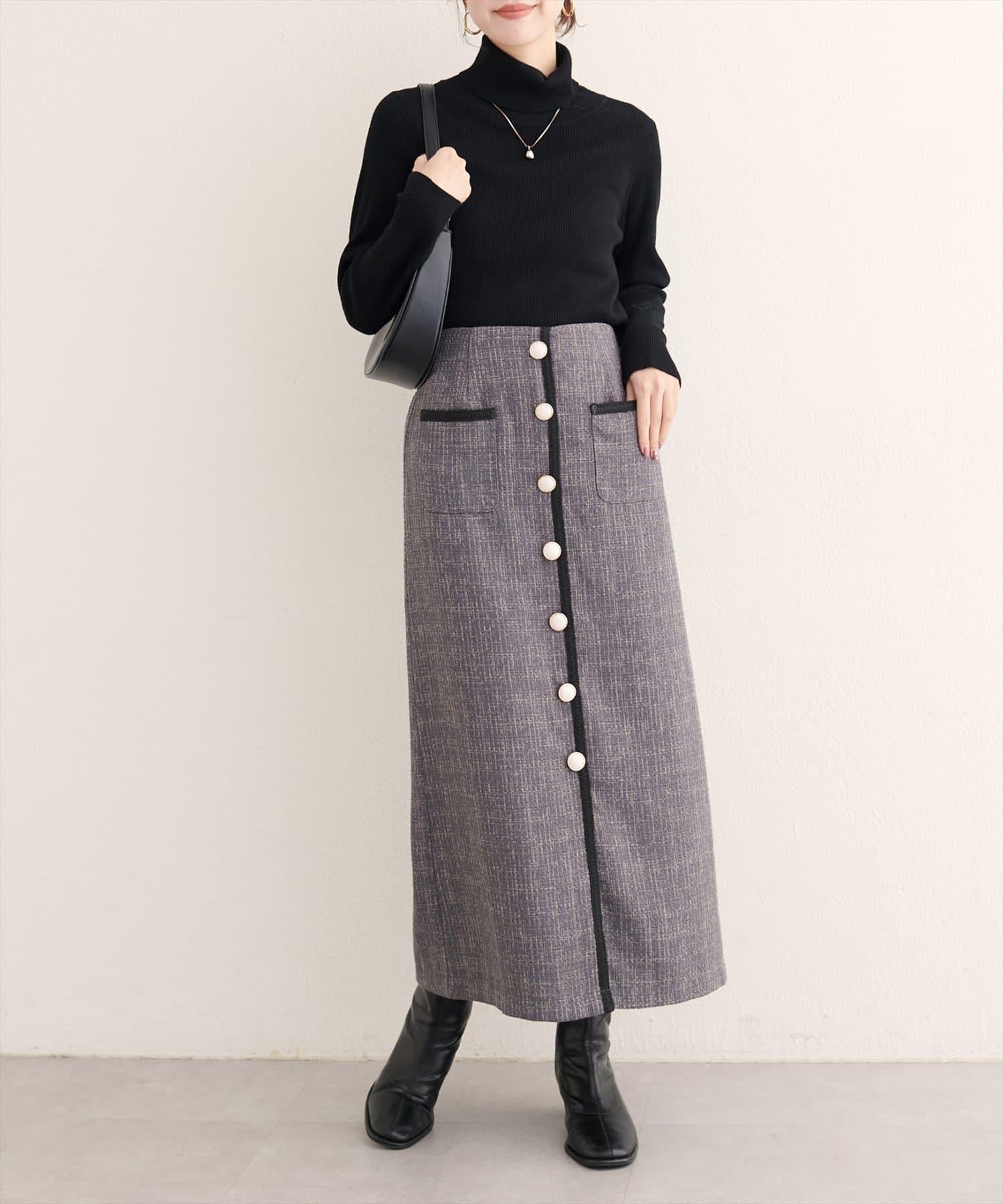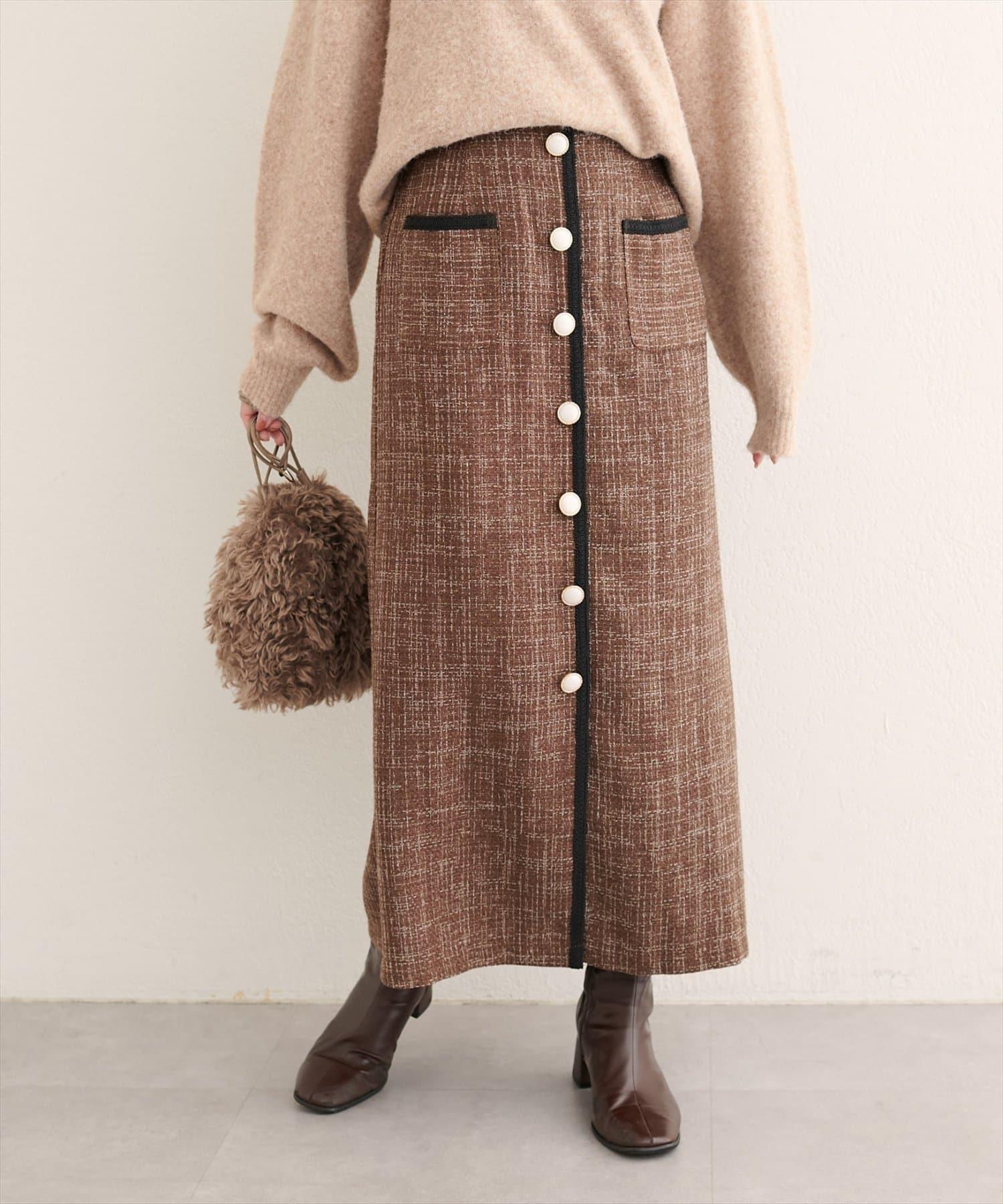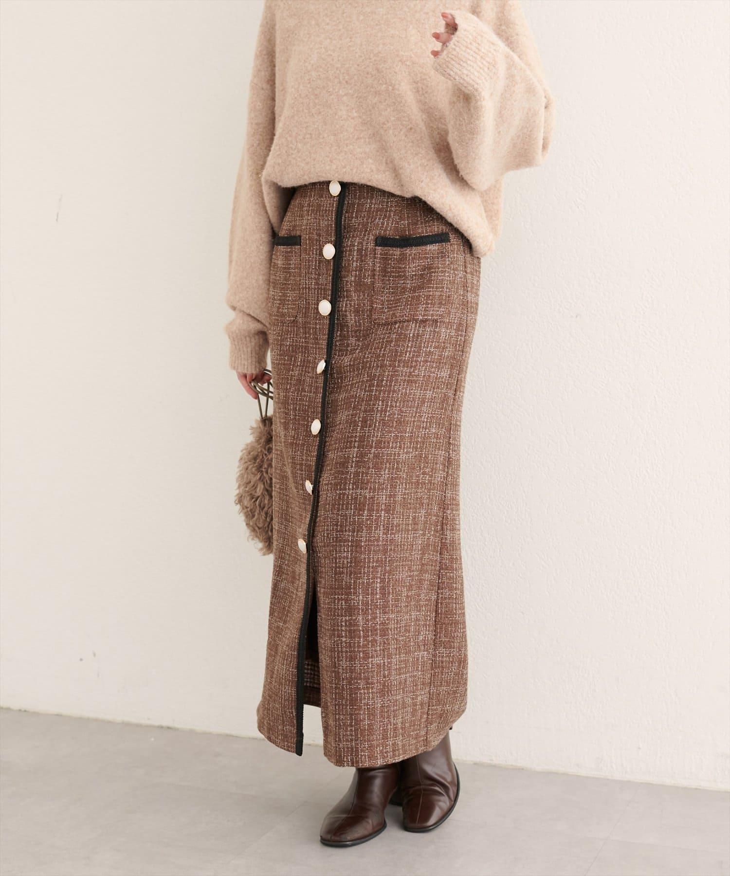 緊身裙的表面採用花呢面料,給人一種協調的感覺。