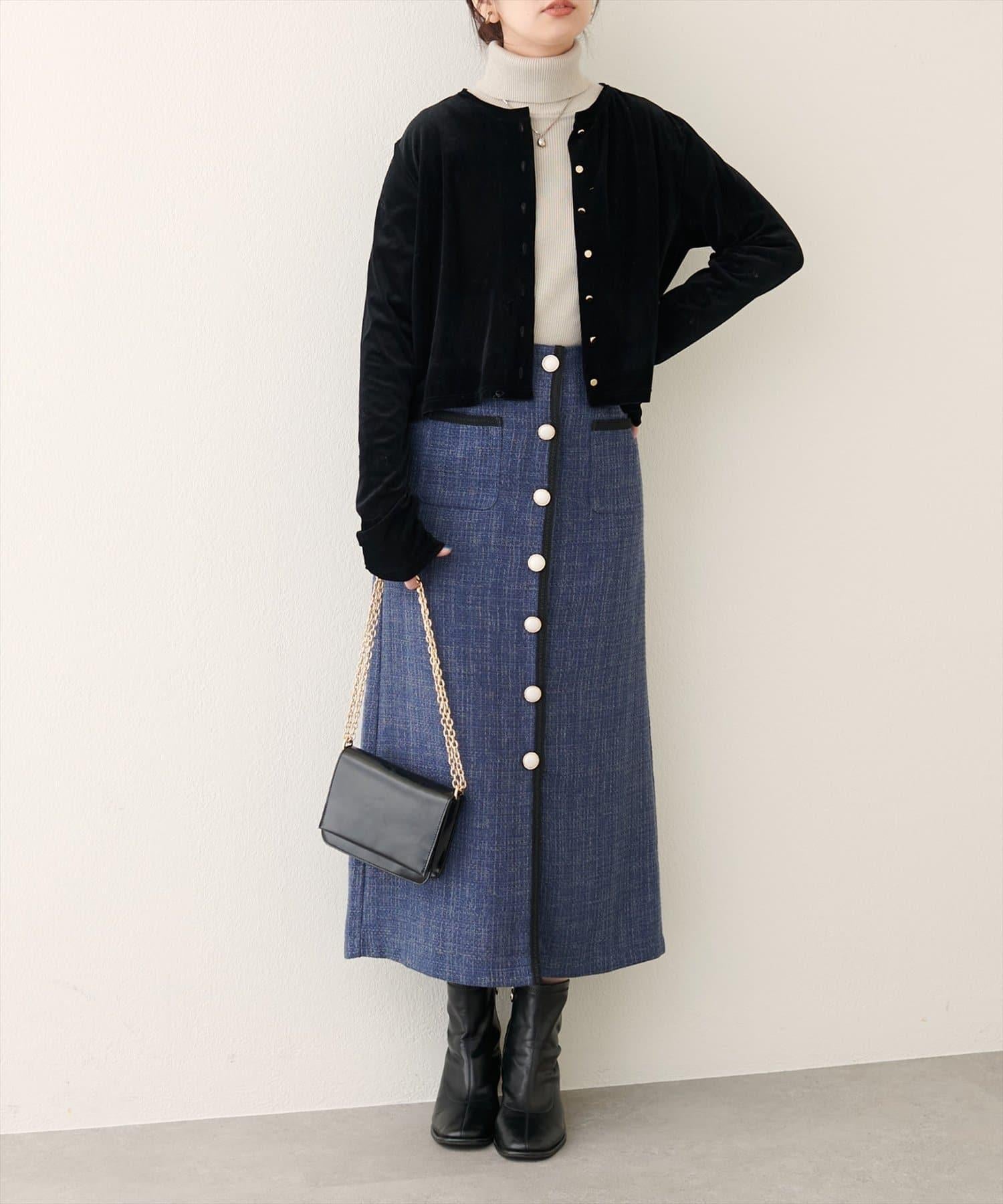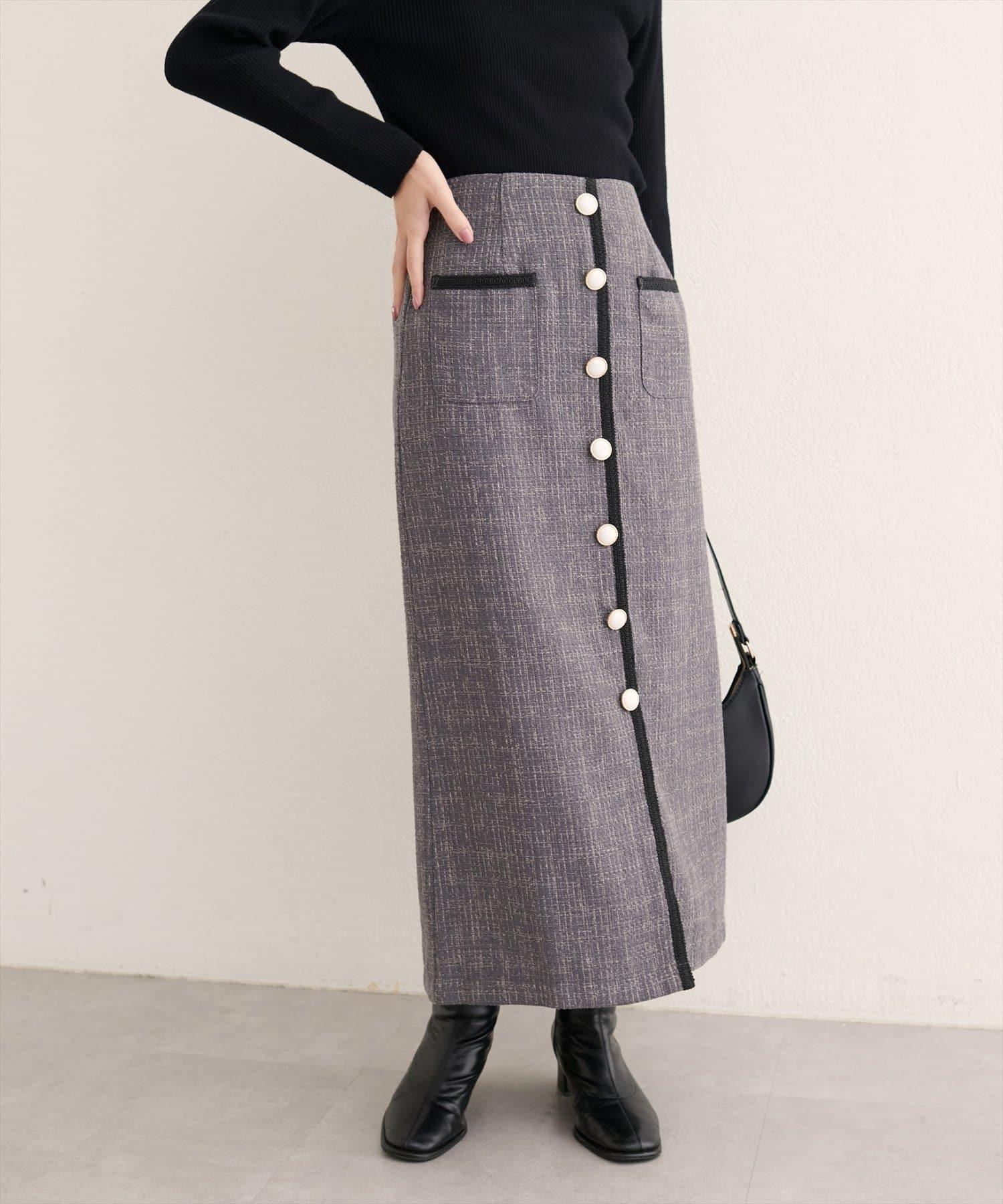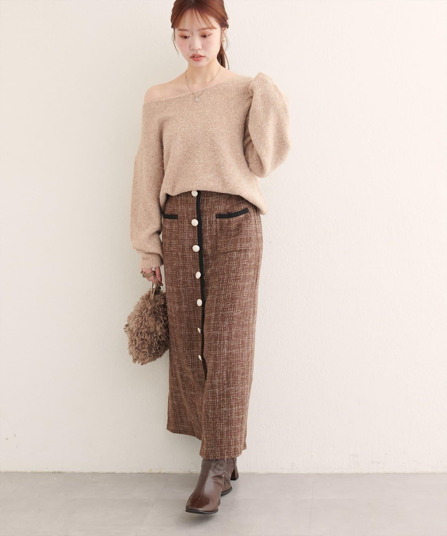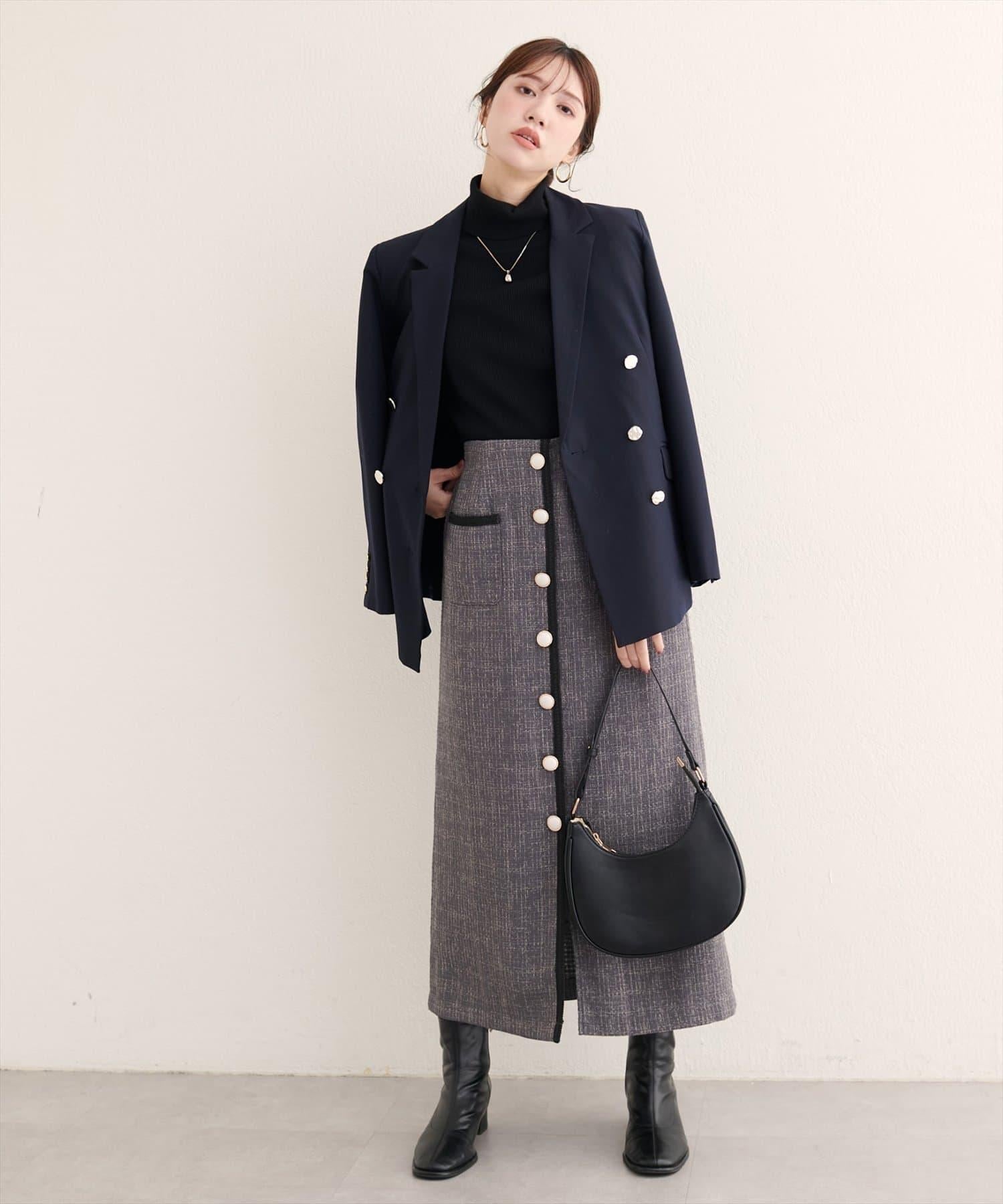 緊身裙的表面採用花呢面料,給人一種協調的感覺。