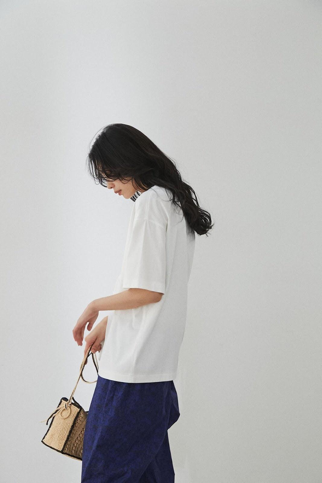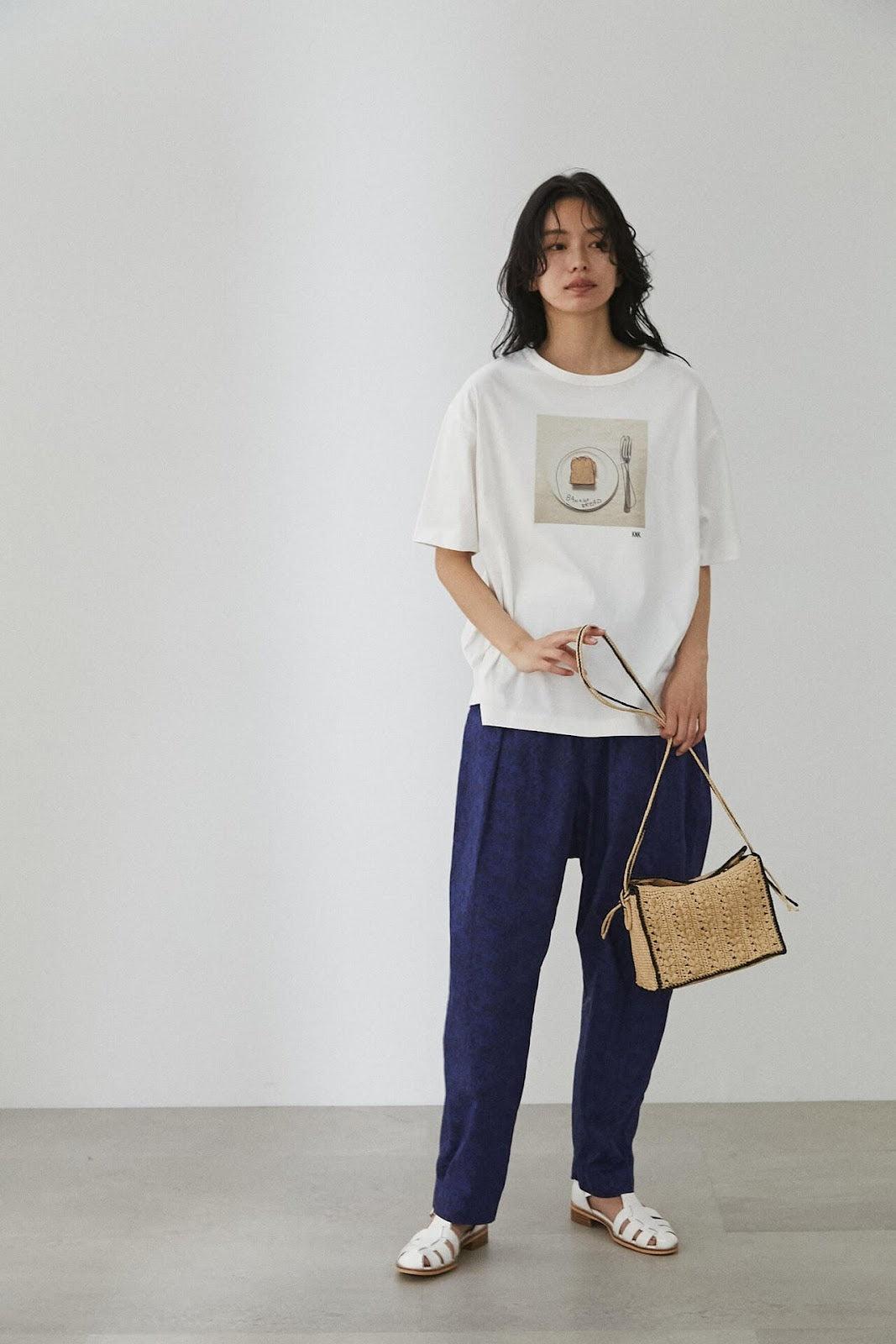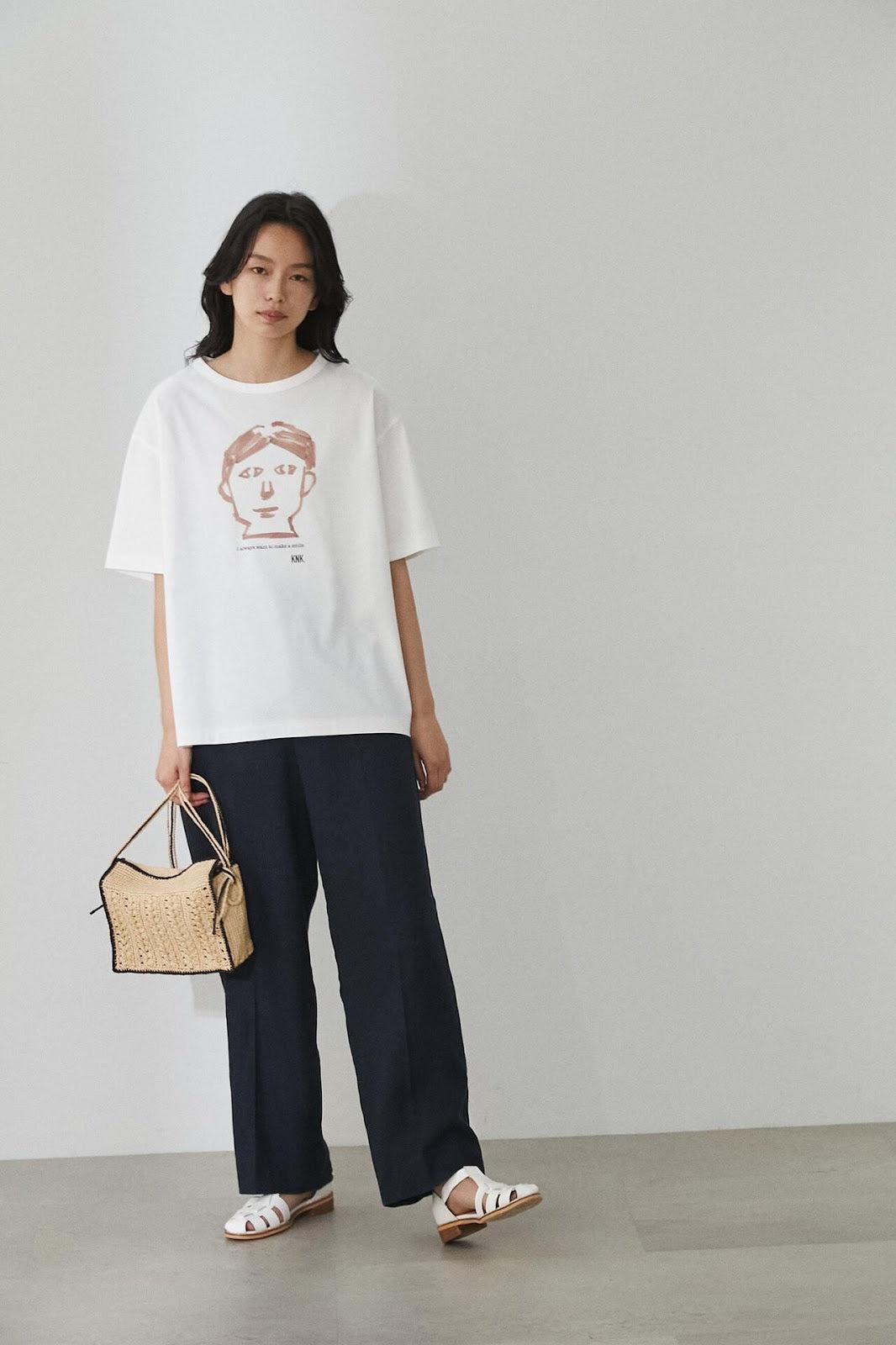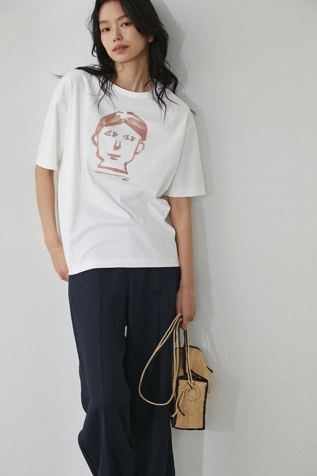 充滿特殊圖案的有機棉 T 恤 [設計要點] 這款有機棉 T 恤是與模特兼藝術家 Kanako 合作製作的。採用寬鬆版型。三個圖案分別是 "在舒適的地方穿自己喜歡的衣服"、"零食時間 "和 "臉",充滿了 Kanako 的特色。面料為光滑、美觀、不透明的有機棉面料。推薦搭配】這是一款適合日常穿著的單品,從下身寬鬆的休閒裝到下身美觀的模式裝,都能輕鬆駕馭。