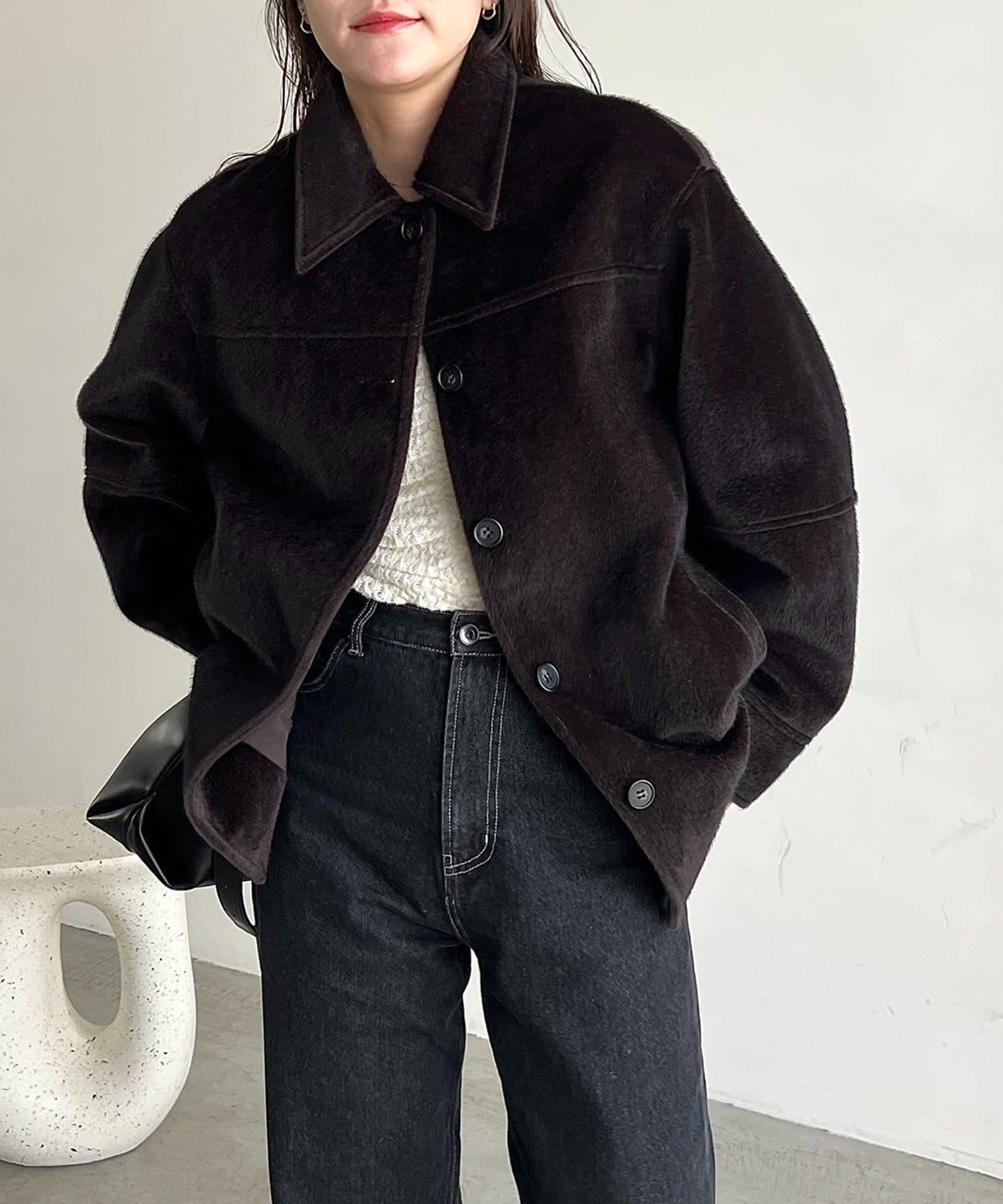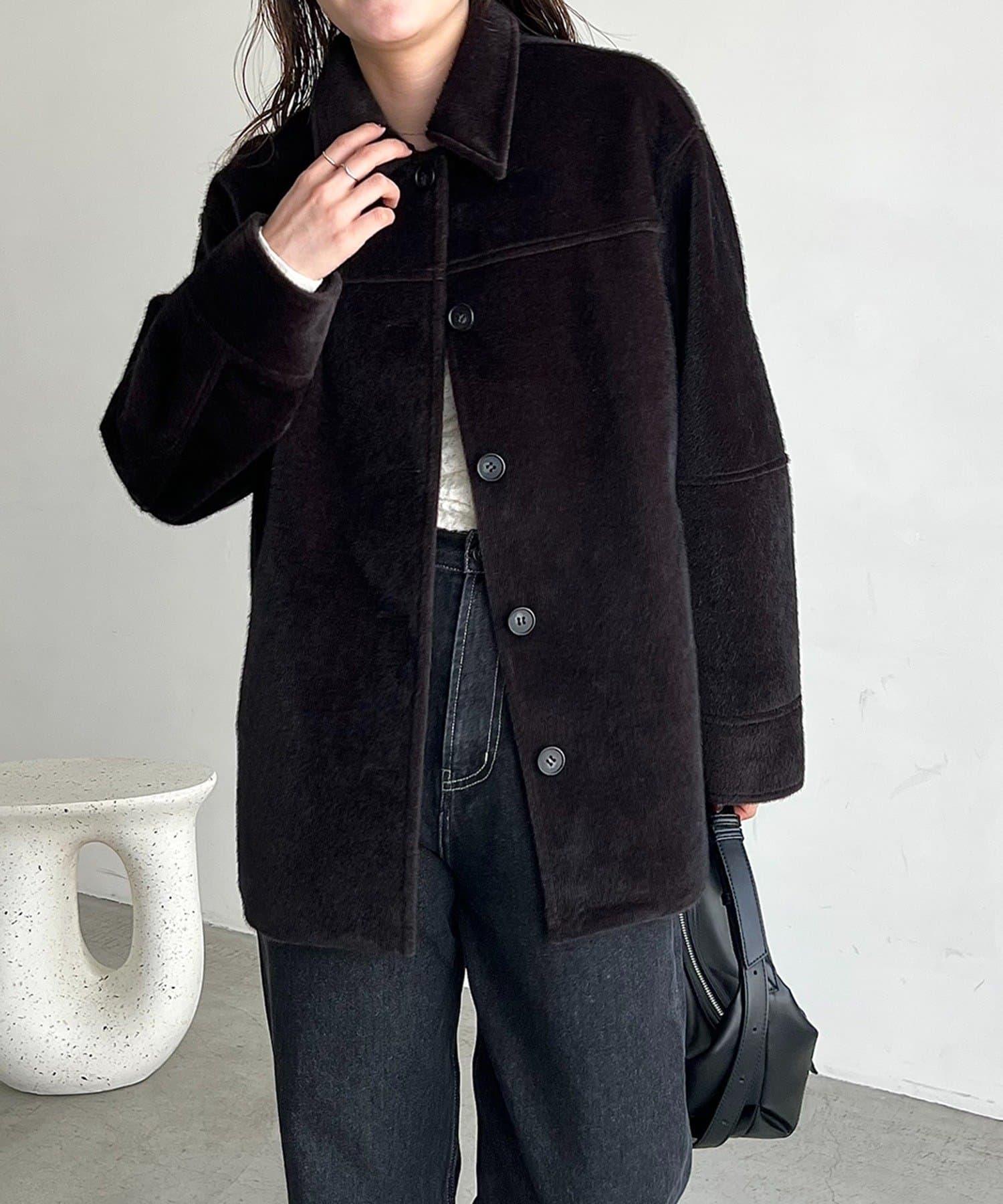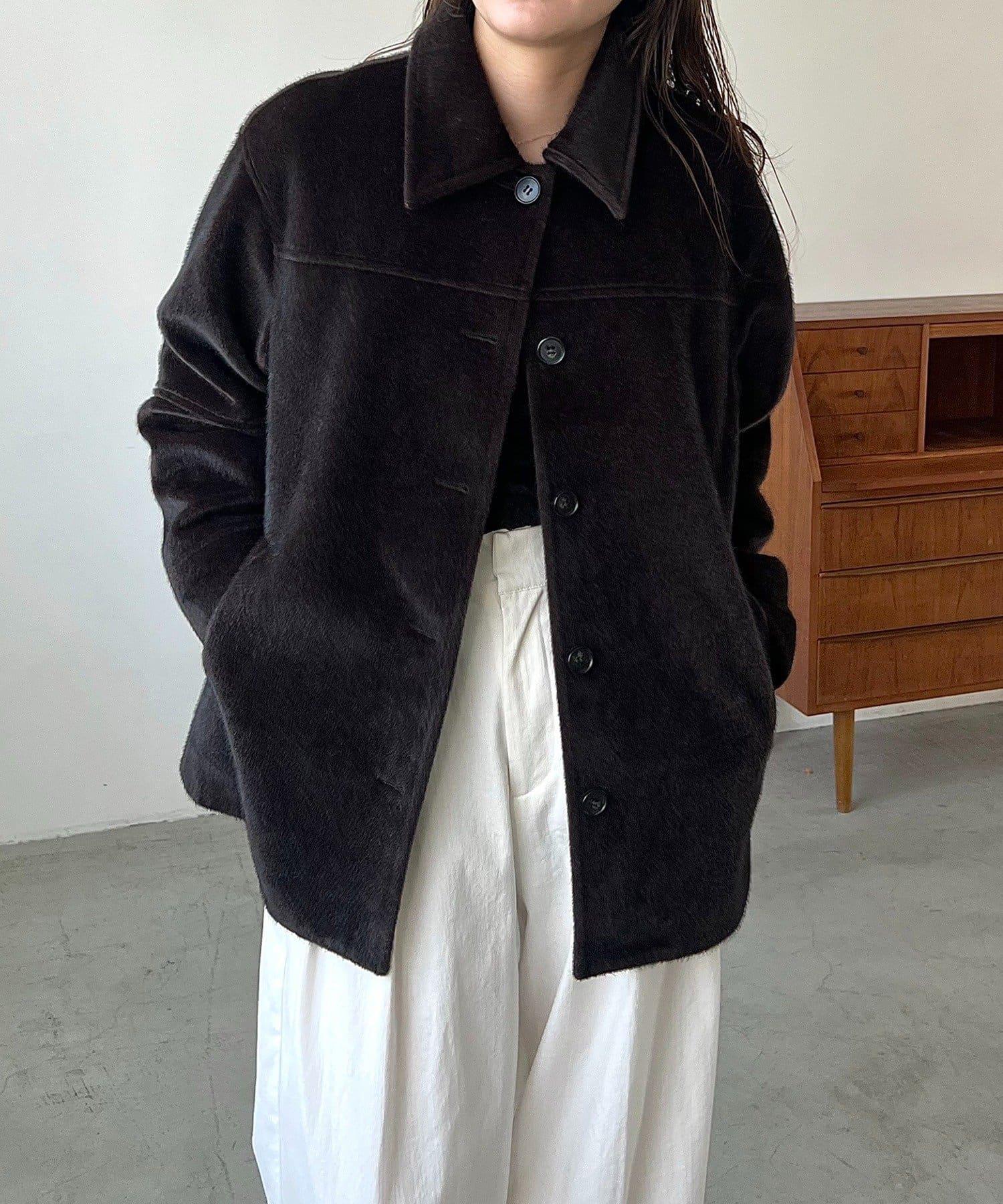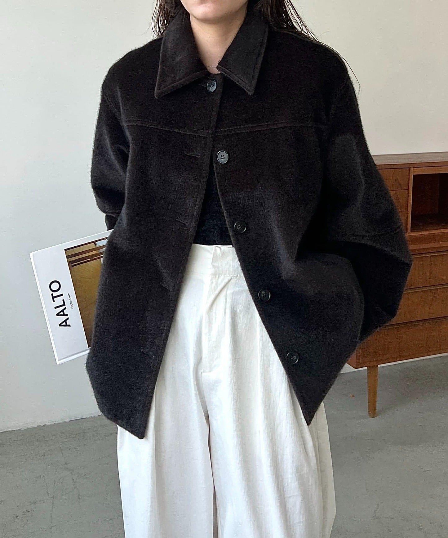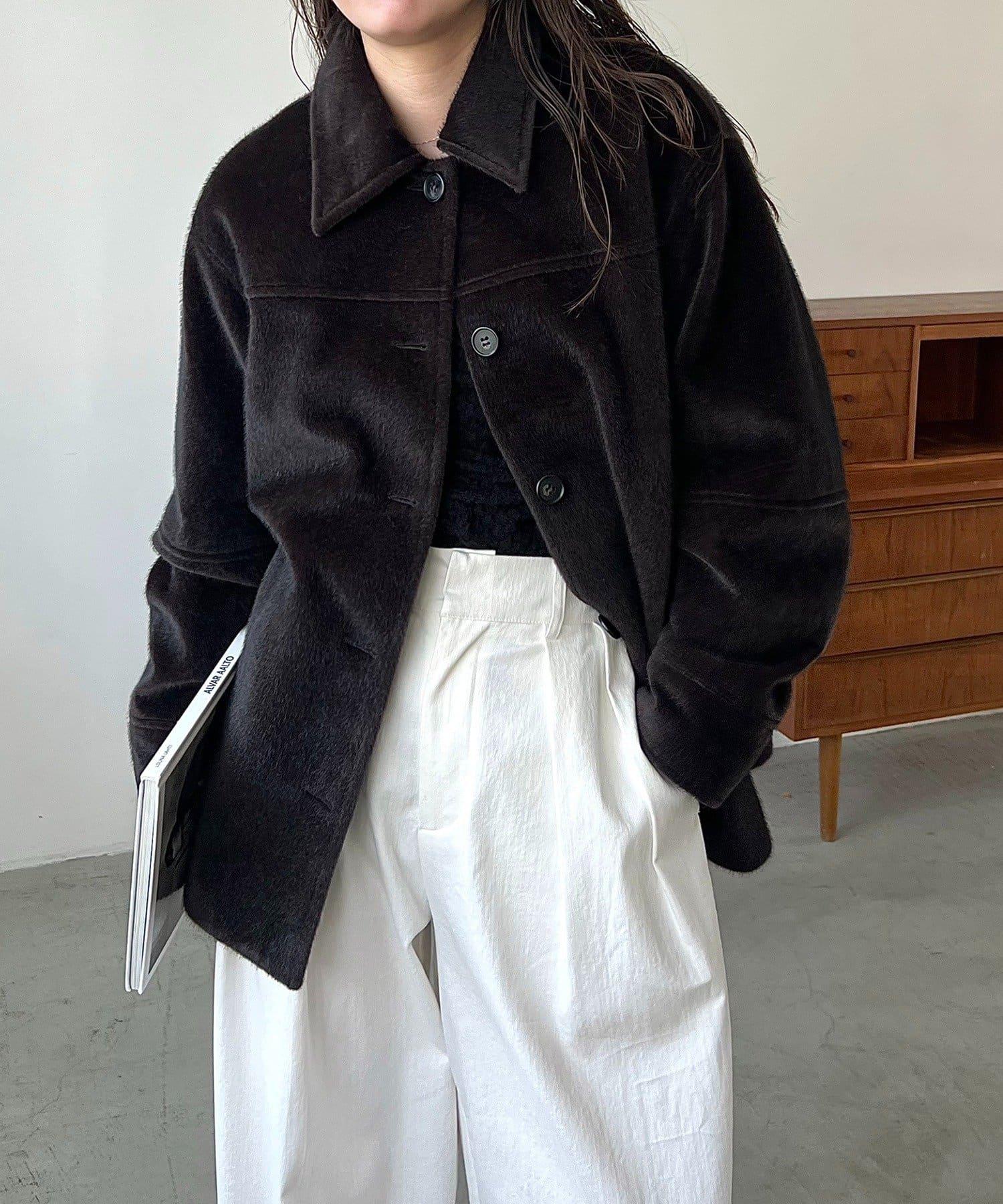 與眾不同的半身大衣,採用類似馬毛的短料製成。