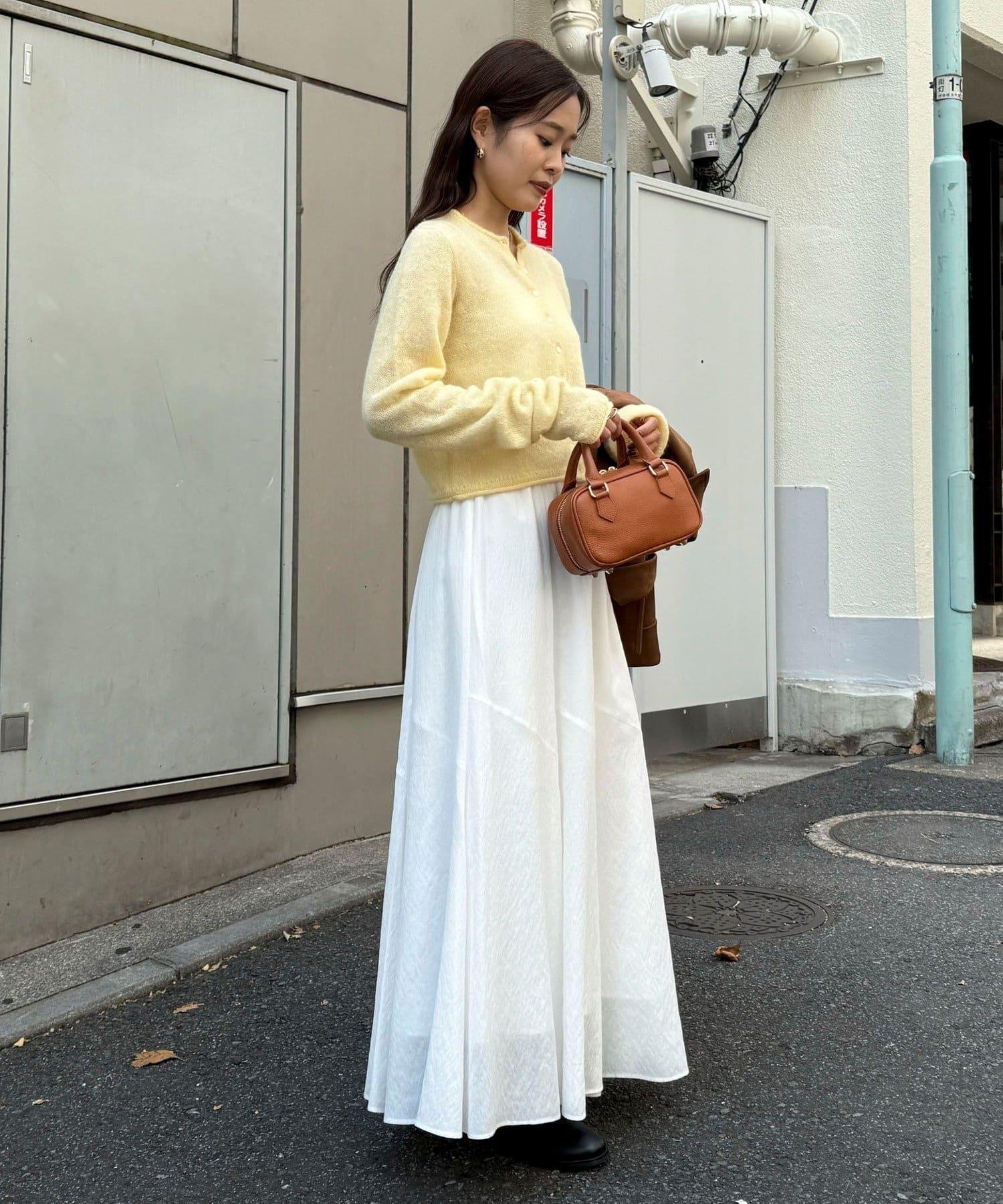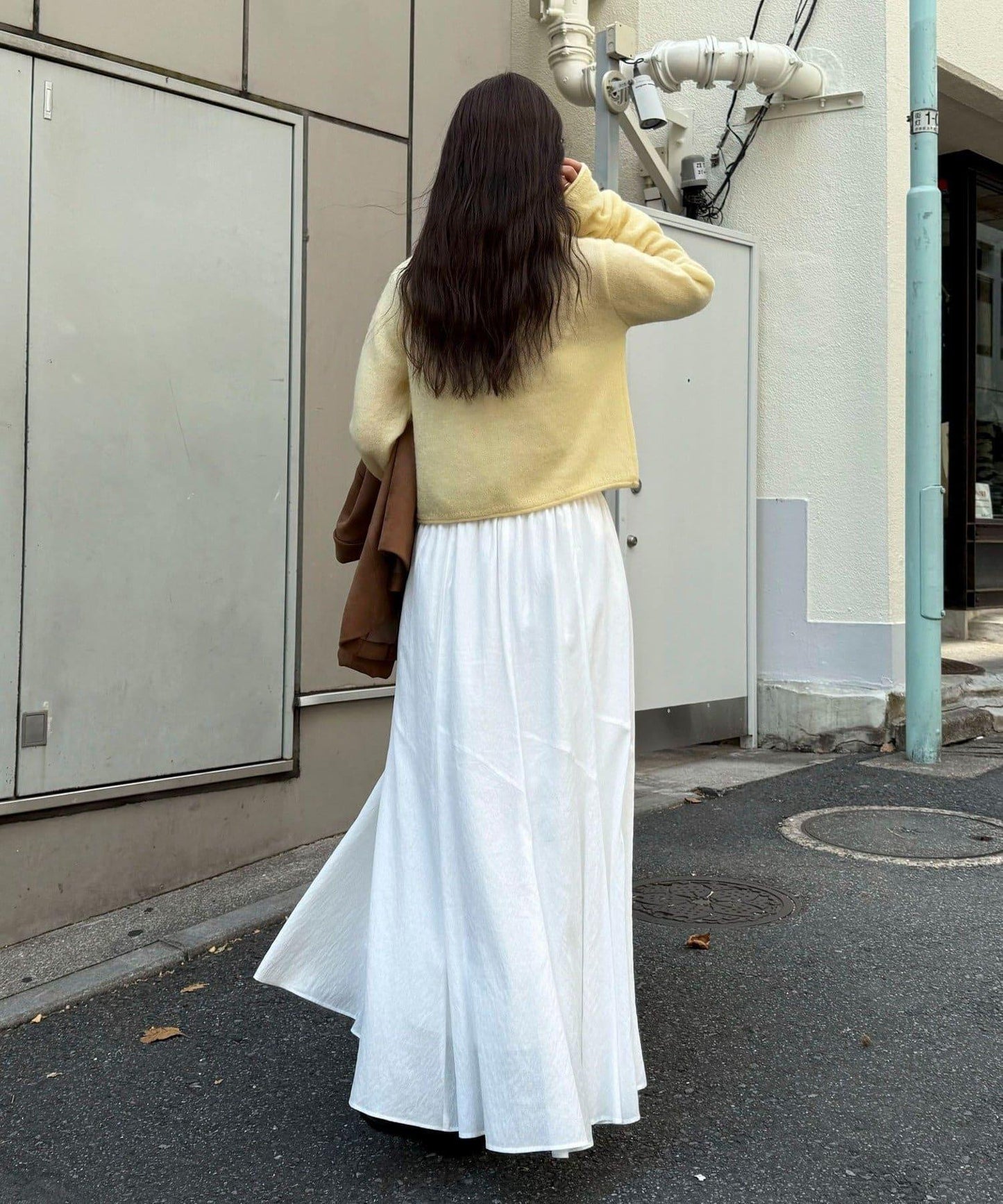 身高 156 厘米/穿 38 號:小巧的剪裁易於疊穿,蓬鬆的面料給人女性化的印象。我還很喜歡袖子的安排,捲起來就像半身裙一樣!