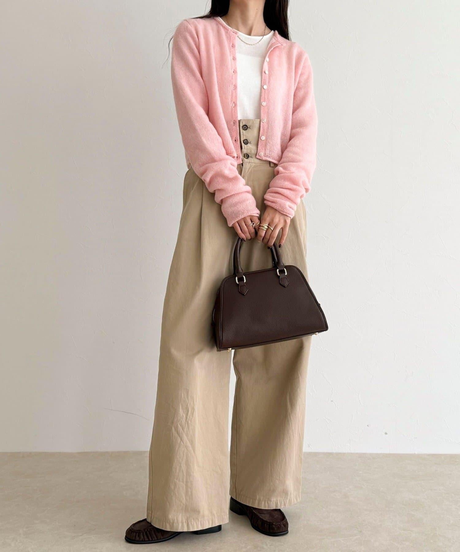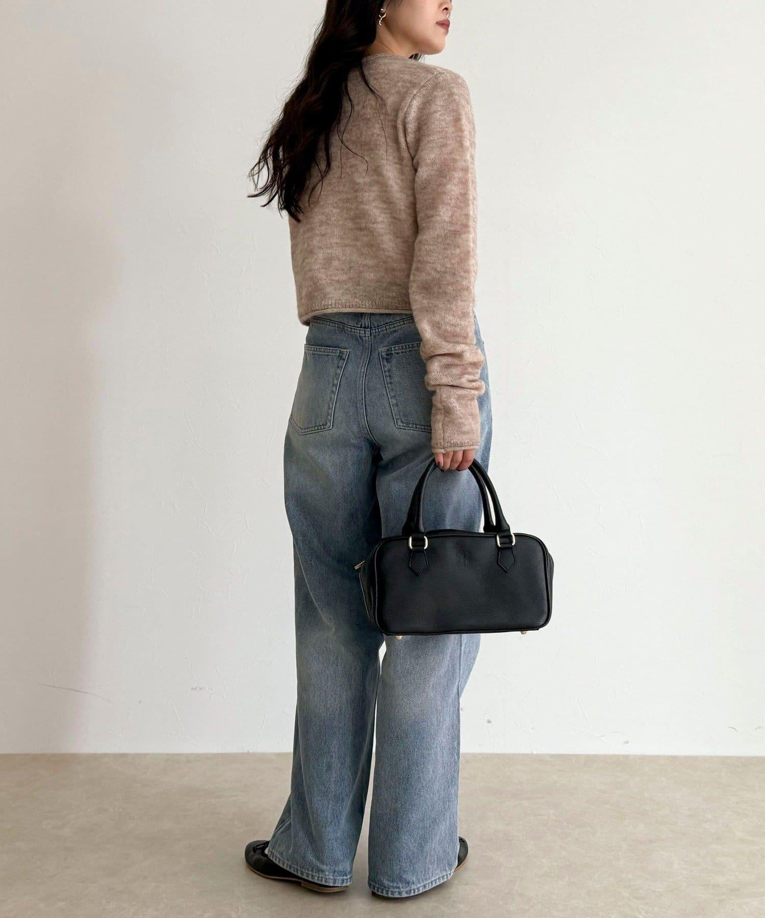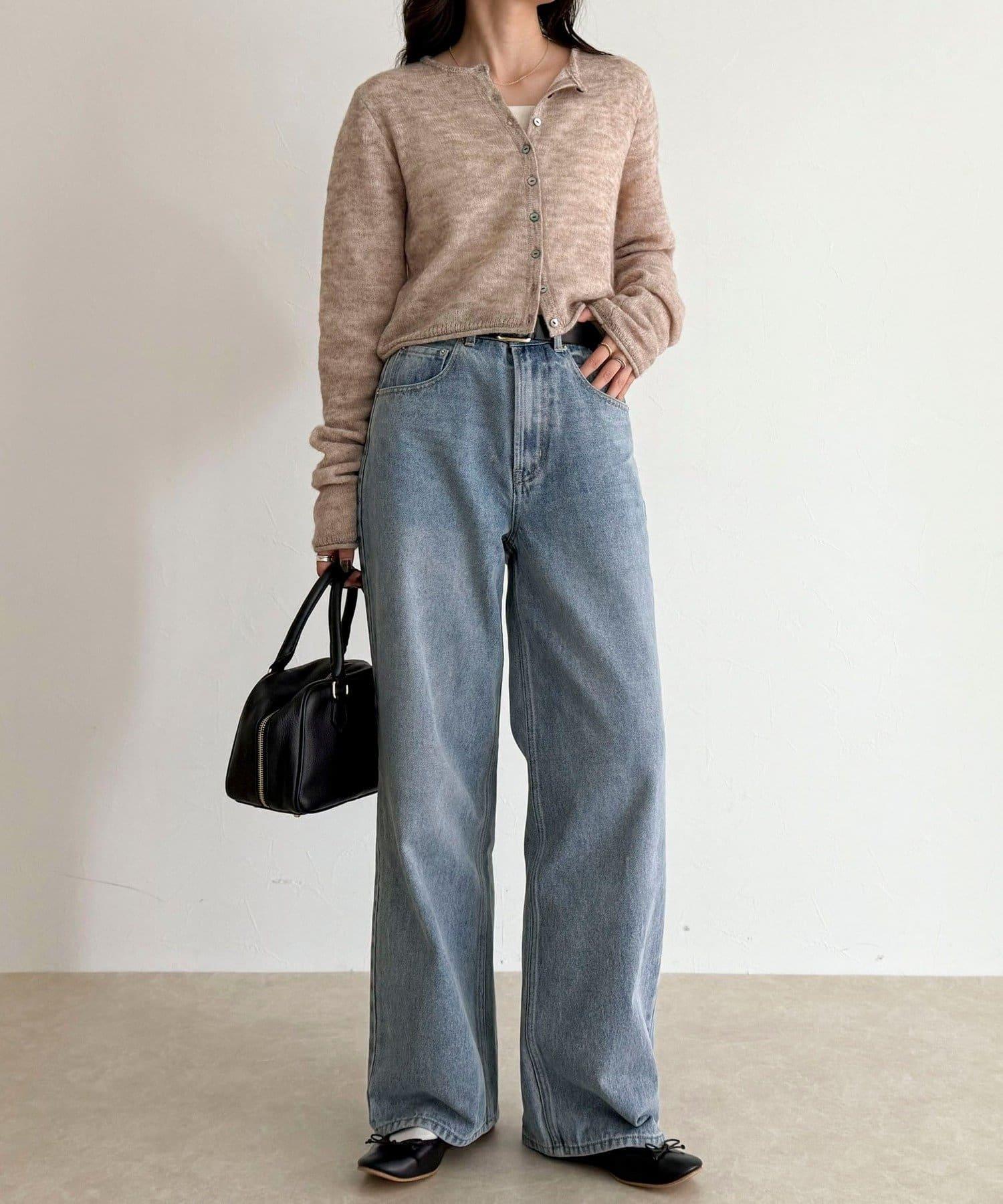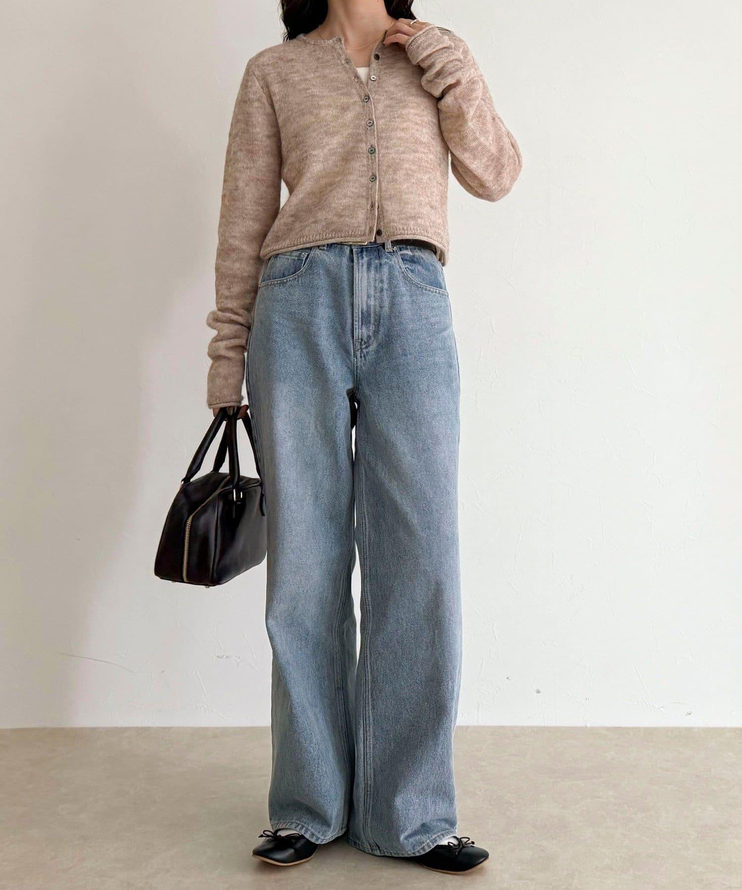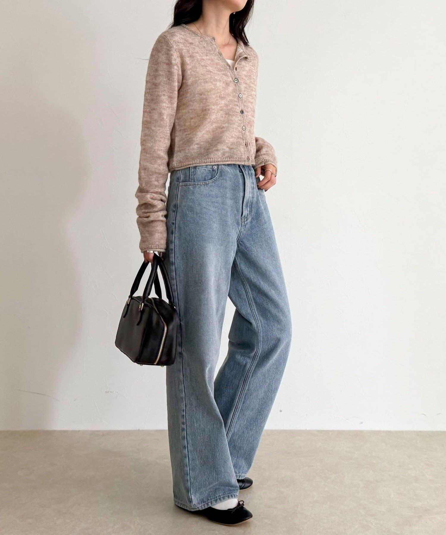 這款開衫採用馬海毛混紡面料特有的蓬鬆材質。