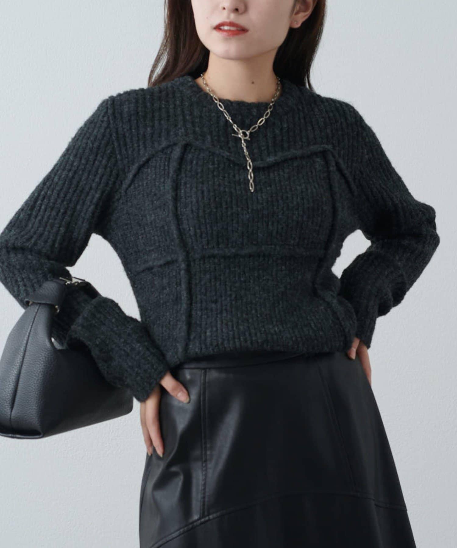 單件針織衫,為您帶來時尚外觀。束胸設計針織衫。