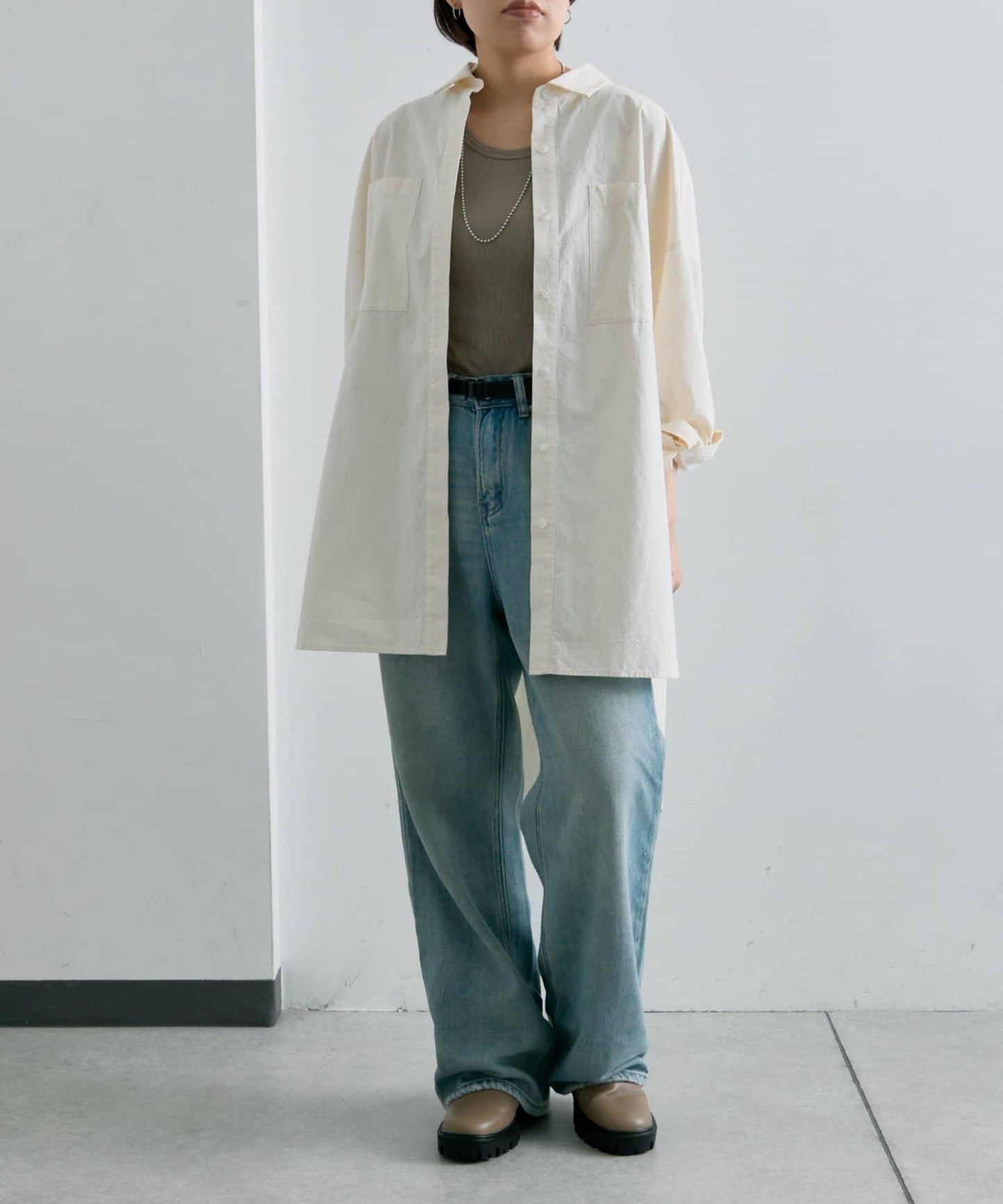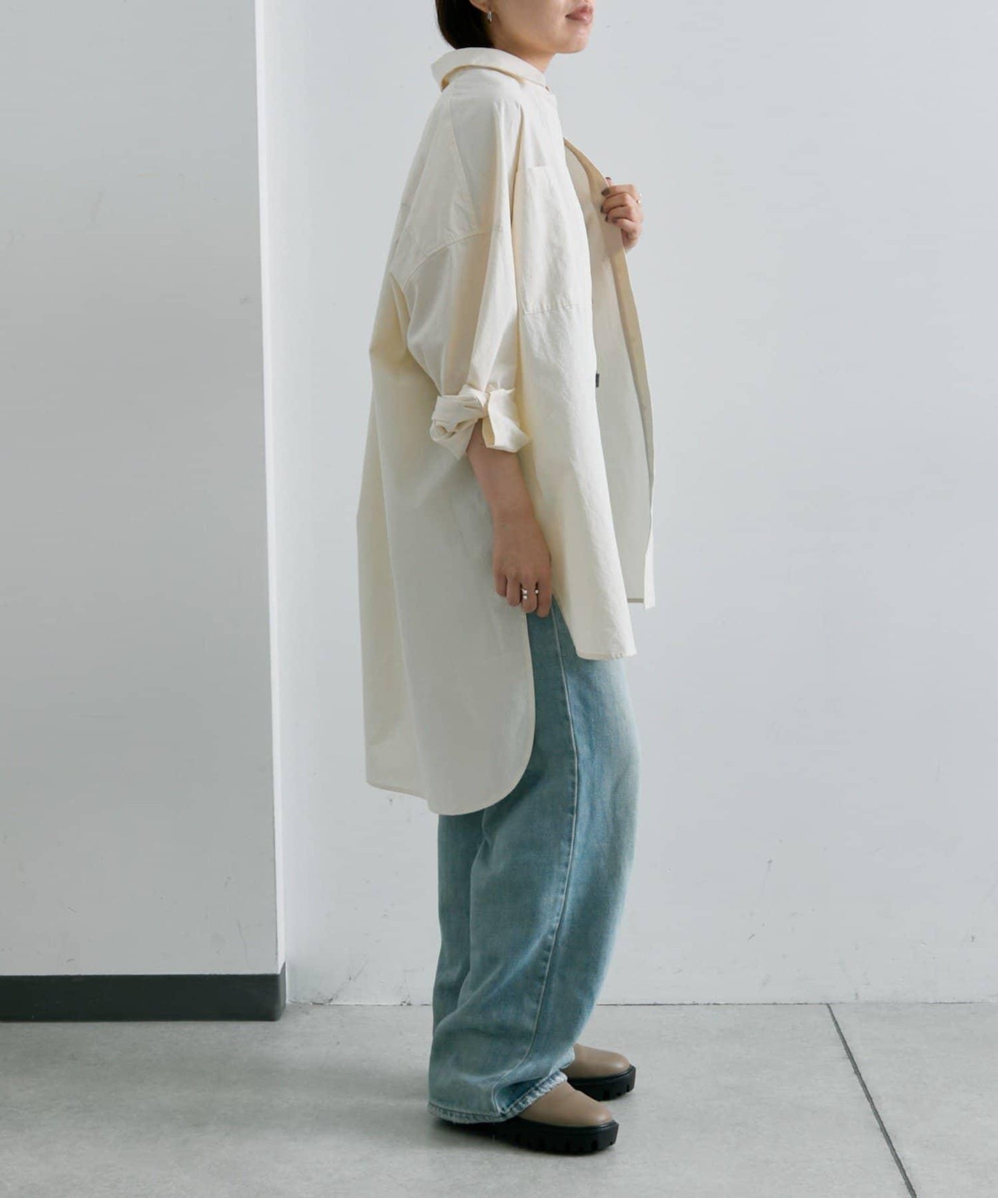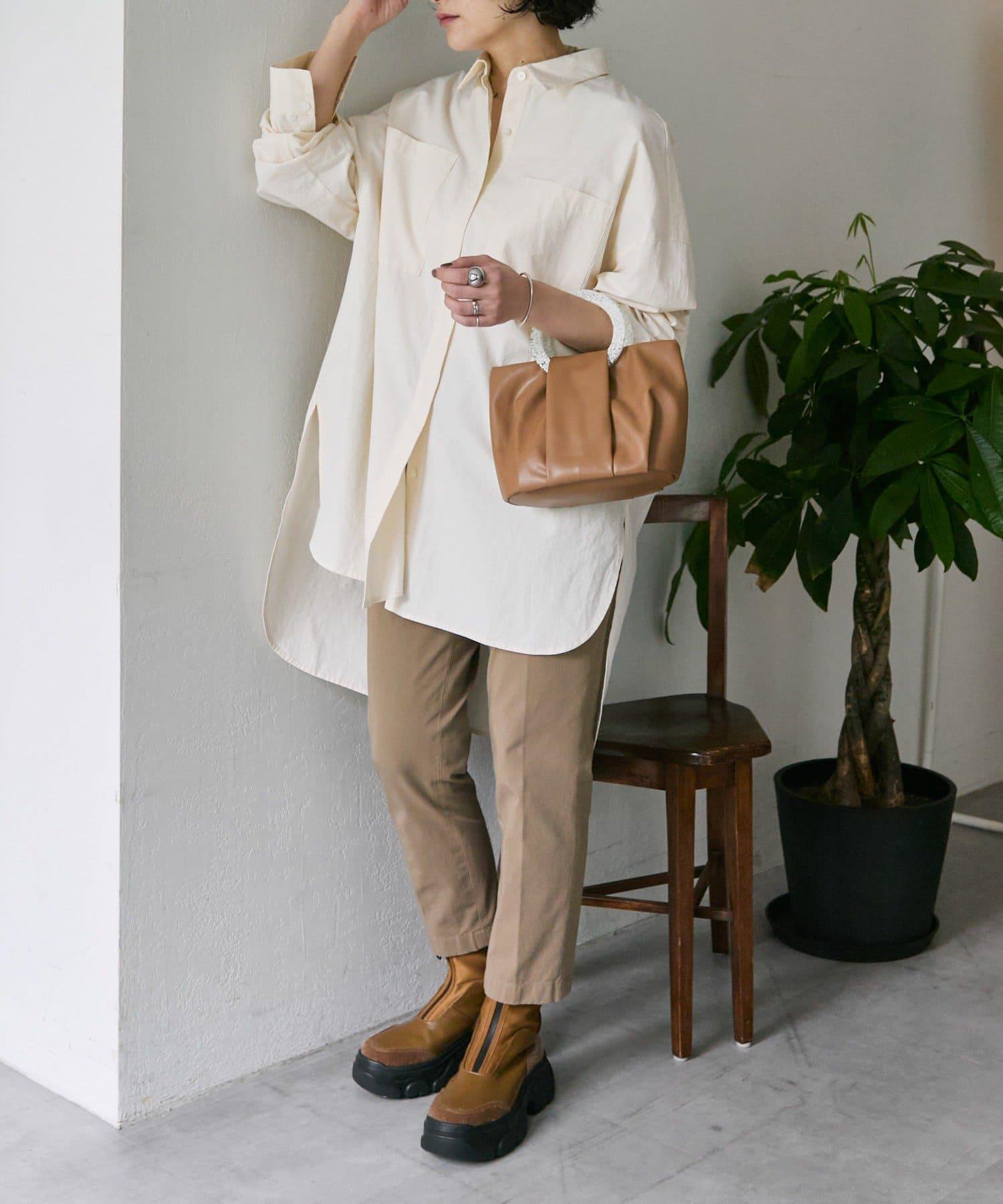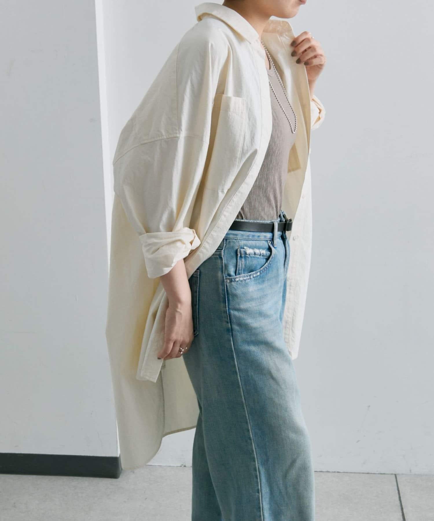 《體型遮掩/寬鬆版型/100%純棉》不對稱長款襯衫【SUM1 STYLE(スミスタイル)】