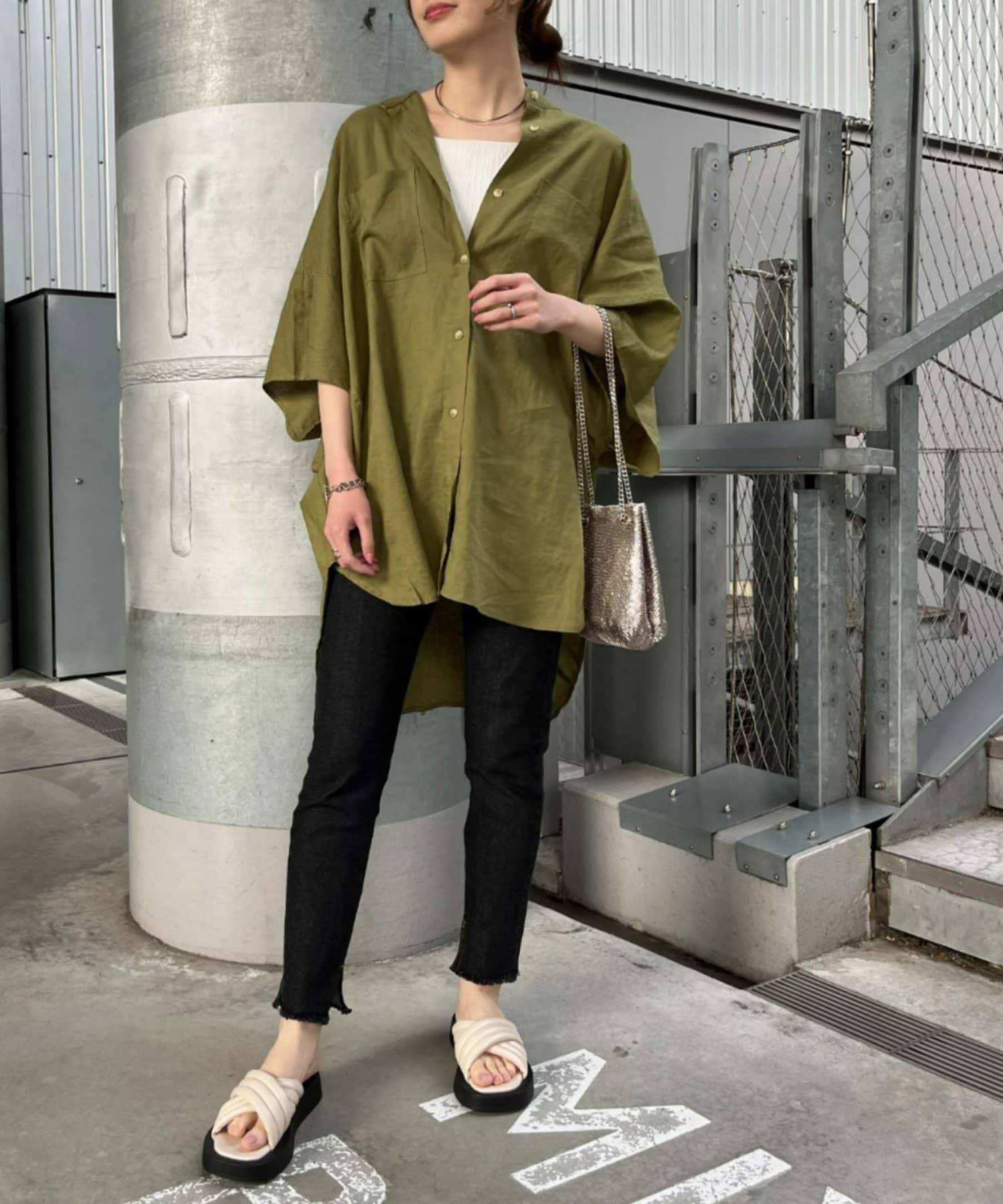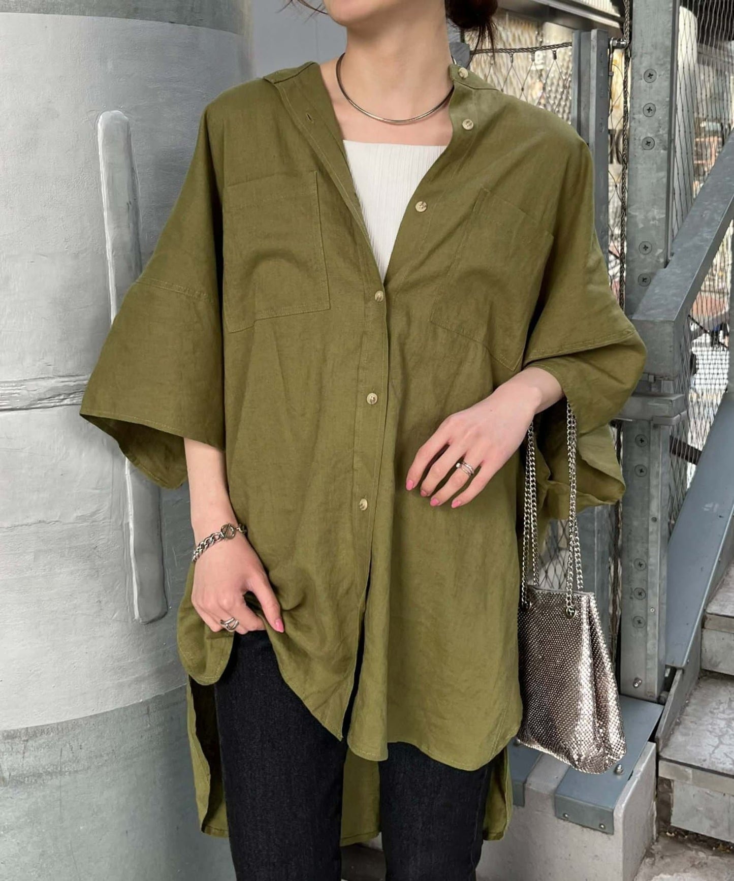 【體型遮蓋】亞麻粘膠多爾曼襯衫
