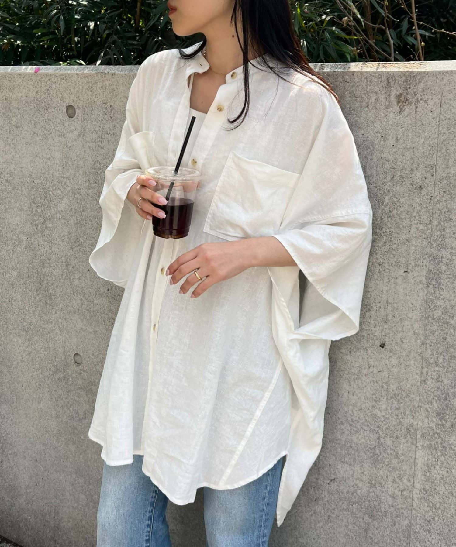 亞麻-人造絲超大號襯衫,寬鬆感十足。