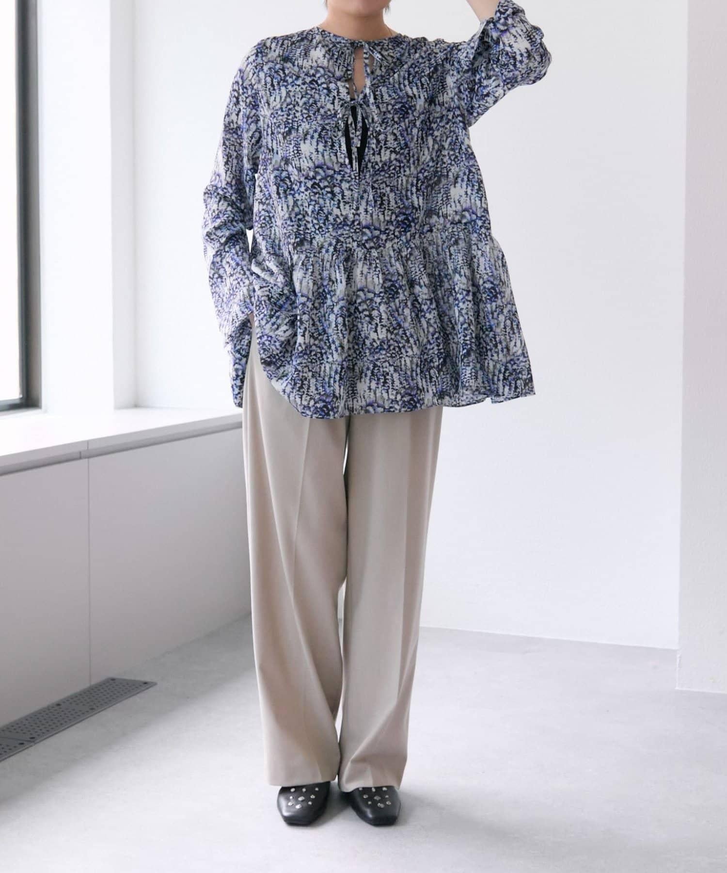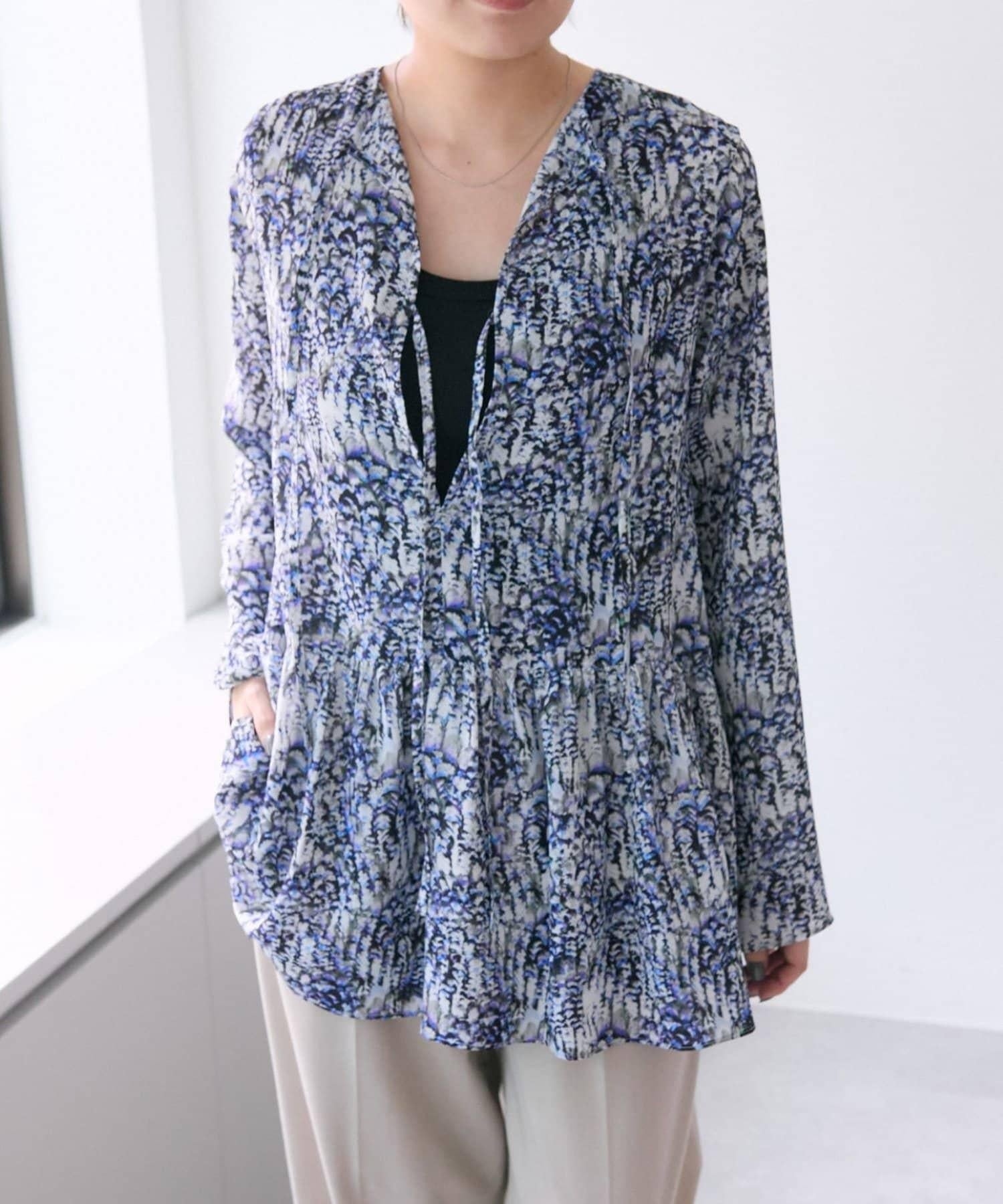 《體型遮蓋/前後2WAY》花卉印花長款襯衫【SUM1 STYLE(斯密風格)】