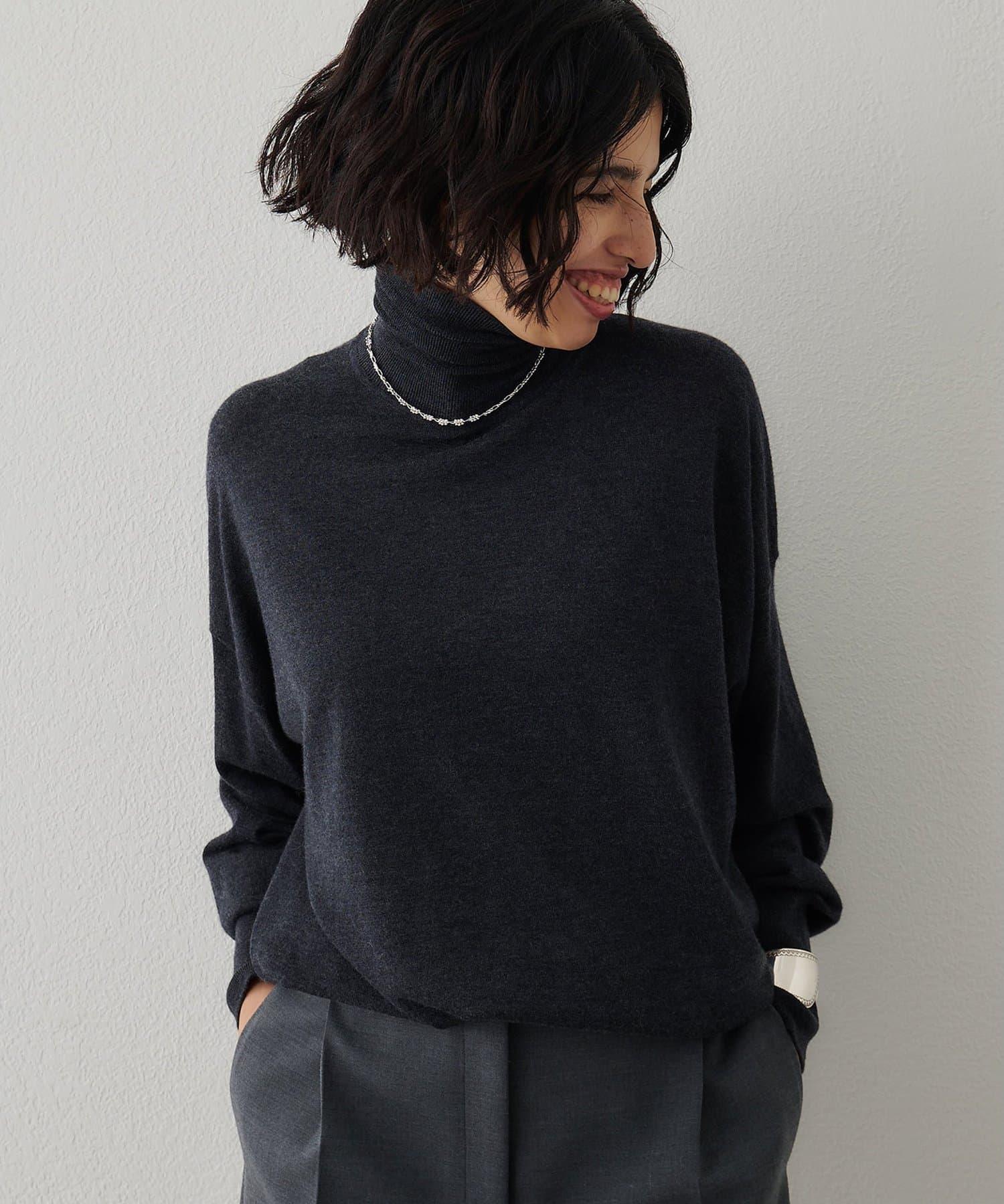 手感極佳、光澤優雅的高領針織衫。