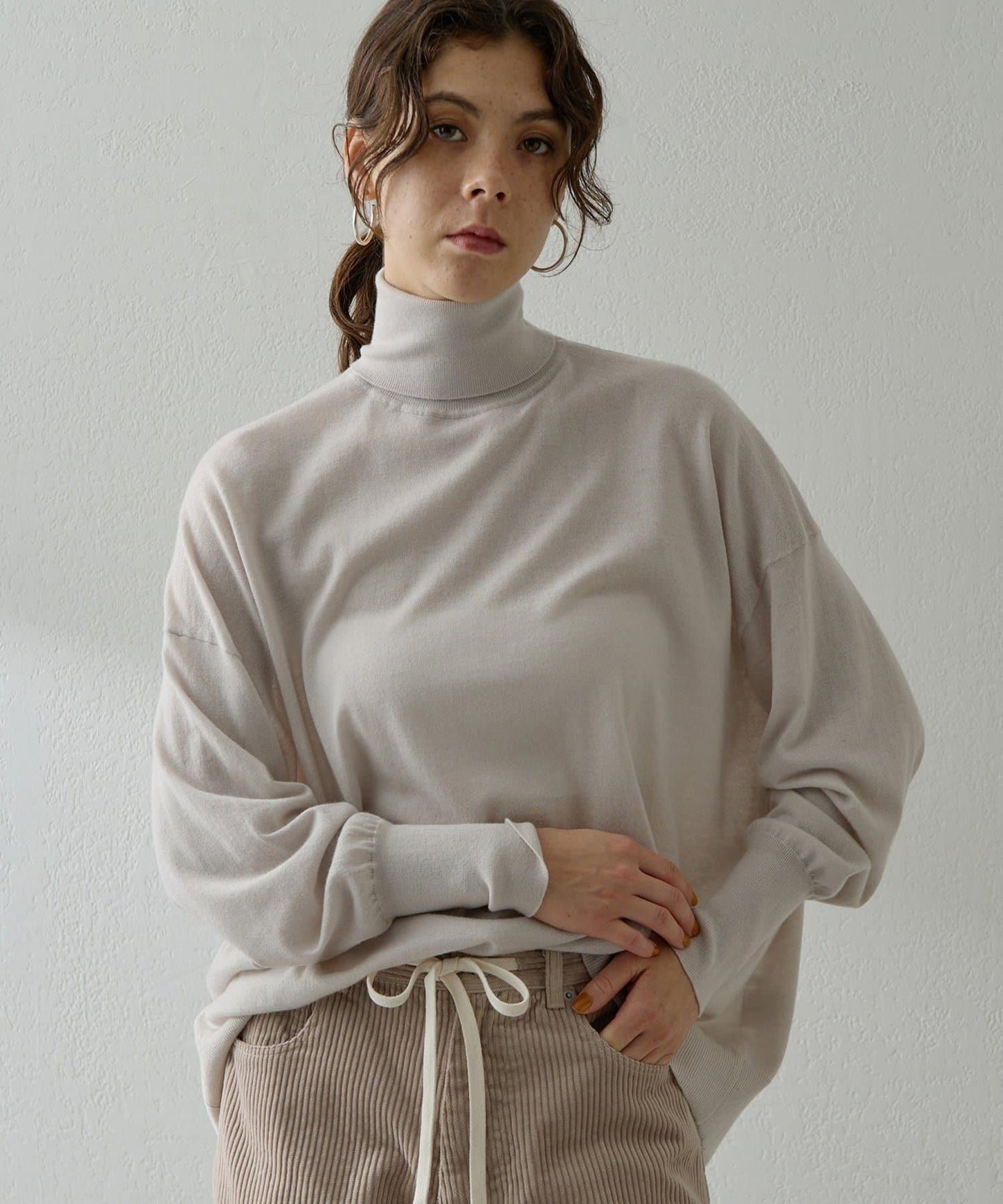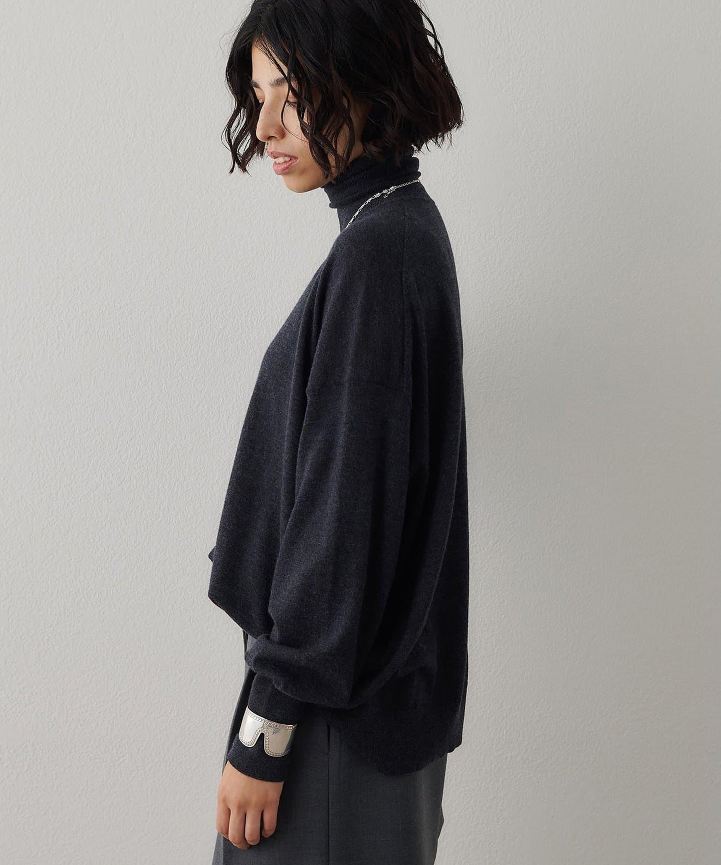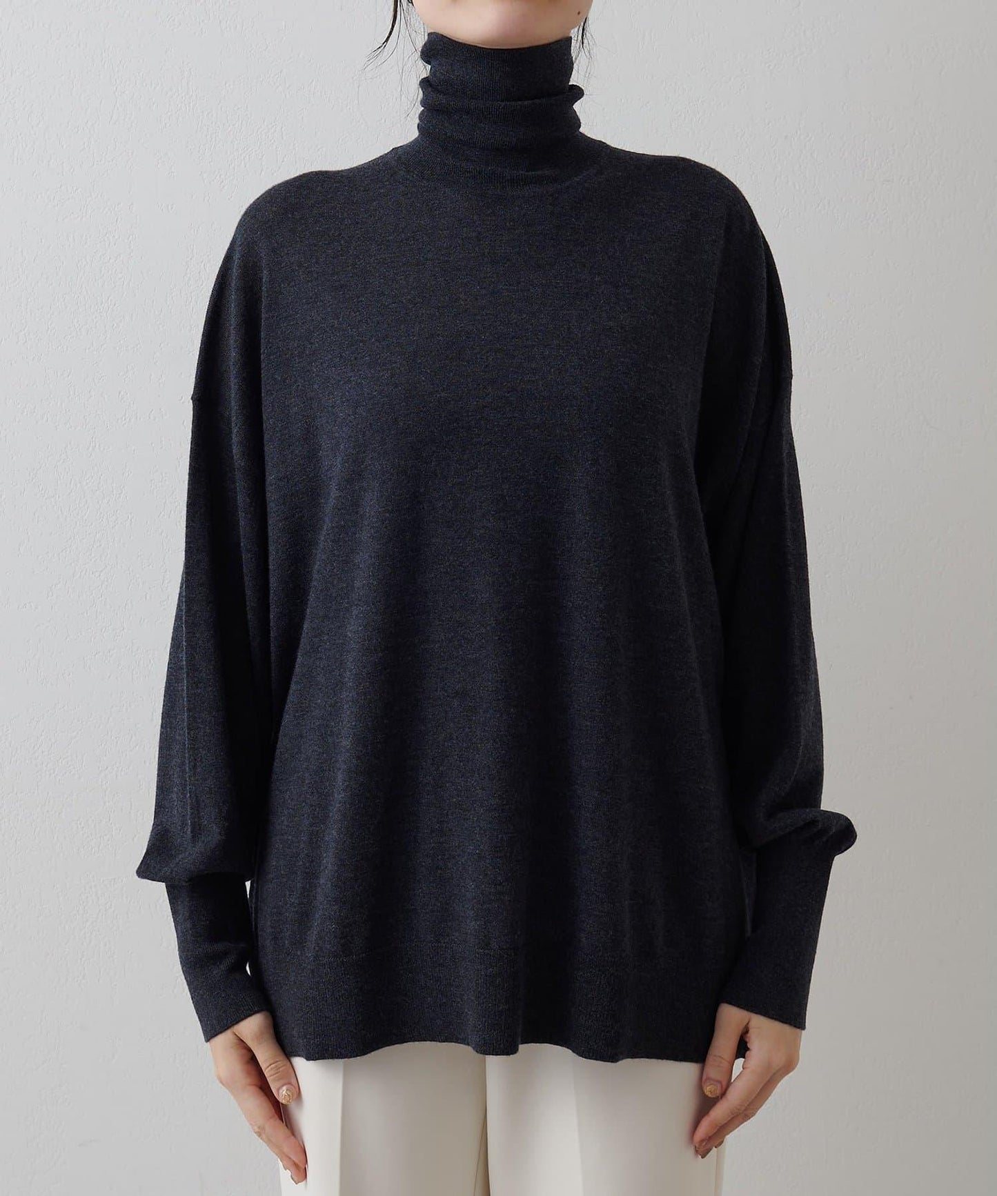 寬鬆的衣身廓形與高領寬度的完美平衡,只需穿上它就能營造出美麗的外觀。