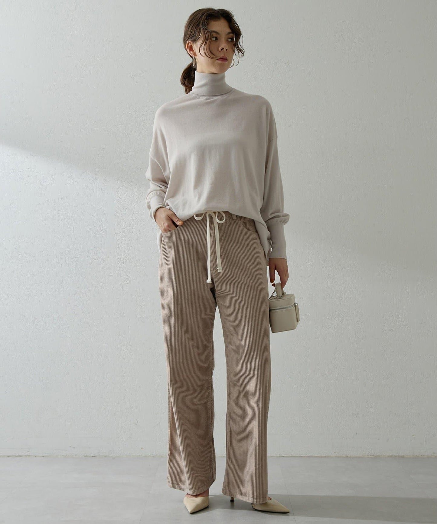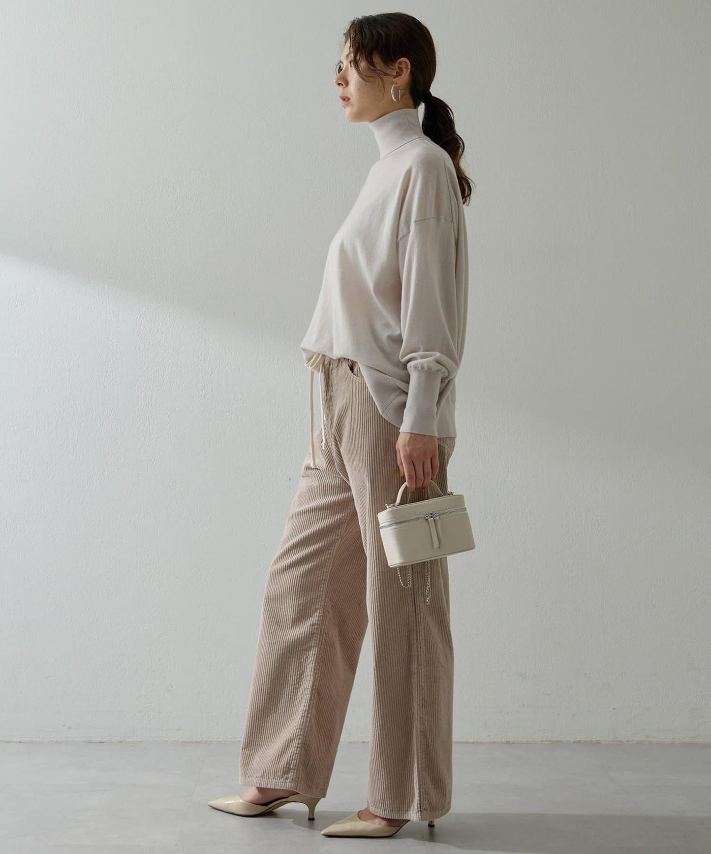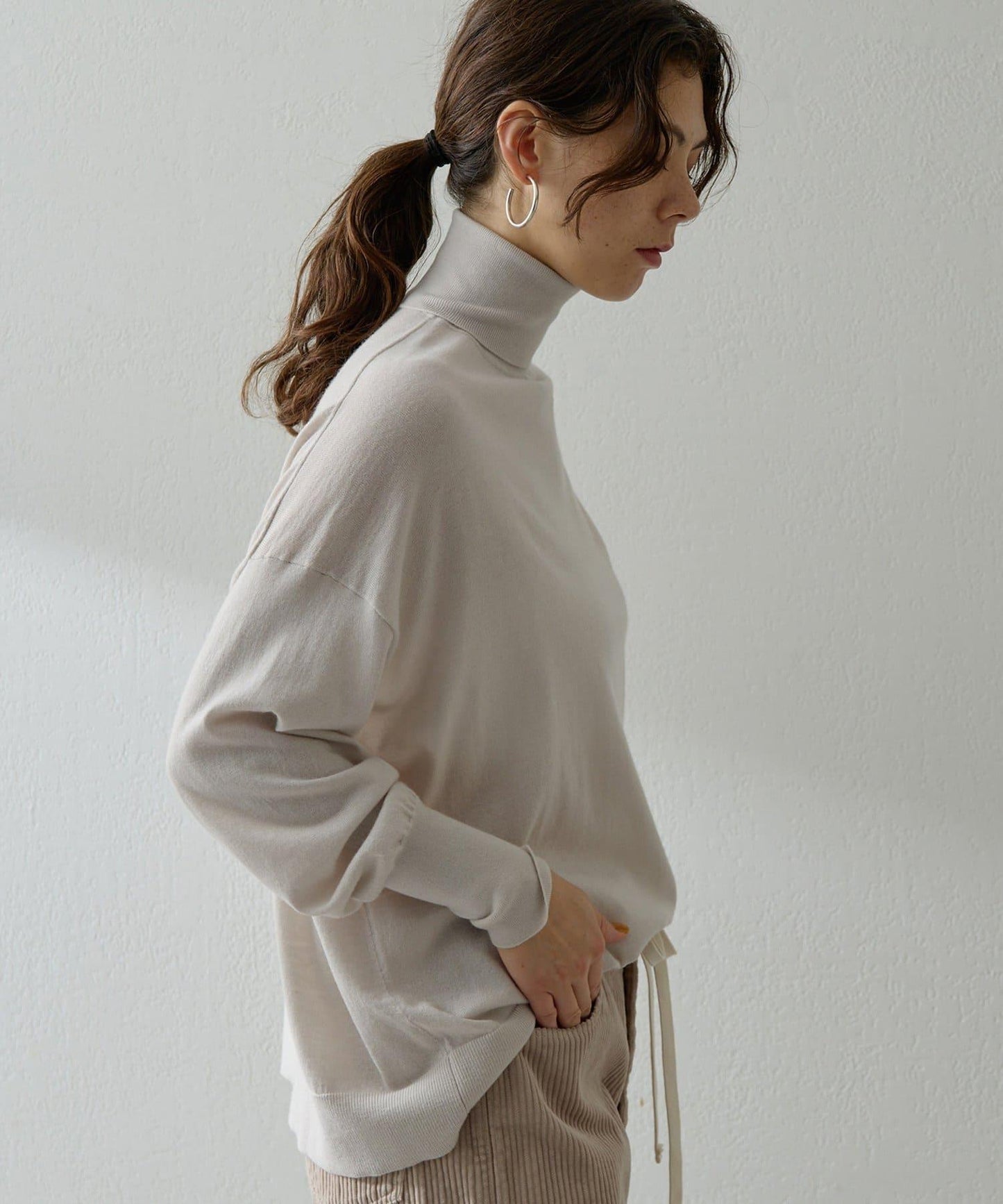 寬鬆的衣身廓形與高領寬度的完美平衡,只需穿上它就能營造出美麗的外觀。