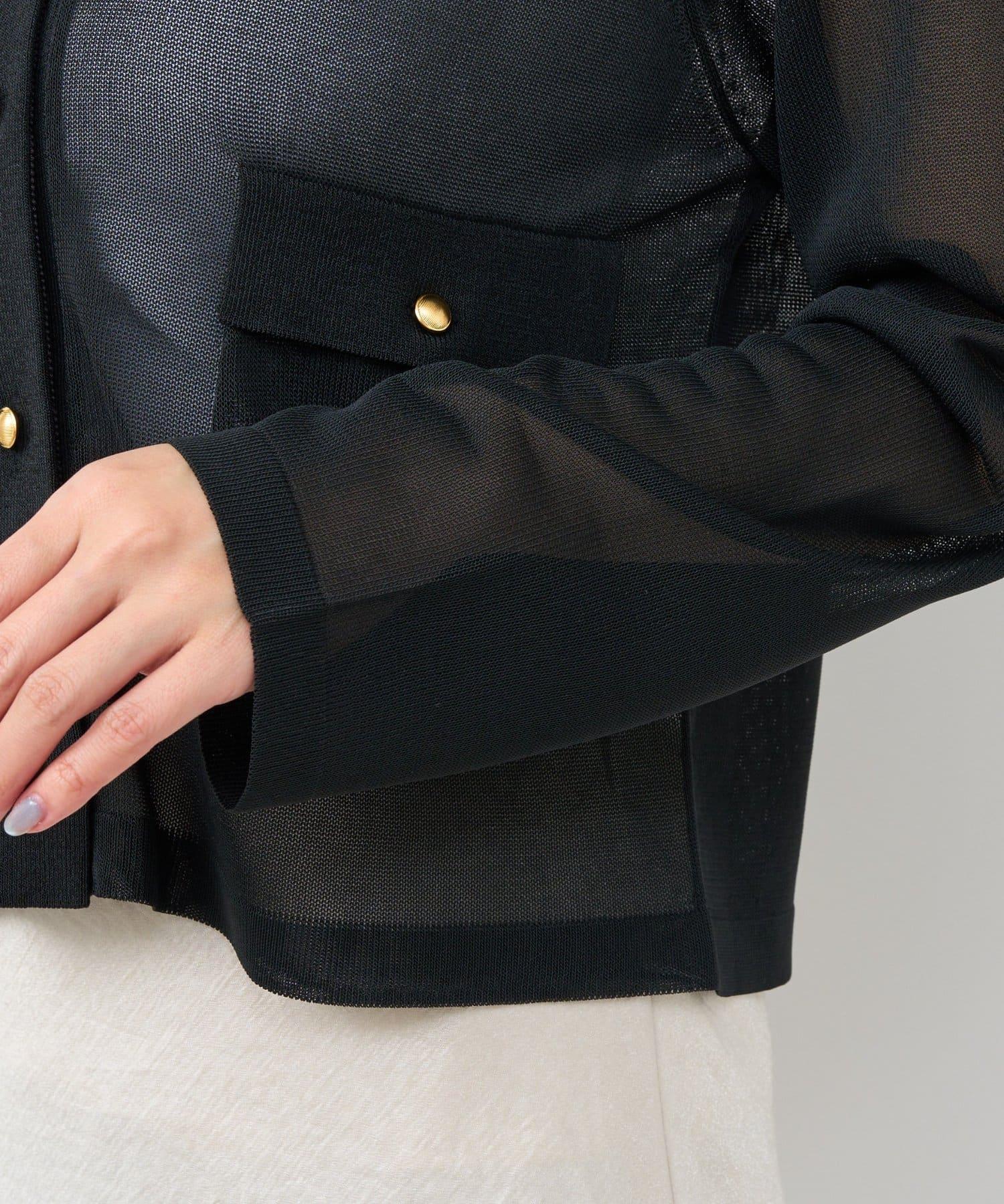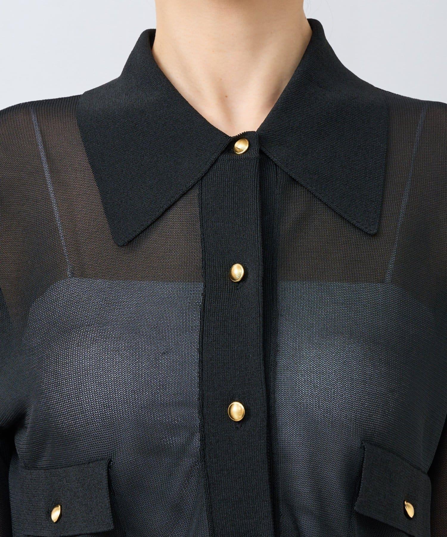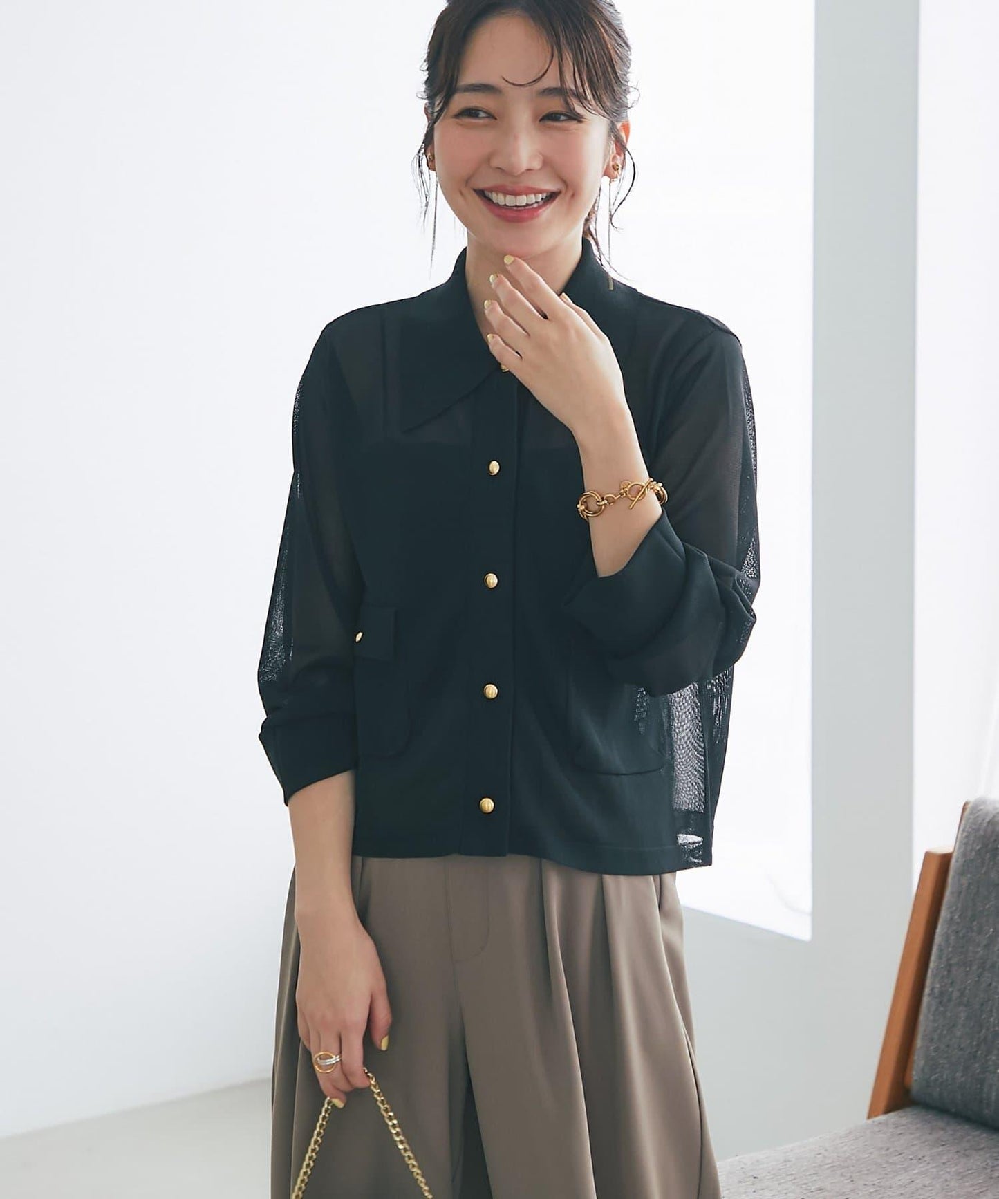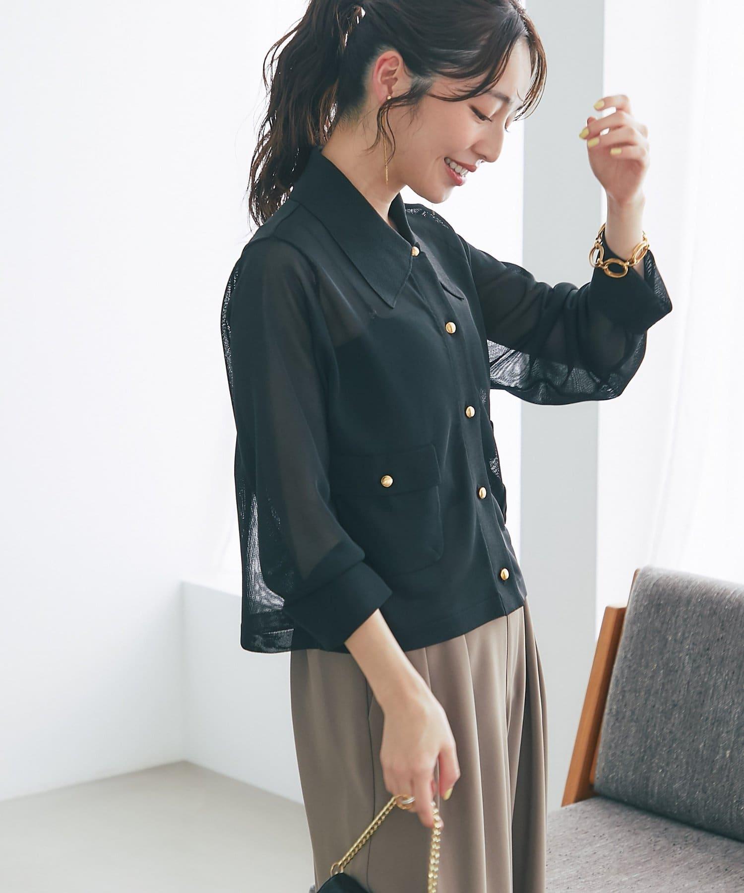 這款襯衫夾克採用透視質感的薄紗面料,給人一種時尚的感覺。