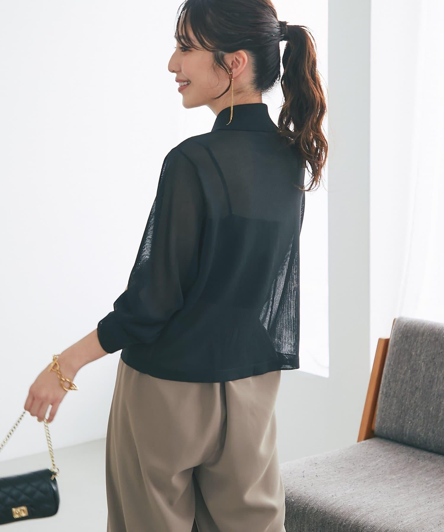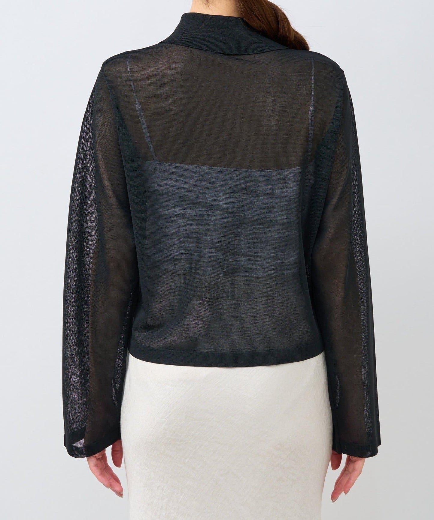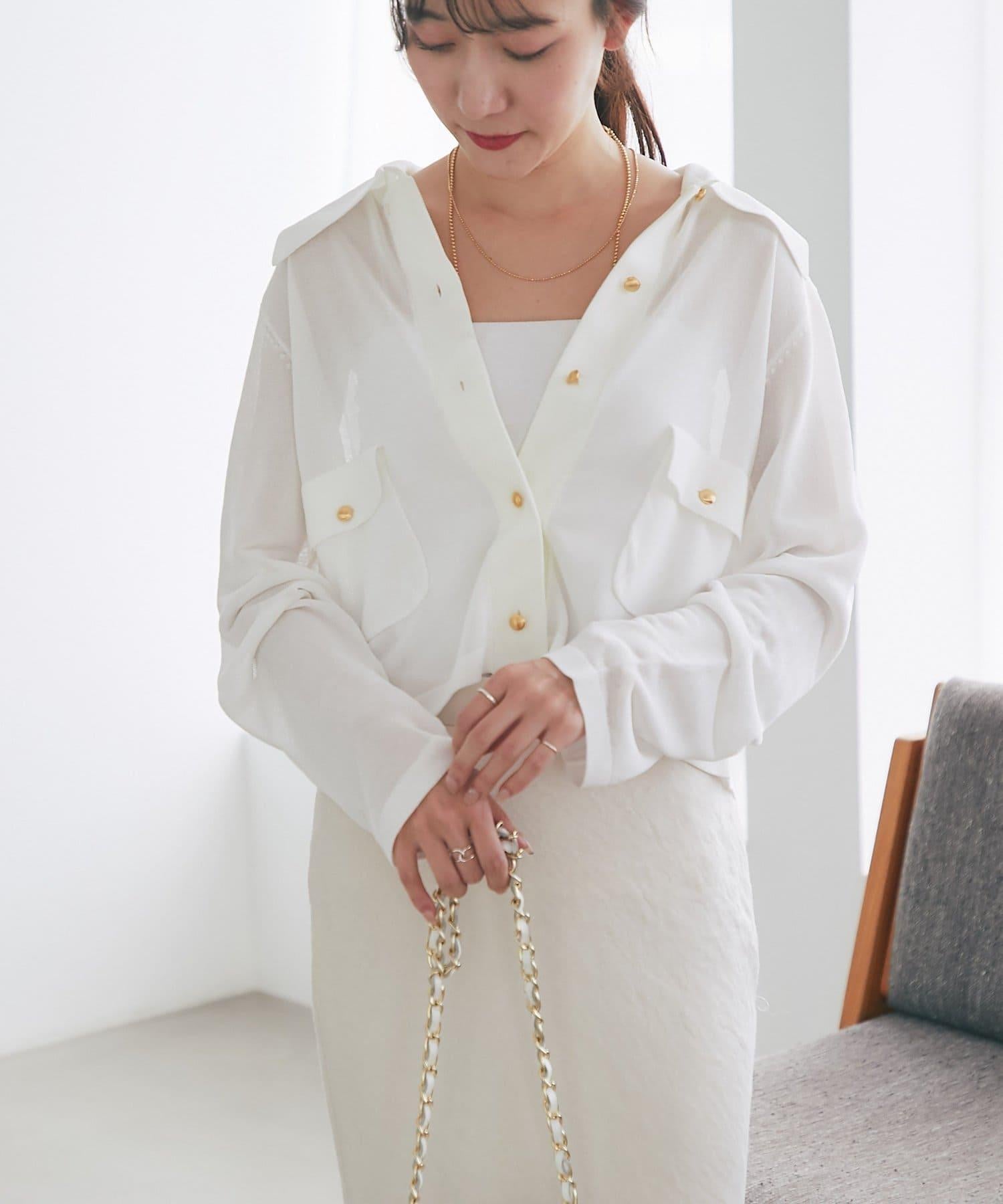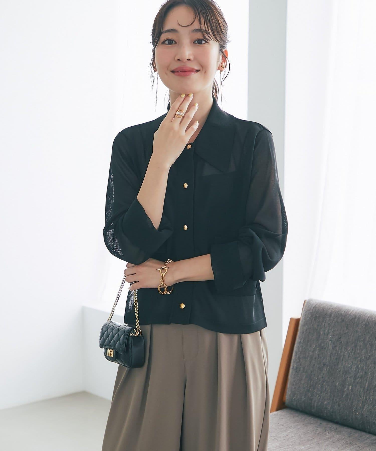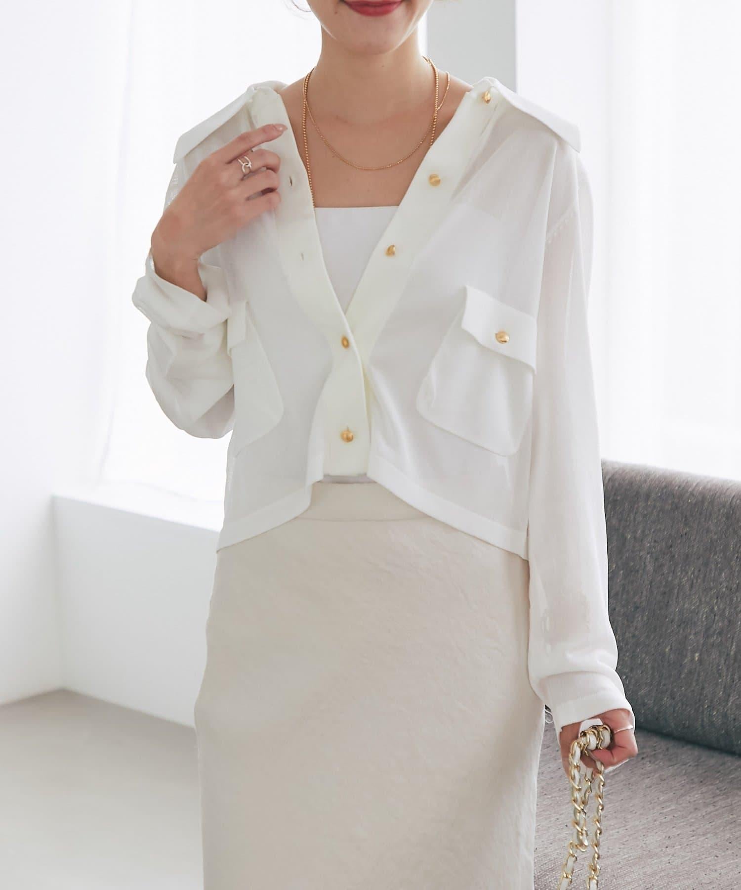 這款襯衫夾克採用透視質感的薄紗面料,給人一種時尚的感覺。
