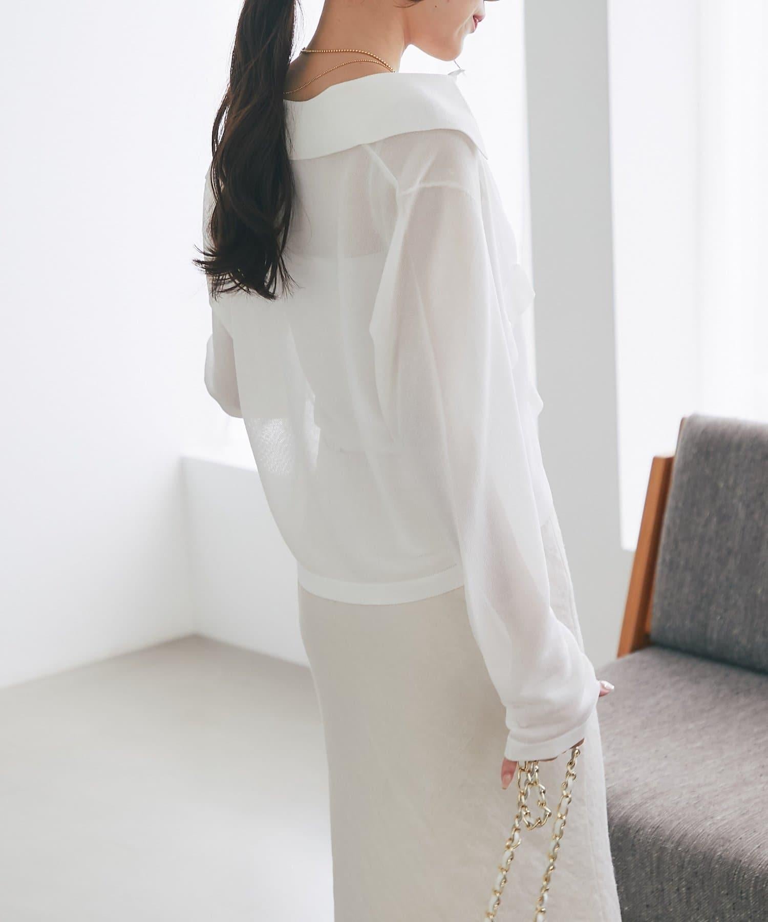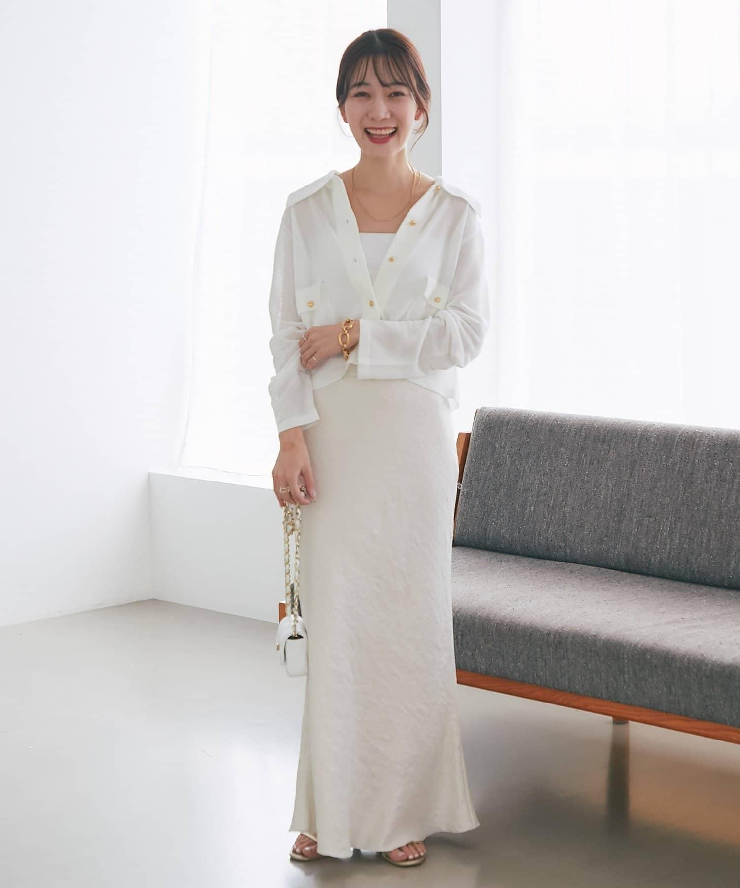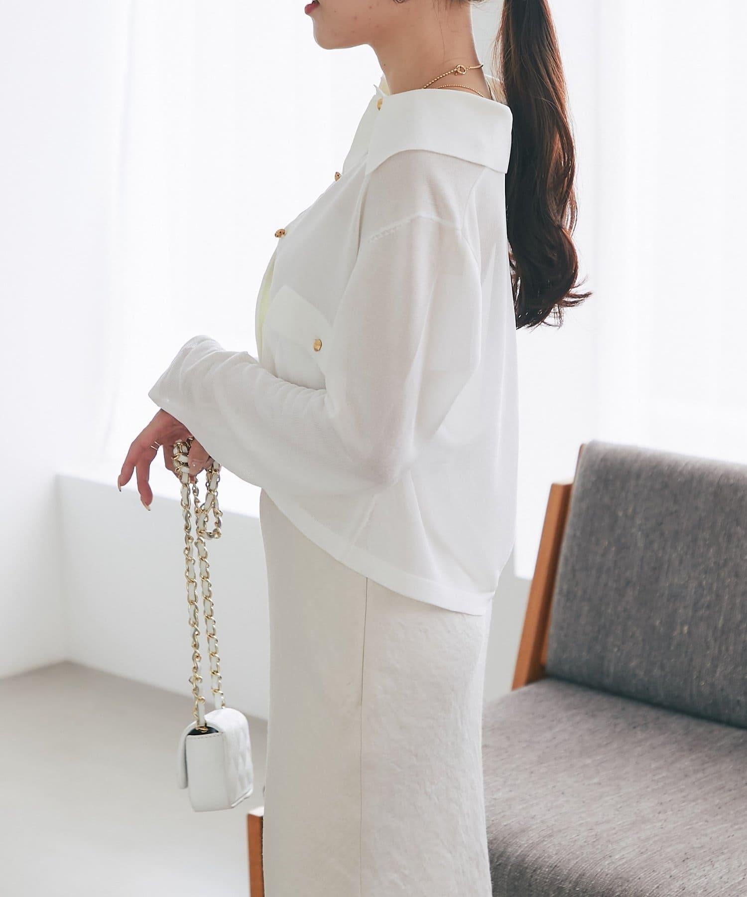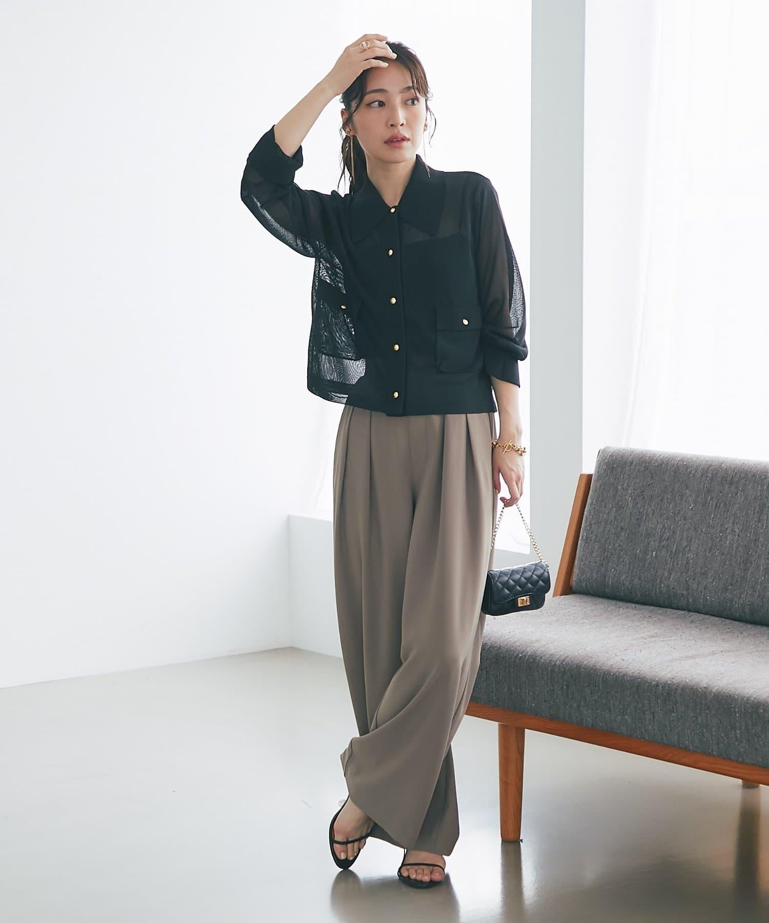 這款襯衫夾克採用透視質感的薄紗面料,給人一種時尚的感覺。