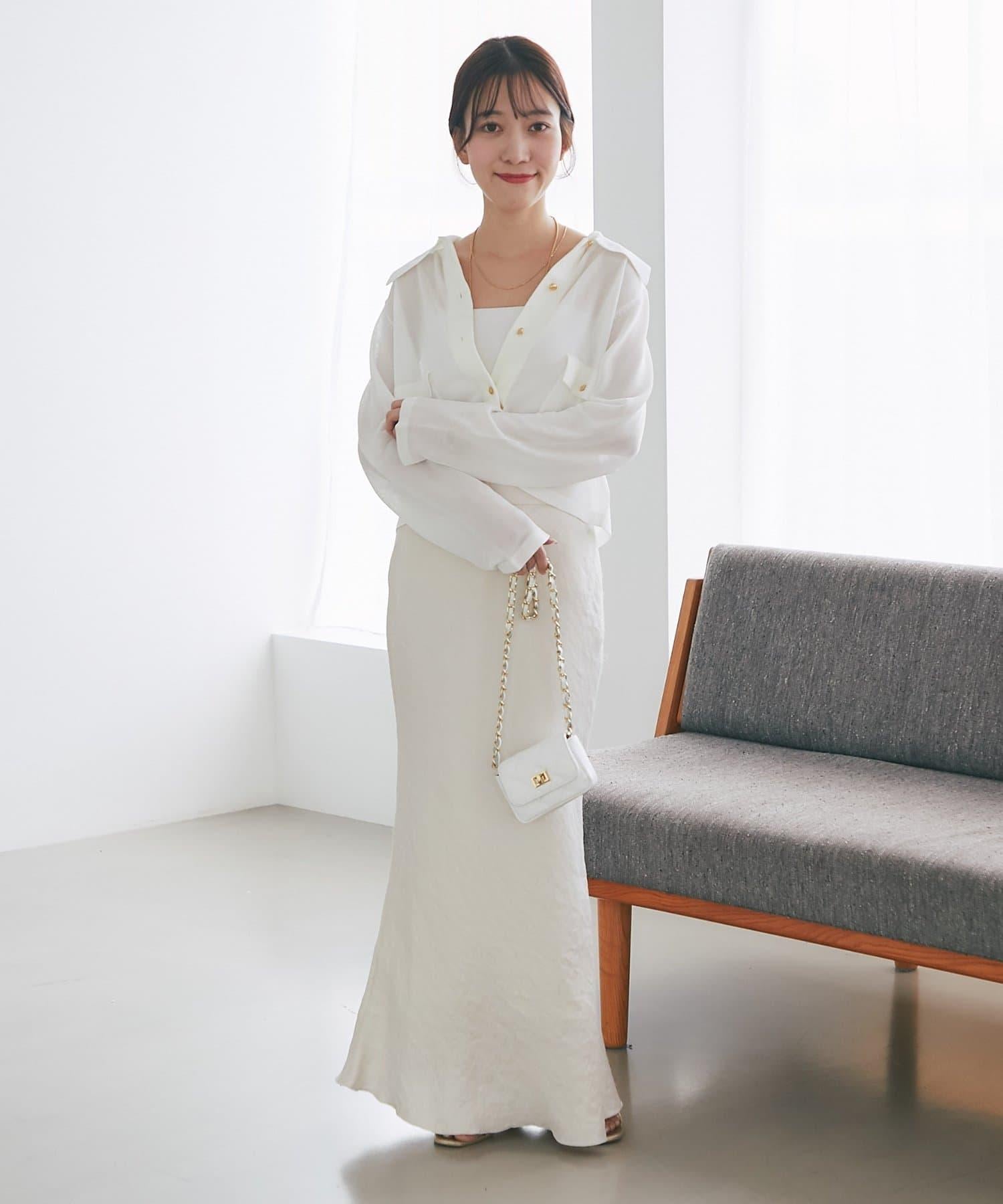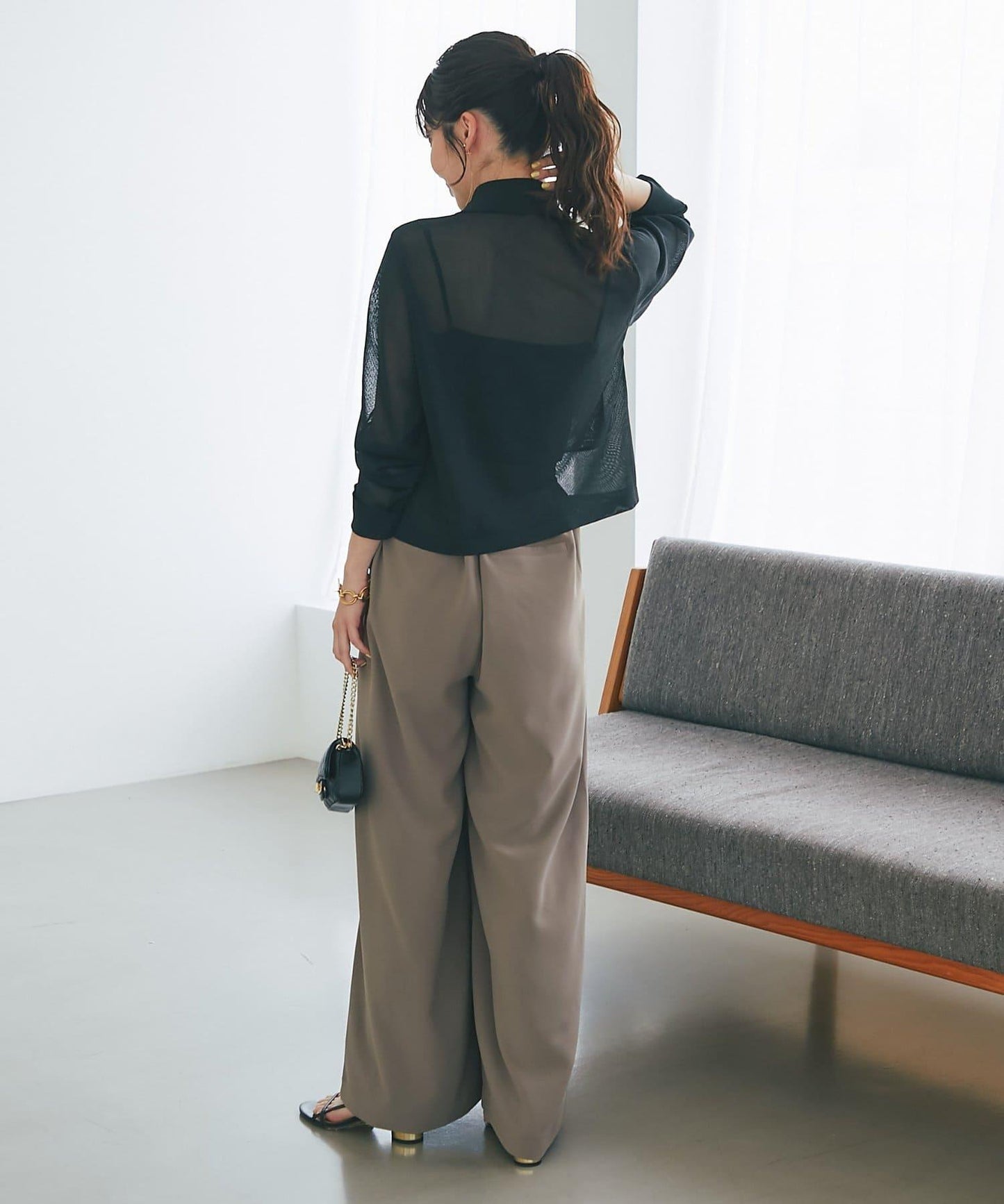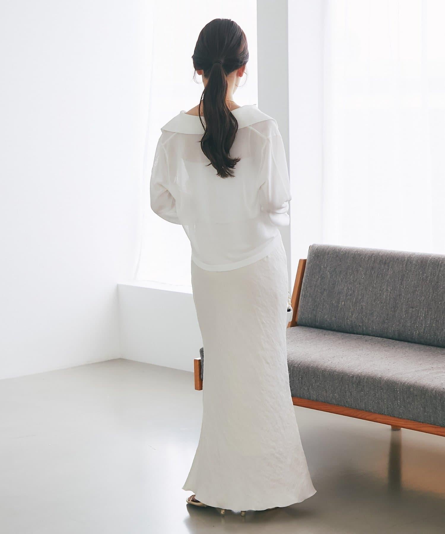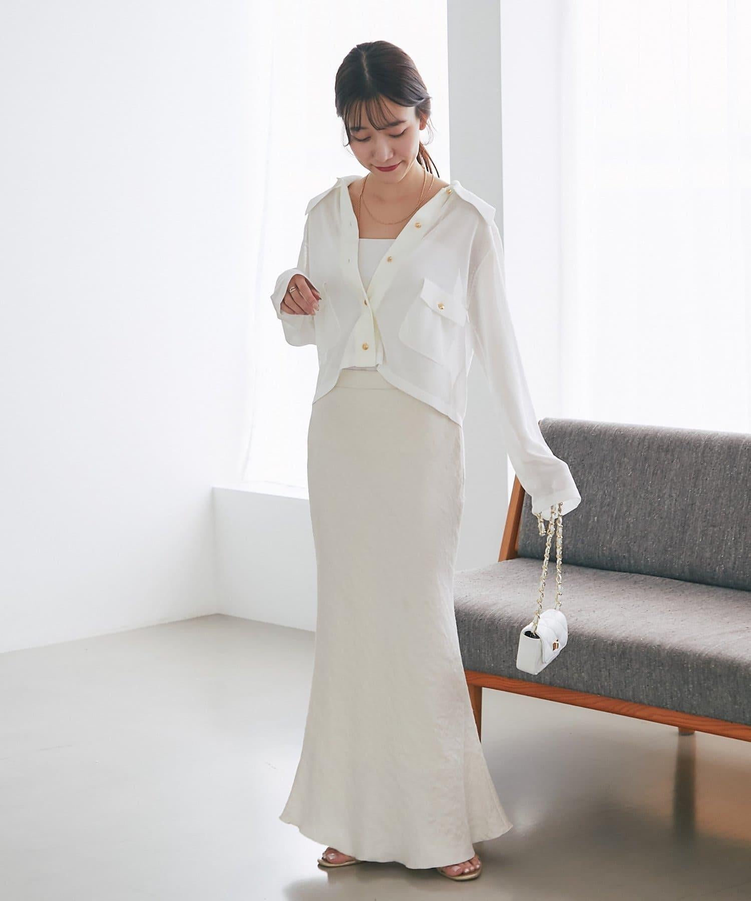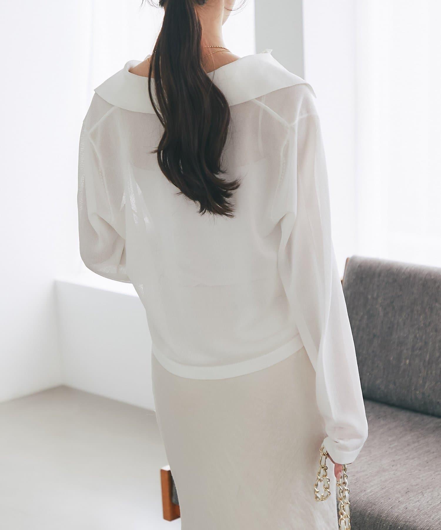這款襯衫夾克採用透視質感的薄紗面料,給人一種時尚的感覺。