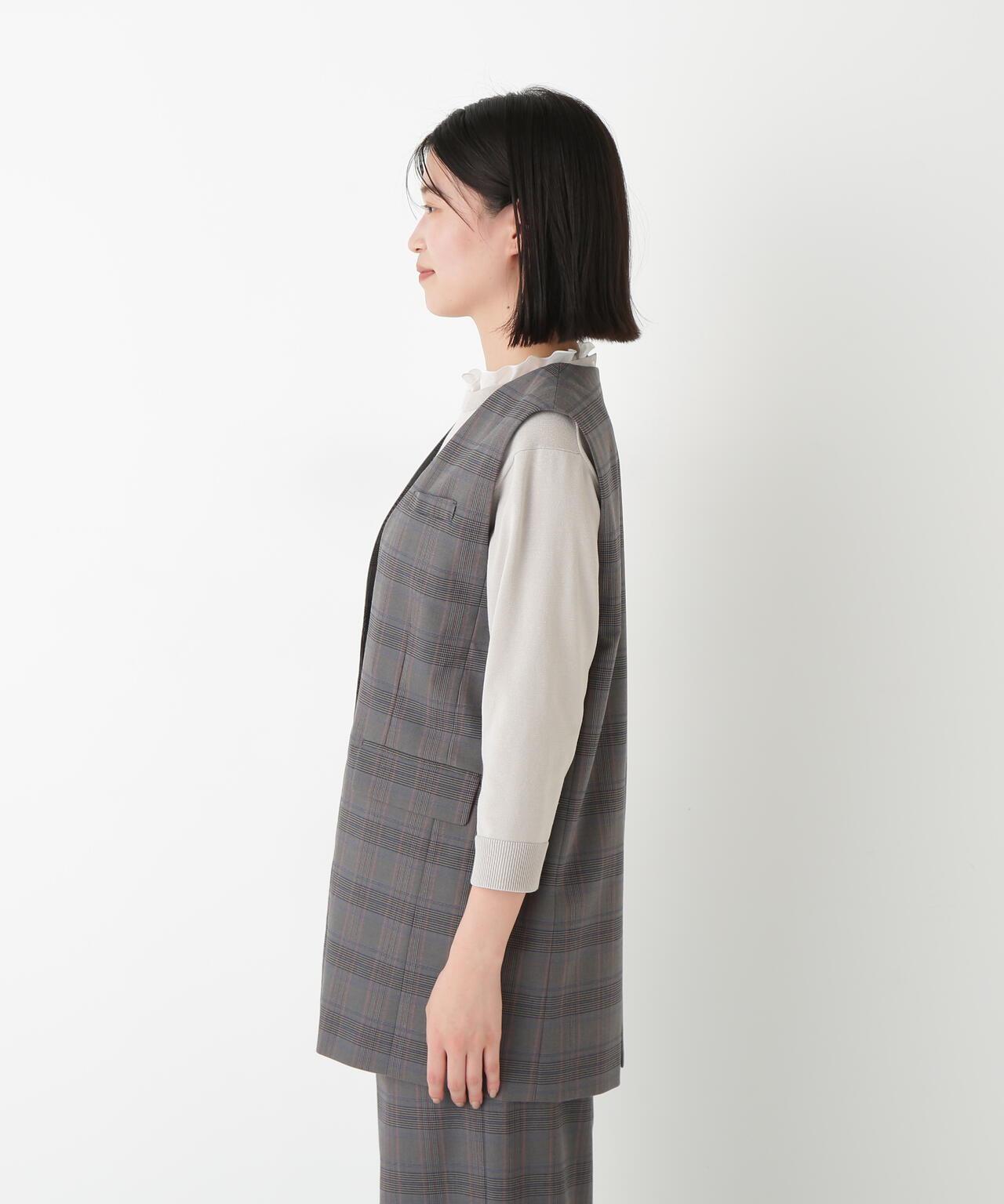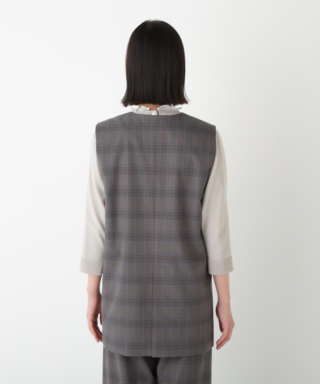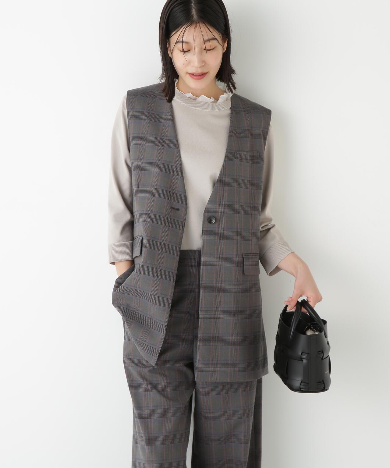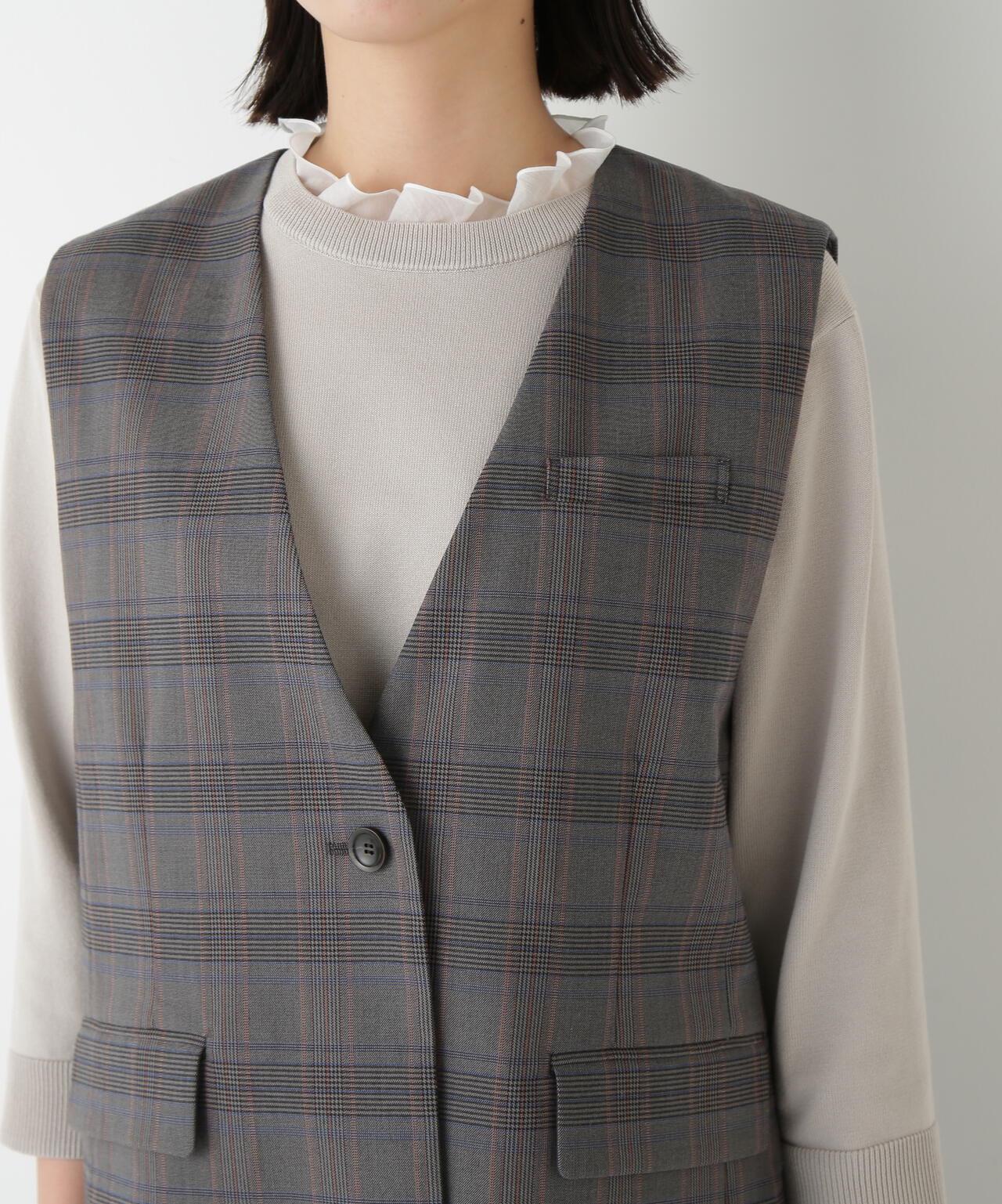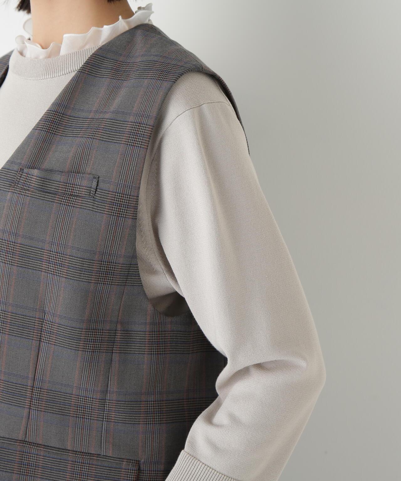 這款無領套頭衫是一款簡潔的背心式 V 領單件套頭衫,可作為優雅的疊穿單品。面料採用優雅的梳理面料,具有高捻度、清爽的手感和柔軟、寬鬆的落差。它還具有適度的伸縮性,穿著感覺良好。有兩種顏色可供選擇:灰色格紋和米色。推薦搭配:在季節交替時,這款單品可讓您享受漂亮的層次感。建議搭配同材質的褲子。