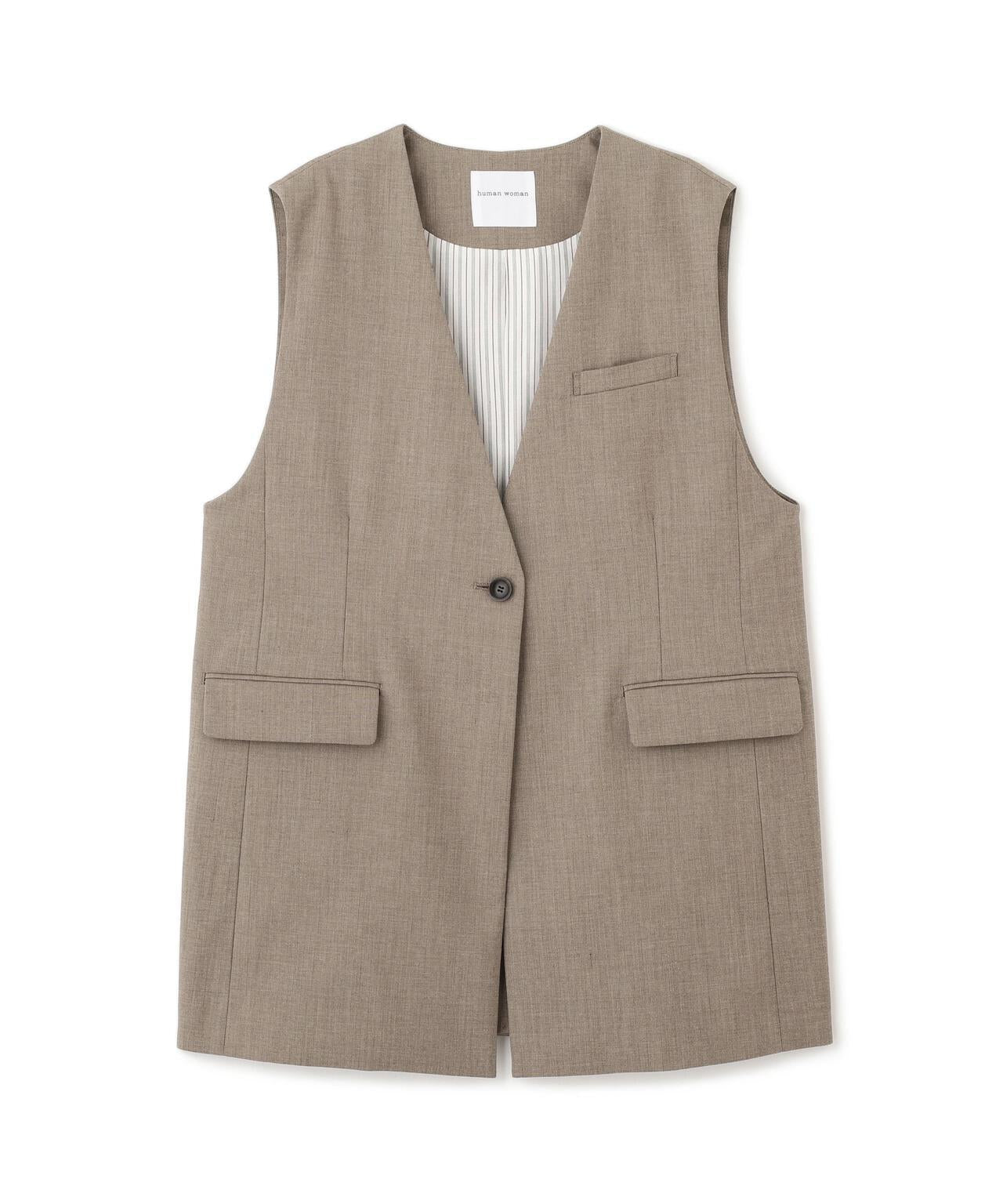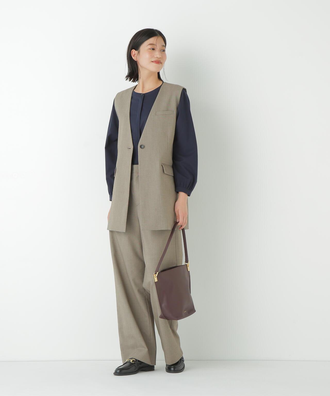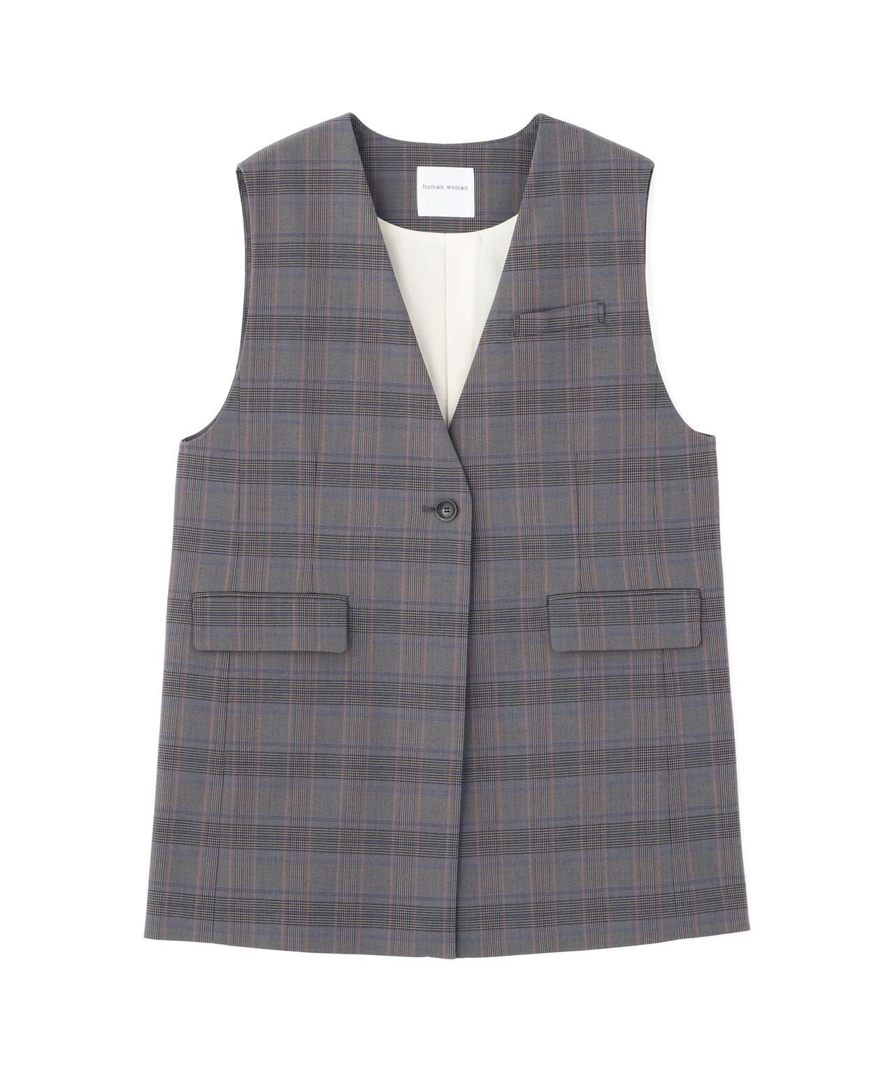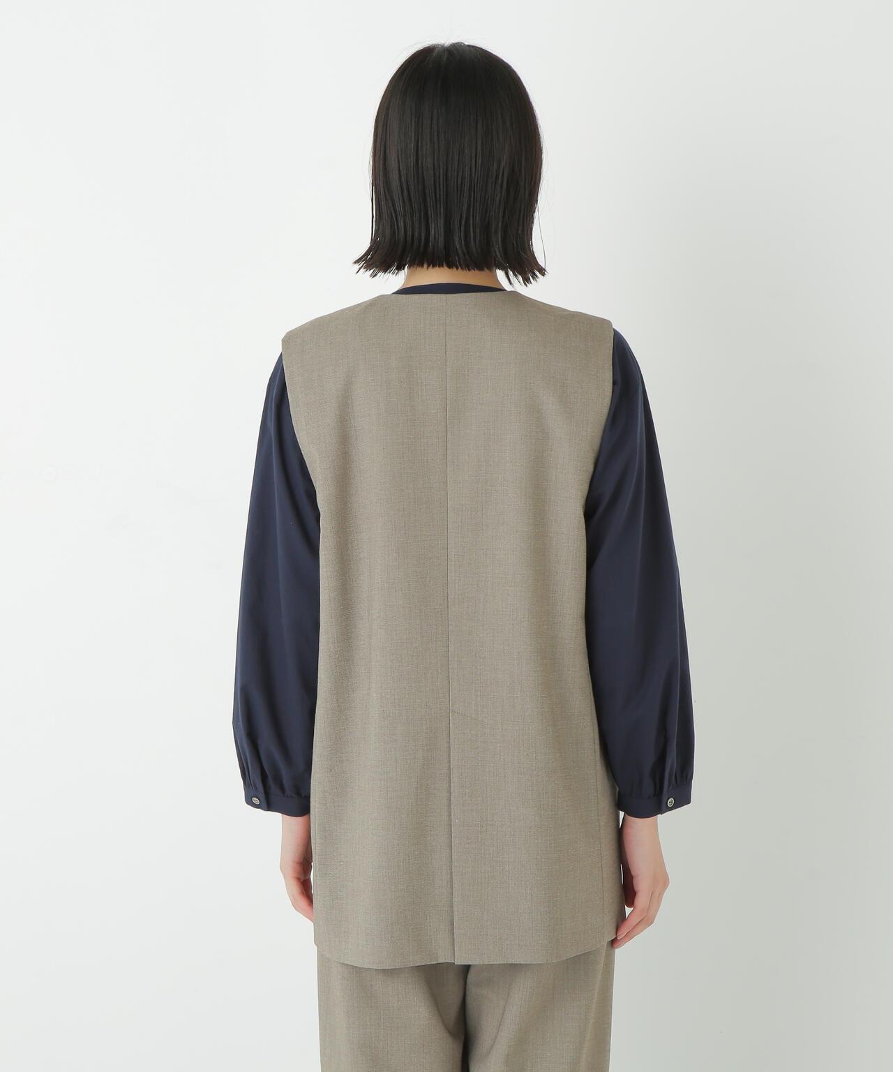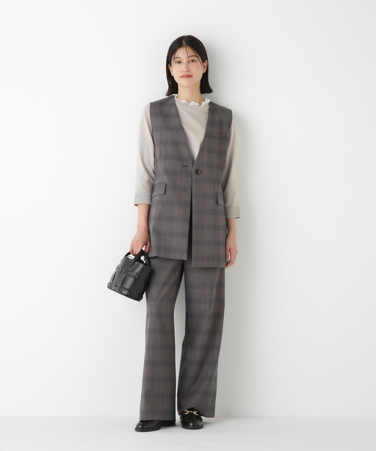 這款無領套頭衫是一款簡潔的背心式 V 領單件套頭衫,可作為優雅的疊穿單品。面料採用優雅的梳理面料,具有高捻度、清爽的手感和柔軟、寬鬆的落差。它還具有適度的伸縮性,穿著感覺良好。有兩種顏色可供選擇:灰色格紋和米色。推薦搭配:在季節交替時,這款單品可讓您享受漂亮的層次感。建議搭配同材質的褲子。