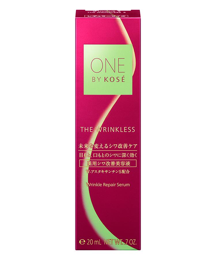 科絲(KOSÉ)No.1*1 皺紋改善項目不斷進化!改變未來的抗皺護理。_x000D_ 新一代*2 抗皺精華誕生。_x000D_ [準藥物] - 皺紋的個體差異會隨著年齡的增長而增加和加速。_x000D_高絲第一抗皺單品煥然一新,功效更強,並具有美白效果。X000D_這款改善皺紋的精華液是根據多年來對易生皺紋肌膚的研究而開發的,它將改變現在和未來。_x000D_緊緻美麗肌膚,讓肌膚緊緻有彈性。25 年來,KOSÉ 一直致力於皺紋問題的研究,終於達到了新的階段。_x000D_自高絲開始研究皺紋產生的機理以來,已經走過了 25 個年頭。_x000D_我們觀察並測量了同一人數年來的皺紋變化,並利用最新的 KOSÉ 科學進行分析,最終研製出全新的抗皺精華液。含有改善皺紋和美白活性成分 <Wrinkle White N>。_x000D_ 通過接近肌膚的上下兩層:從深層支撐肌膚的真皮層和賦予肌膚表面緊緻感的表皮層,改善皺紋。_x000D_ 該產品能深入持久地作用於眼周、嘴角、額頭和眉間等需要護理的部位,有效解決各種皺紋問題。此外,它還能抑制黑色素生成,預防斑點和雀斑。_x000D__x000D_ ● 含有高絲獨創的有效成分。_x000D_ 保溼,令肌膚緊緻。_x000D__x000D_ ● 軟化和保持彈力的配方。該配方能像蒸汽熨斗蒸過一樣,軟化並向需要護理的部位散發水分,帶來強大而持久的緊緻效果。只需使用一次,即可保持肌膚緊緻。含有改善光澤的成分。_x000D_提亮並淡化容易顯得凹陷和暗沉的皺紋。 _x000D__x000D_ - 易於每天早晚使用。_x000D_塗抹順滑,與肌膚形成一層光滑的薄膜。_x000D_早上化妝前使用非常簡單,因為它很容易融合,而且不油膩。_x000D__x000D_ ● 舒適的綠色花香。_x000D_● 無色。橙色是蝦青素的天然顏色。_x000D_ ● 經過過敏測試。 並非所有人都會過敏。_x000D__x000D_*1 按累計銷售量計算 _x000D_*2 品牌內 _x000D__x000D_[成分] _x000D_[抗皺美白活性成分] Wrinkle White N _x000D_[保溼成分] W-Astaxanthin S_x000D_(高濃度*3) _x000D_...蝦青素、印楝葉提取物、殼姜葉提取物、濃縮甘油)_x000D_*3 與傳統產品相比_x000D_[保溼成分] 低分子膠原蛋白、發酵透明質酸、低分子彈性蛋白、乙酰羥脯氨酸、馬鬱蘭提取物、濃縮甘油_x000D_[光澤改善成分] 大米大米胚芽油和角鯊烷_x000D_[加速滲透成分*4]*4 對角質層的滲透_x000D__x000D_* Wrinkle White N 是煙酰胺,蝦青素是蝦青素 H,低分子膠原蛋白是水解膠原蛋白粉,發酵透明質酸是酵母培養上清液,低分子彈力素是 Brielastin,乙酰羥脯氨酸是 N-乙酰-L-羥脯氨酸,馬鬱蘭提取物是 Mayolana 提取物,滲透增強成分是油酸乙酯和 2-辛基十二醇。 _x000D__x000D_ [商品名稱:ONE BY KOSÉ The Linkless S]_x000D__x000D_ ▽大號可在此購買_x000D_◆The Linkless S <30g>:8,140日元(含稅)使用方法 取適量於指尖,均勻塗抹於需要護理的部位。