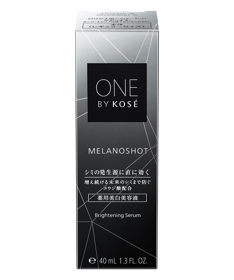 針對色斑核心的曲酸美白 _x000D_防止今後色斑繼續增加_x000D_[準藥物]_x000D__x000D_ <活性美白成分>曲酸 _x000D_*色斑的核心是黑色素細胞 _x000D_*抑制黑色素生成,防止色斑和雀斑。直接作用於色斑的核心 _x000D_一款美白精華,甚至能防止今後色斑繼續增加(抑制黑色素生成,防止色斑和雀斑)。_x000D__x000D__x000D__利用世界首創技術對斑點進行廣泛分析後揭示的事實。_x000D_在皮膚深處,色斑正在一個接一個地增加。__x000D_迅速滲透,直接作用於色斑源頭。_x000D_ 為您的肌膚帶來永恆不變的透明感。_x000D__x000D_○輕鬆怡人的綠色花香 _x000D__x000D__[注意事項]_x000D_◇請按照說明使用。避免大量頻繁使用。_x000D_◇泵口或瓶蓋上的血清遇光或空氣可能會略微變黑,但不會造成質量問題。_x000D_◇ 使用後,請將泵口擦拭乾淨,並正確蓋上蓋子。_x000D_◇ 請勿在高溫或陽光下存放。_x000D__x000D__x000D__<美白活性成分>曲酸_x000D_*皮膚色斑的核心是黑色素細胞_x000D_*它能抑制黑色素生成,預防色斑和雀斑。_x000D_*可滲透至角質層_x000D_*世界上首次用熒光觀察人體皮膚中的黑色素。_x000D__x000D_▽容器兼容性_x000D_Melanoshot W 的普通型和大型容器兼容。_x000D_普通尺寸和大尺寸可以互換使用。_x000D_兩種規格的 "瓶蓋、泵和軟管長度 "相同。使用說明取適量於掌心,塗抹於皮膚上。