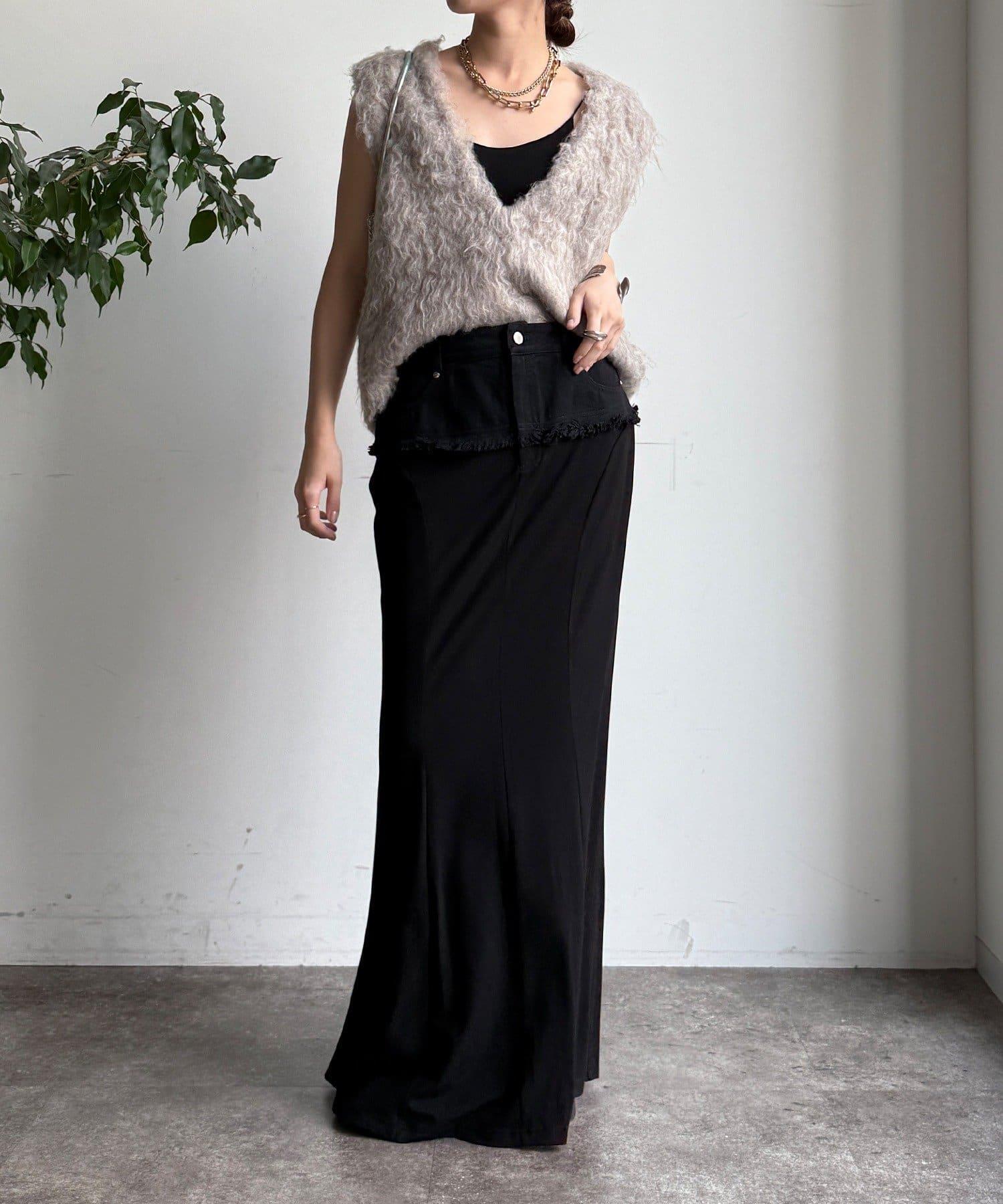 這款美麗的人魚裙在腰部加入了牛仔布料,方便日常穿著。