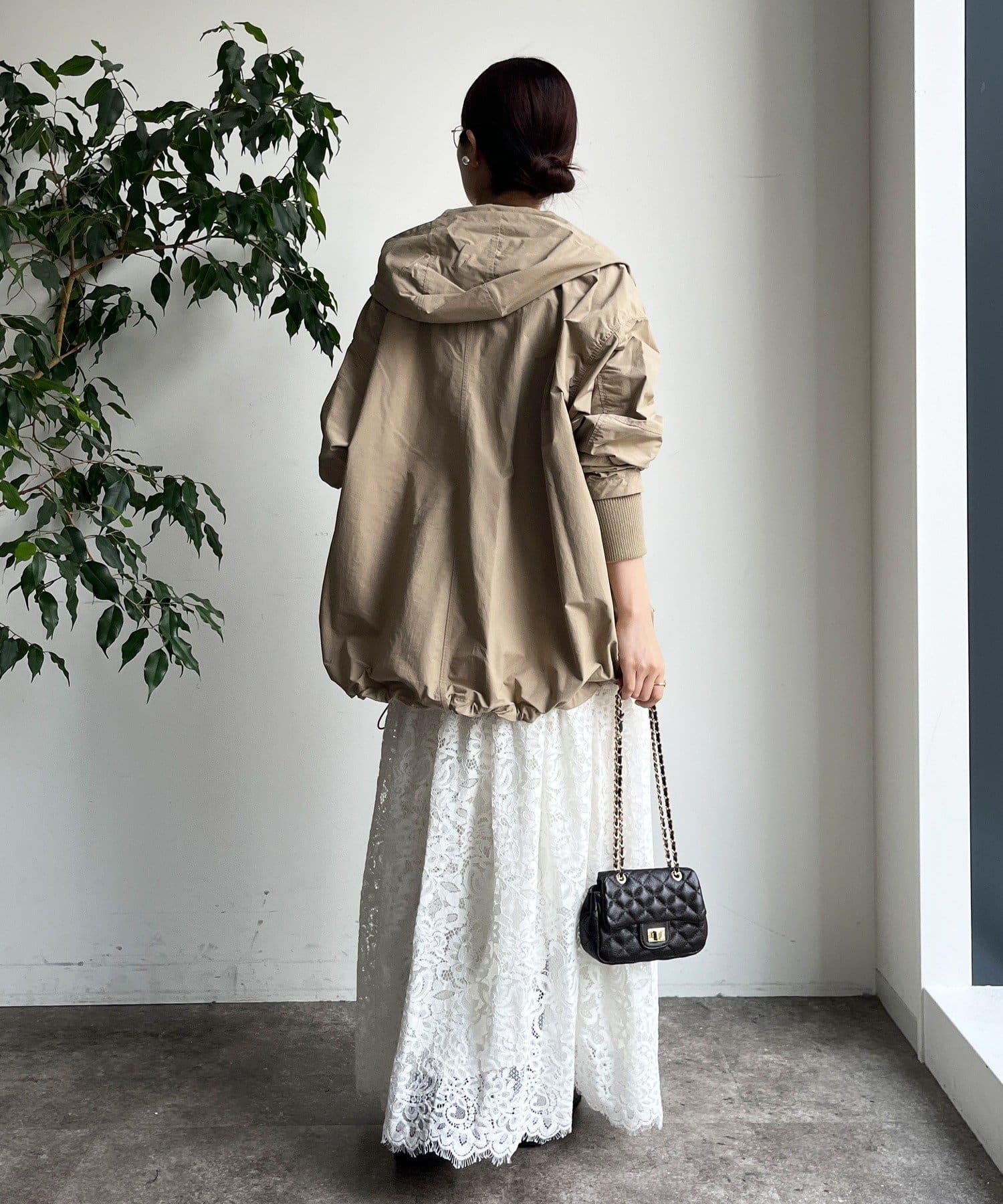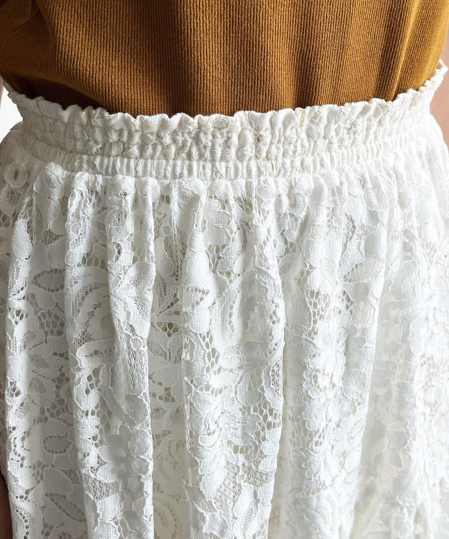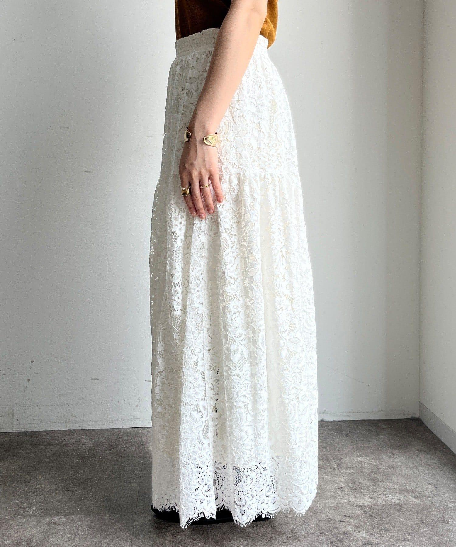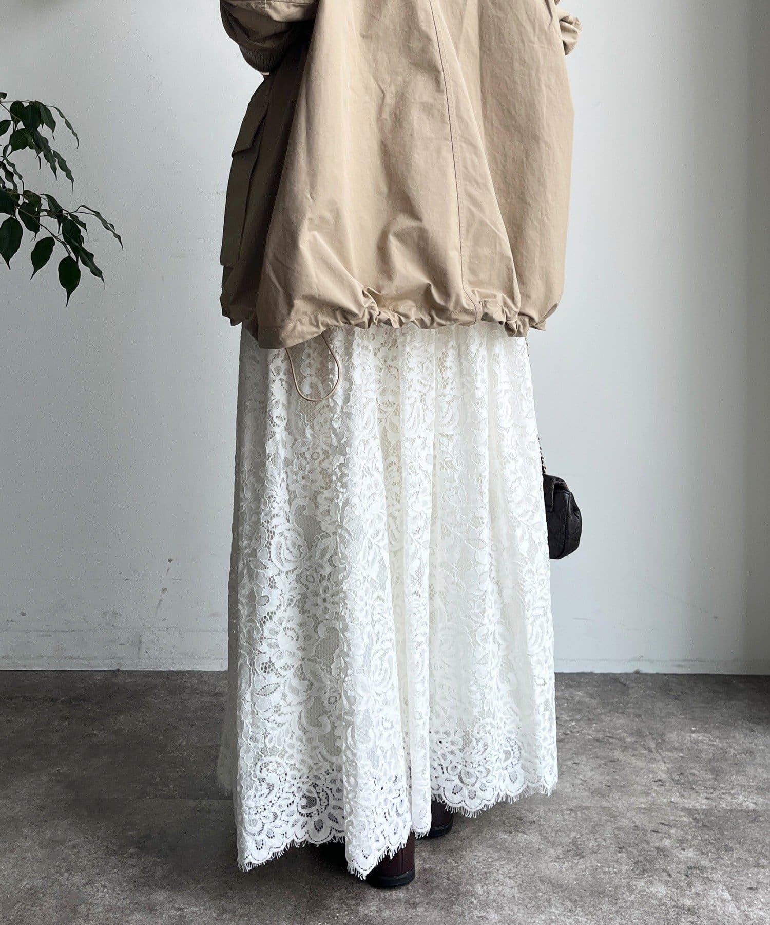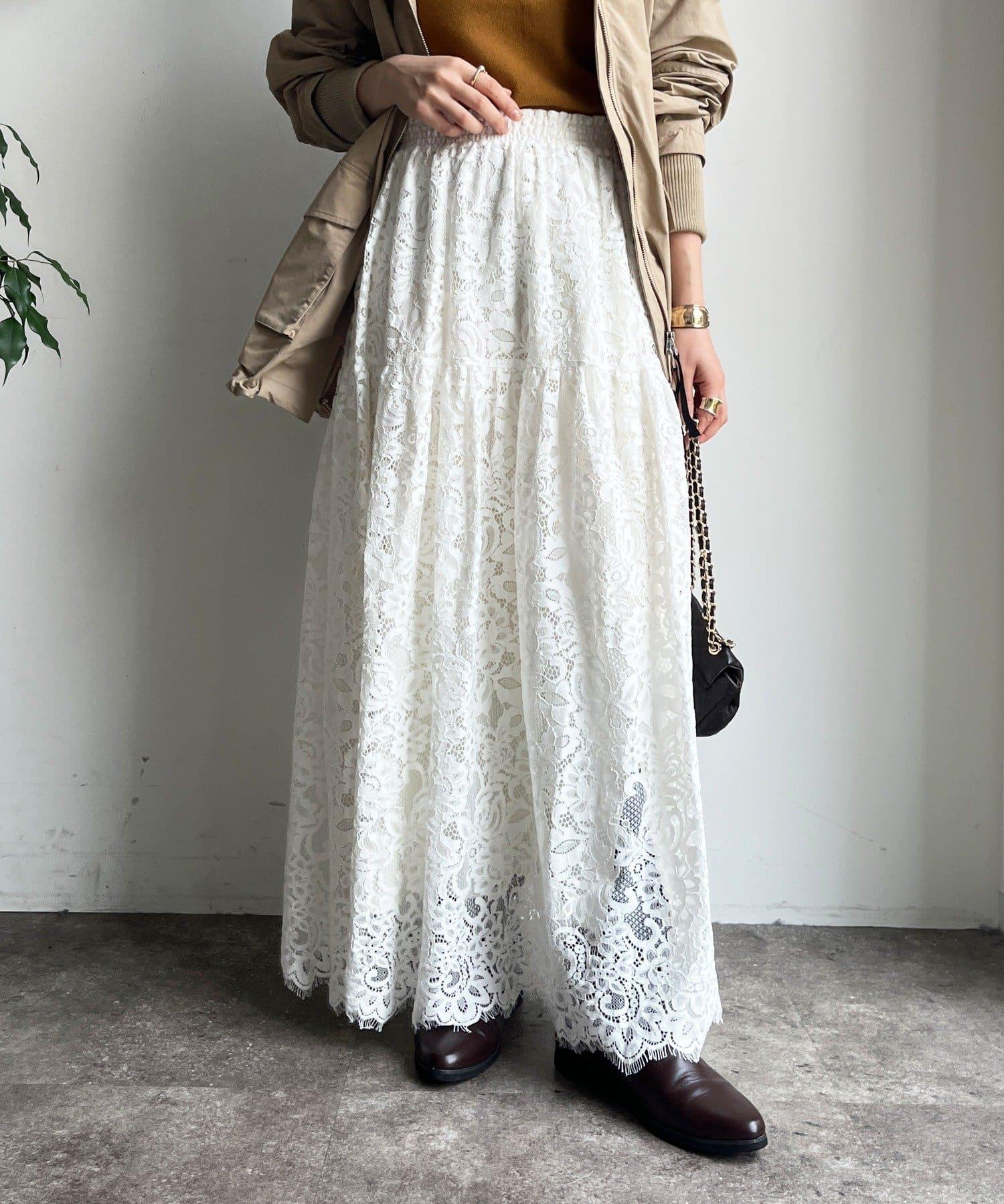 大量蕾絲面料製成的喇叭裙。