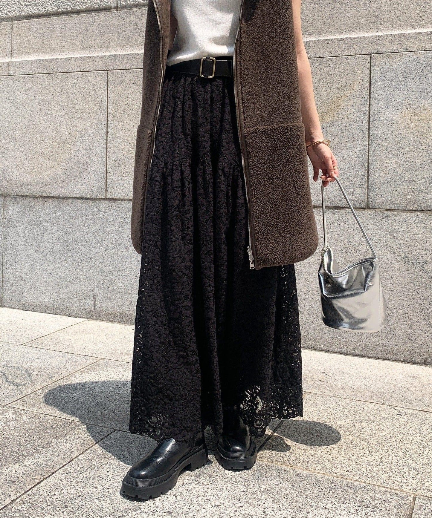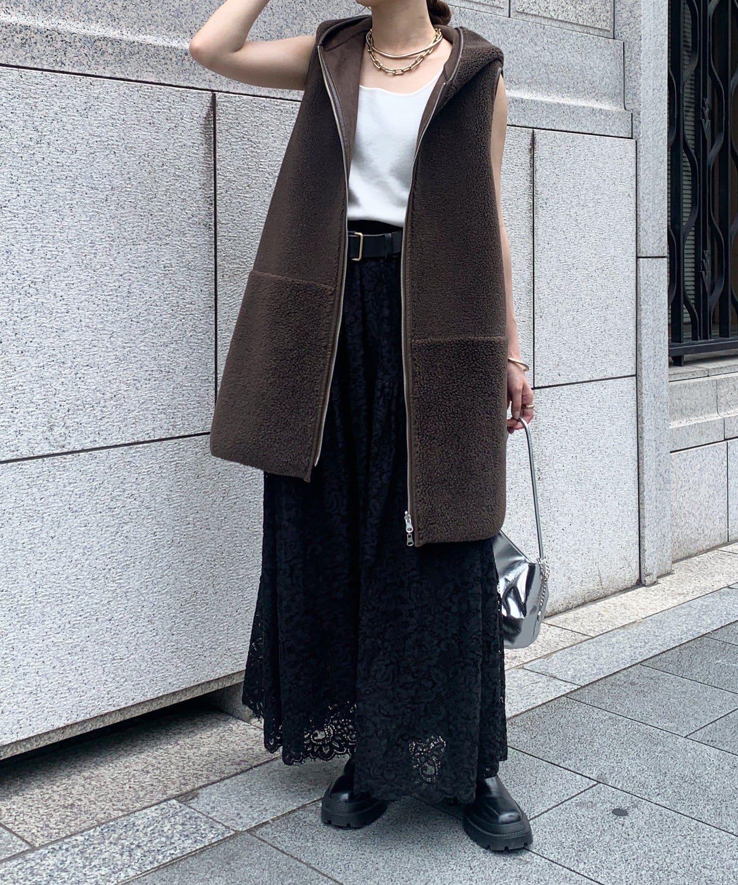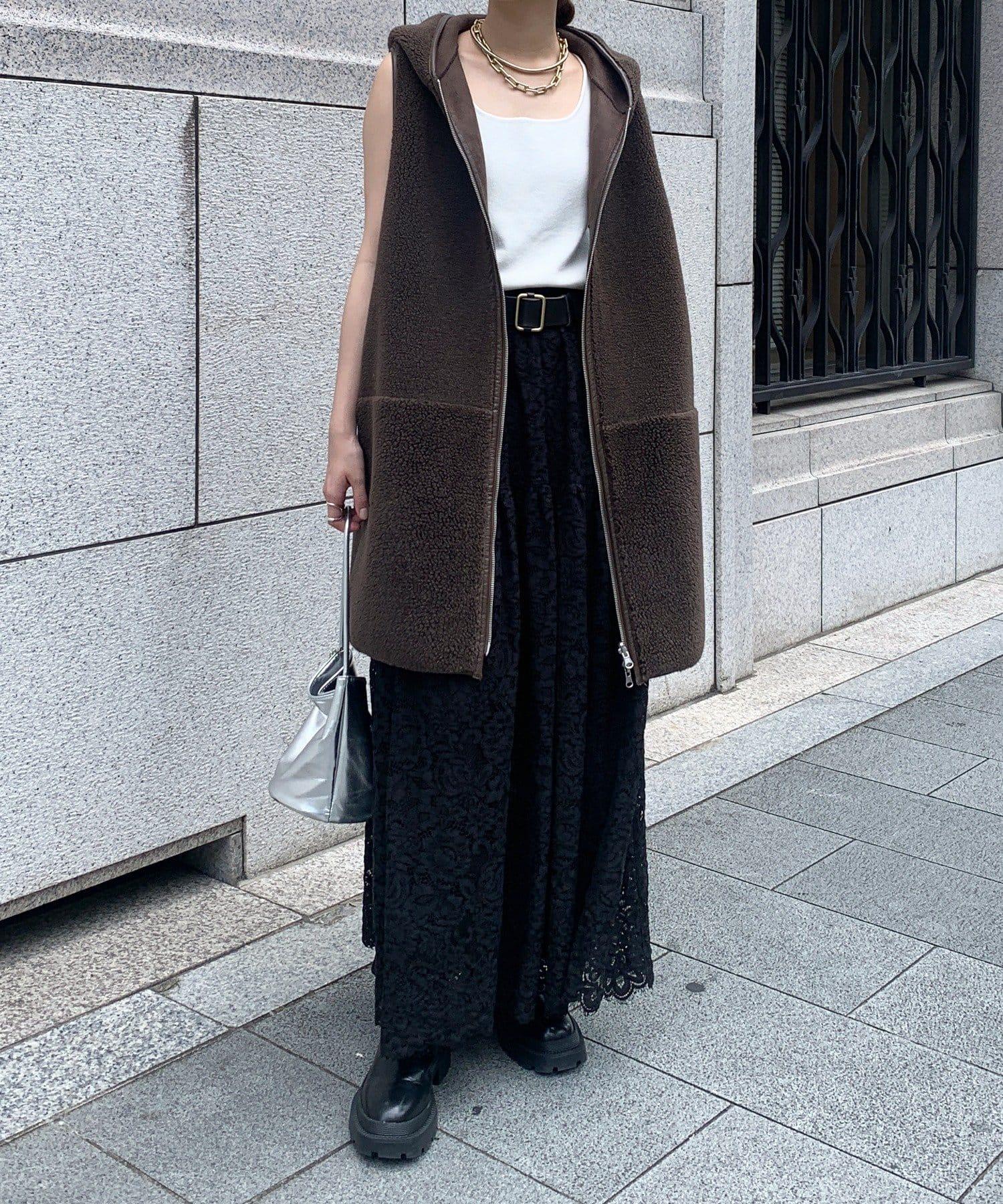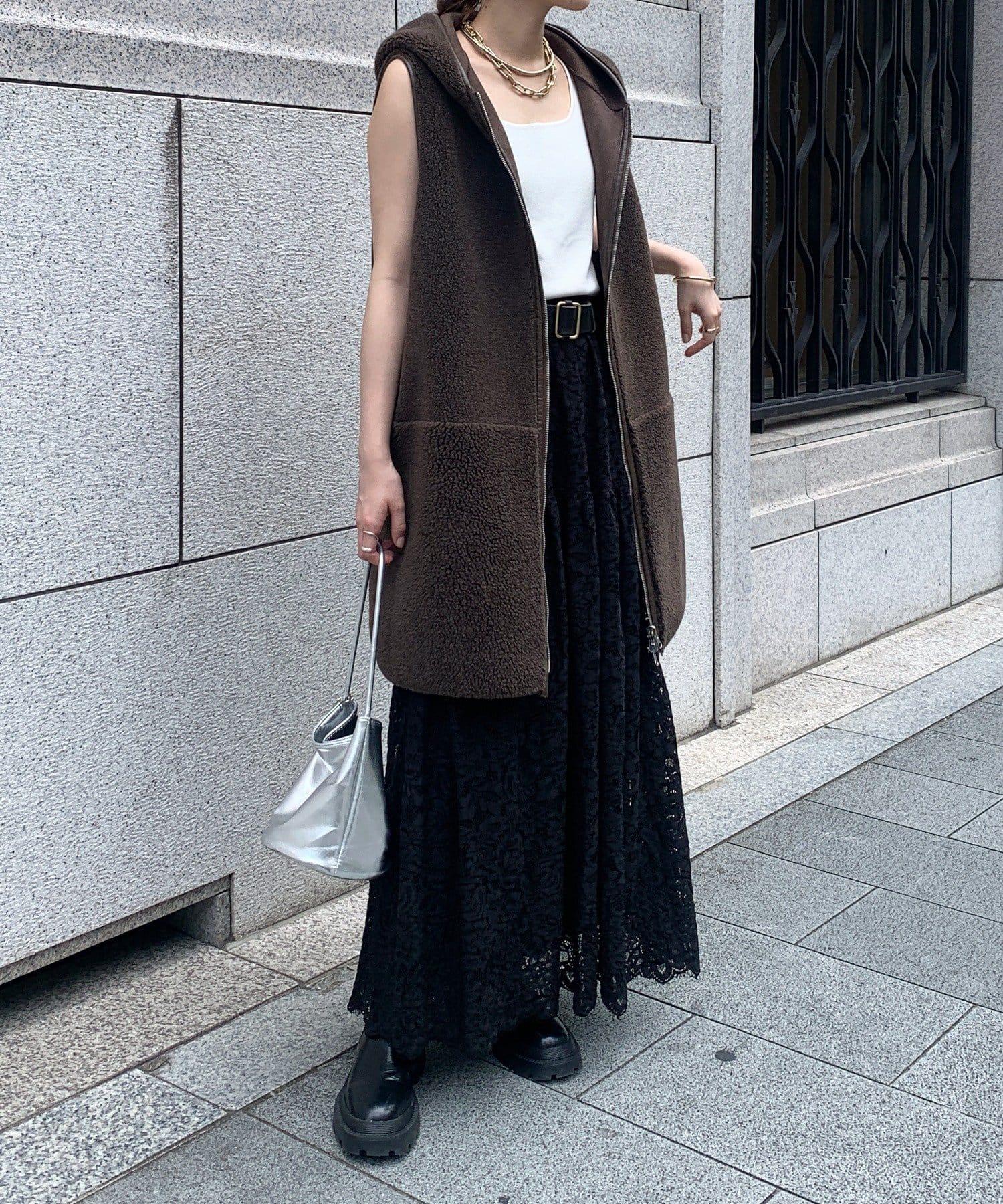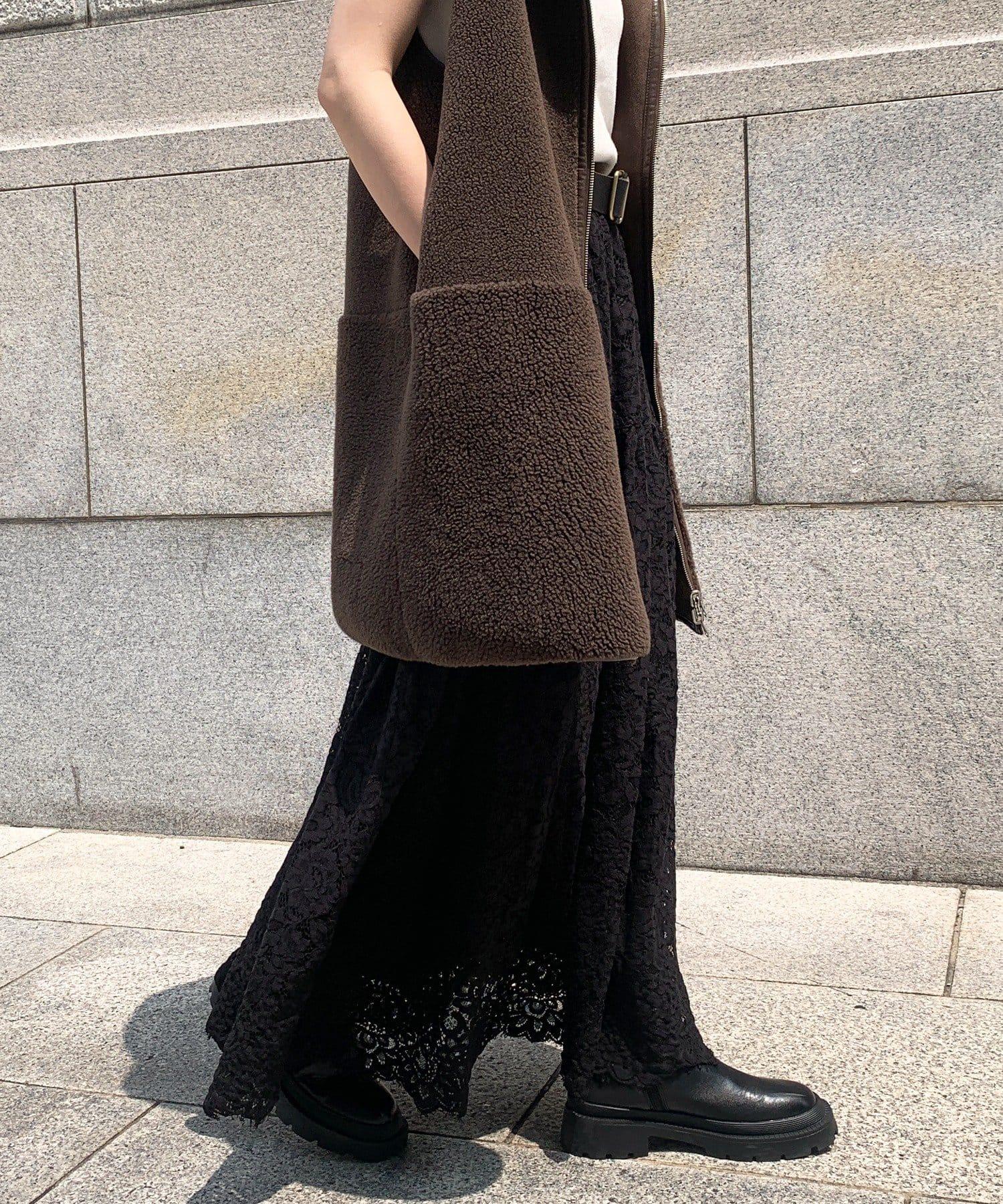 大量蕾絲面料製成的喇叭裙。