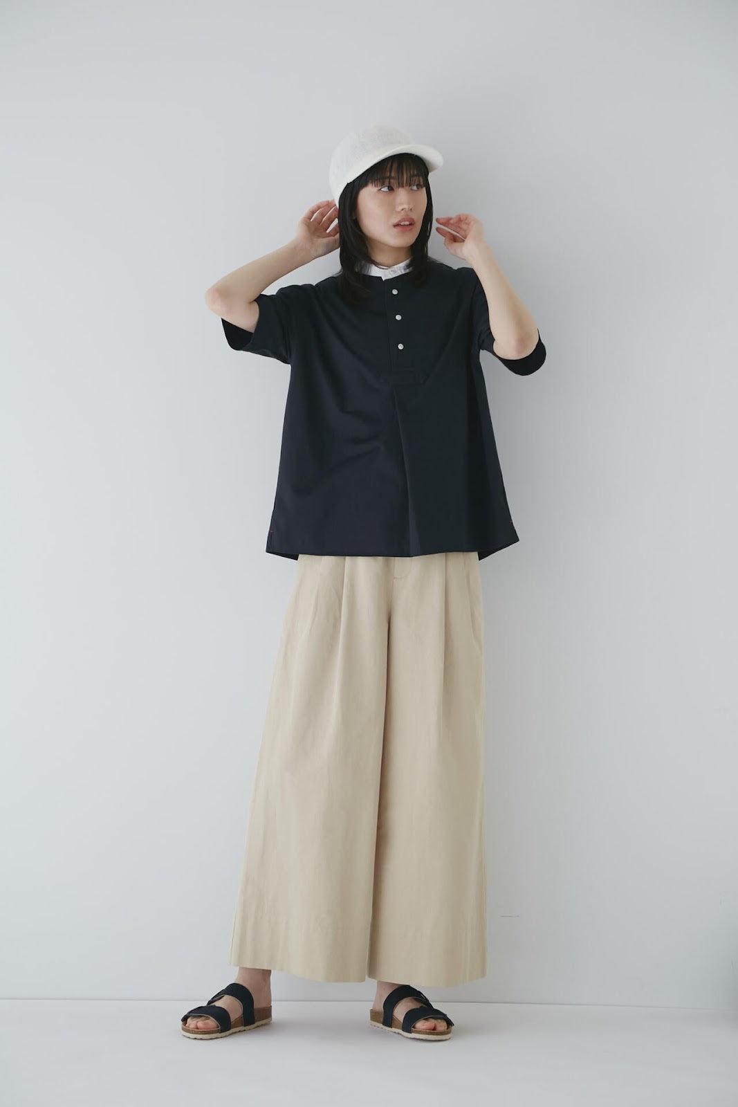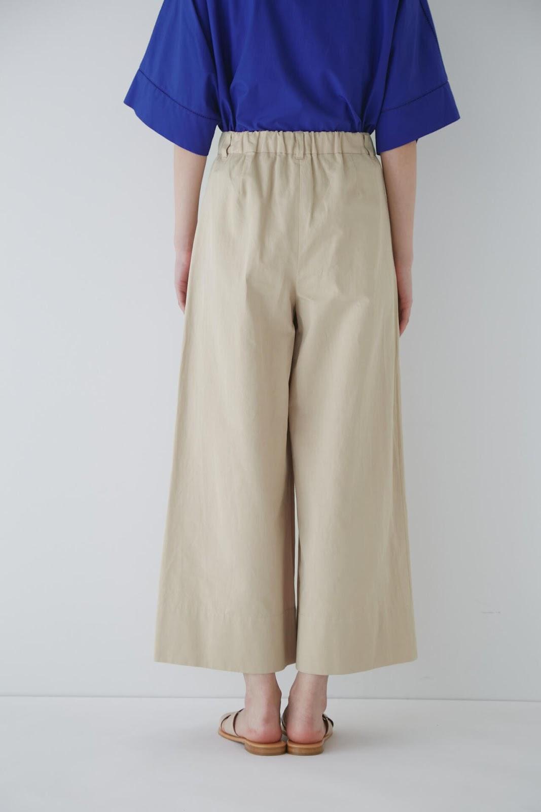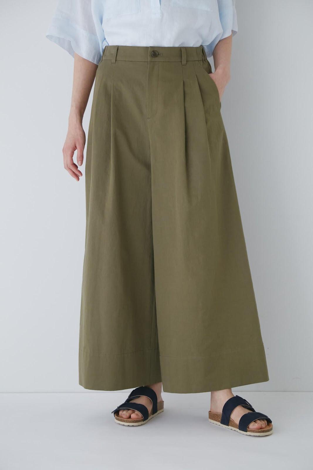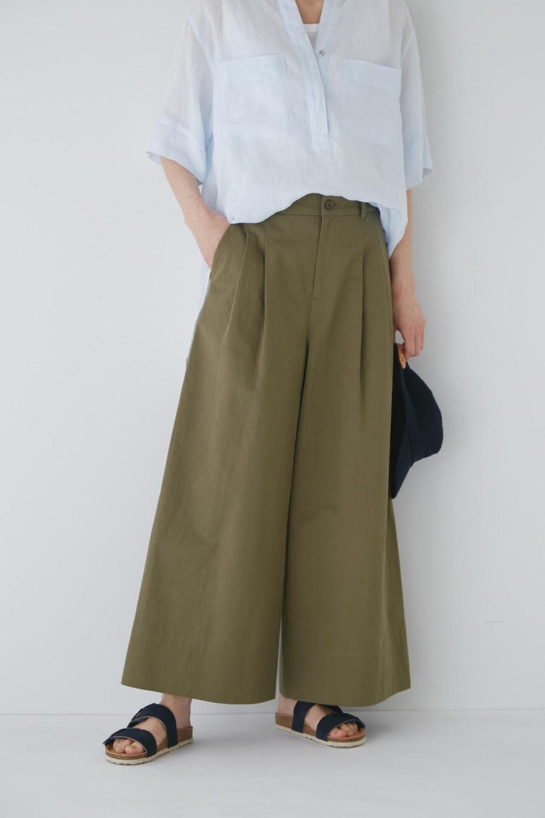 體積寬大的長褲,是夏季休閒風格的完美選擇 [設計要點] 寬大的長褲,具有大體積感,同時營造出輕鬆的感覺,深色兩襉細節和背部鬆緊帶規格使臀部遠離皮膚,腰部可通過腰帶背面的抽繩帶收緊,營造出利落的感覺。腰帶背面還有抽繩帶,可收緊腰部,使腰部看起來更加豐滿。面料採用輕薄的棉麻斜紋面料,帶有細微的橫向絨毛,給人一種夏日輕盈的感覺。面料採用雙圓頂處理,給人一種細緻入微的感覺。這款長褲的廓形豐滿,有很強的存在感,因此我們建議搭配剪裁得體的上衣或內搭上衣,這也是今年的典型風格。