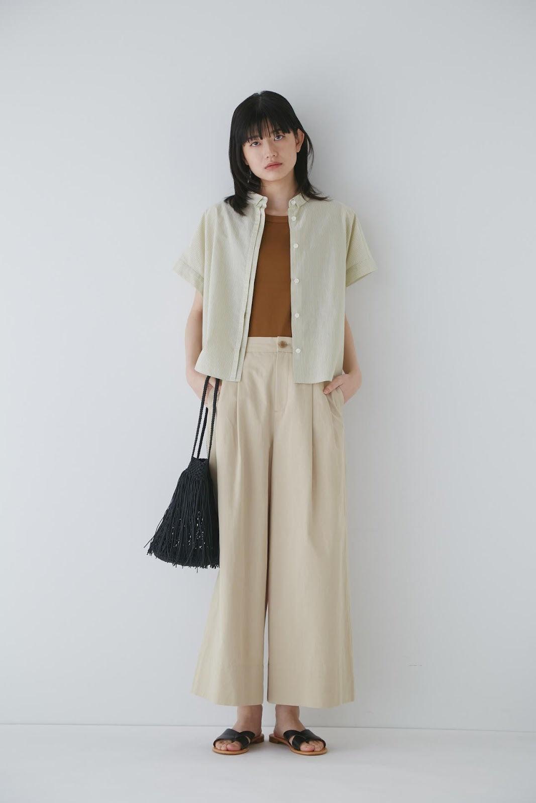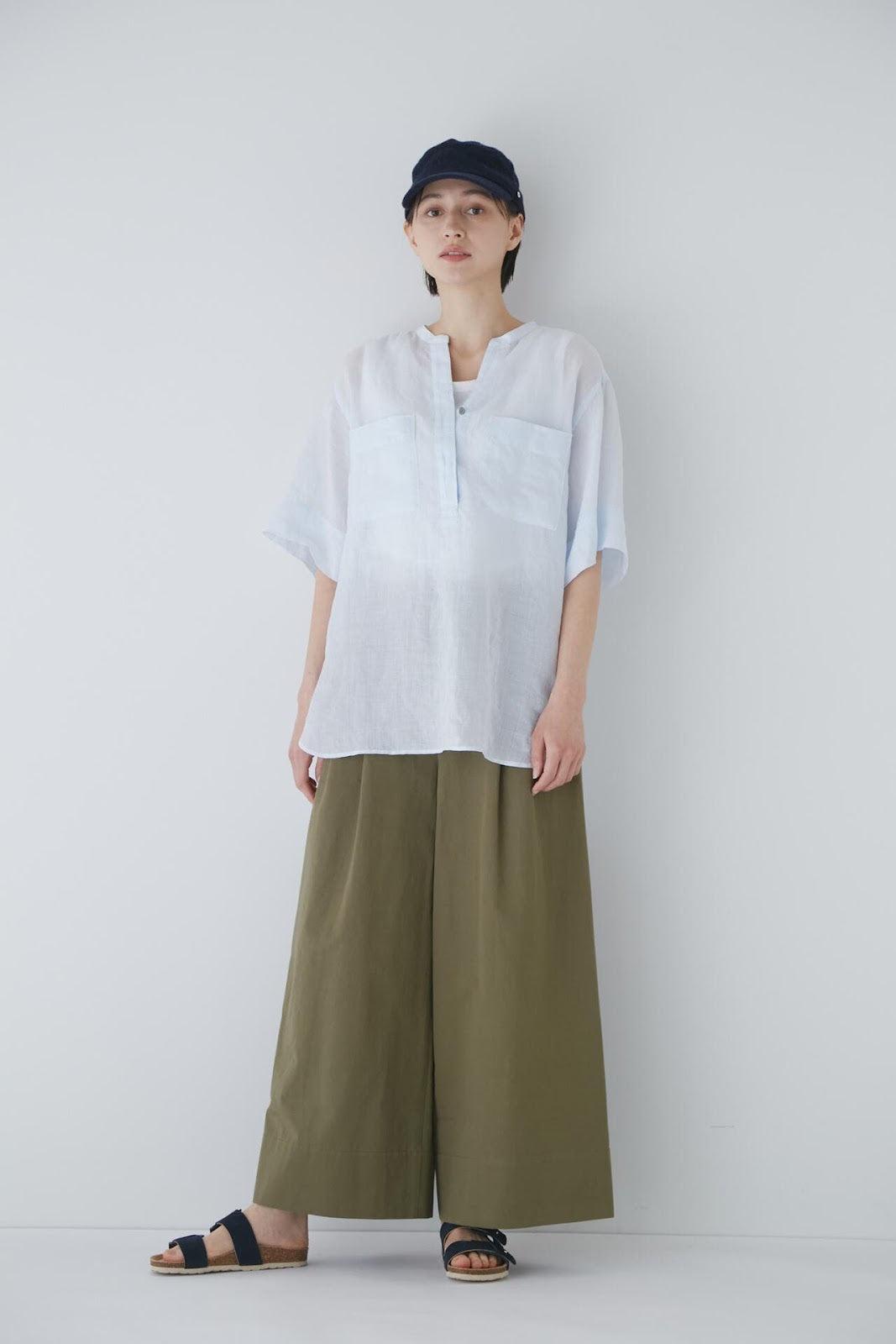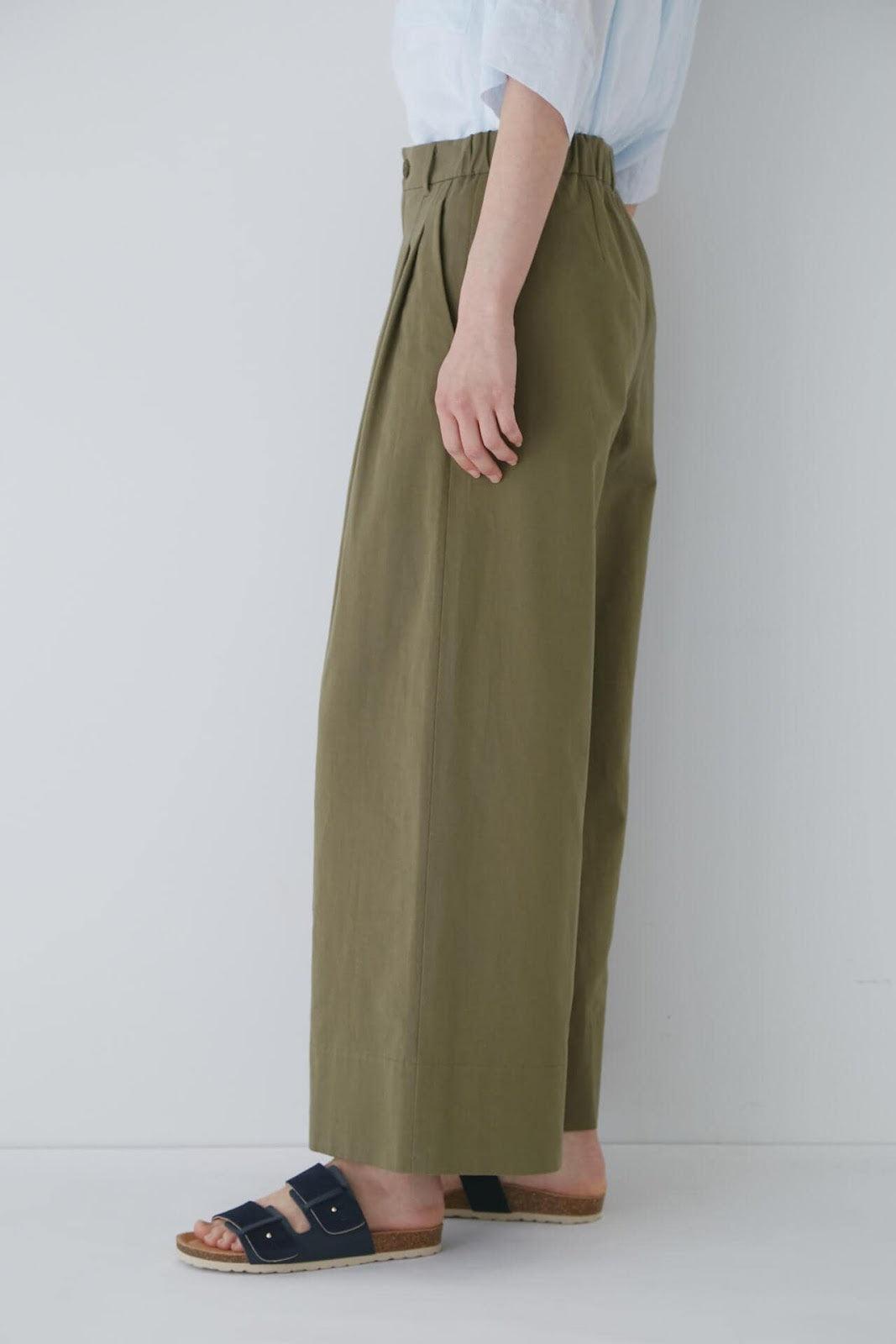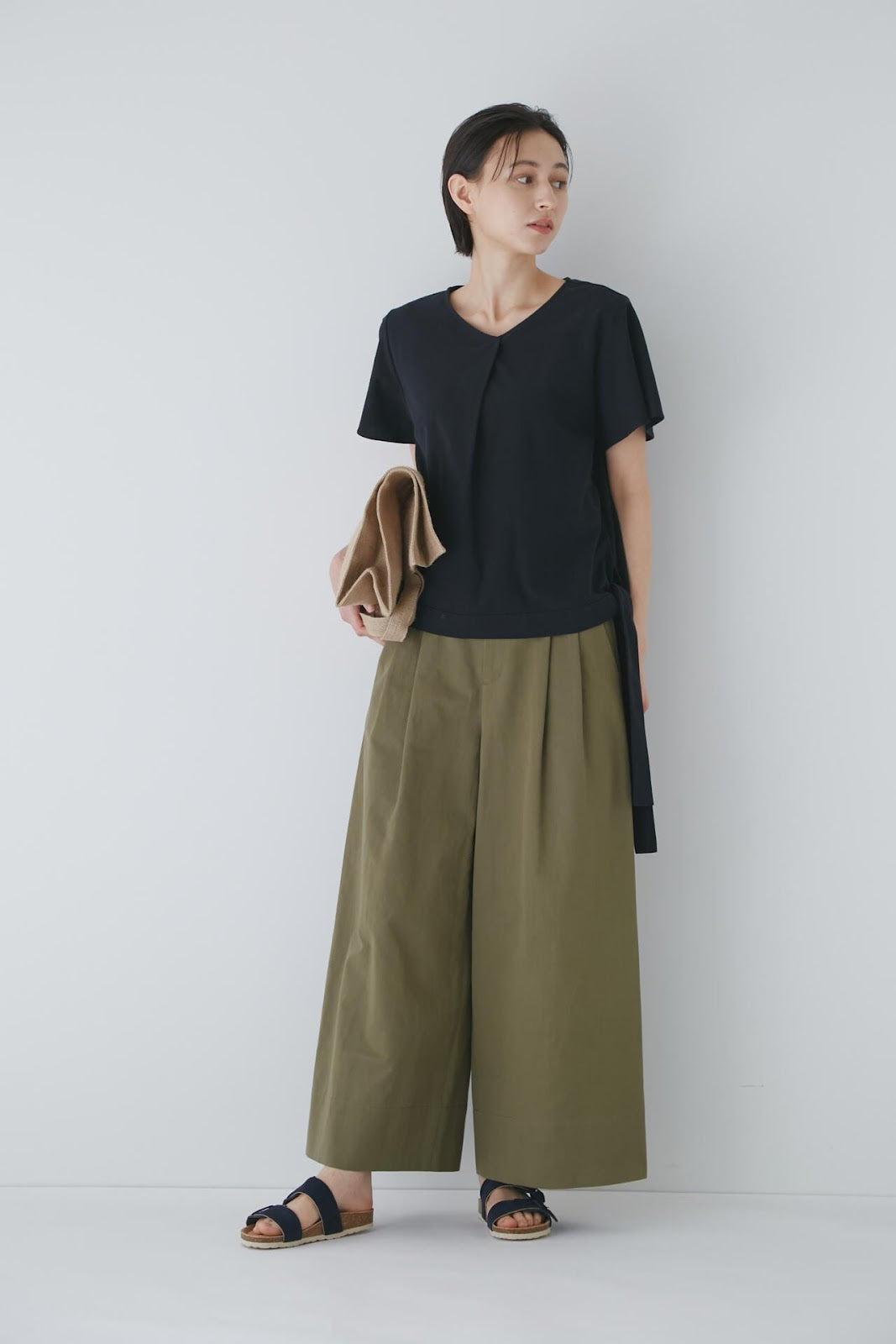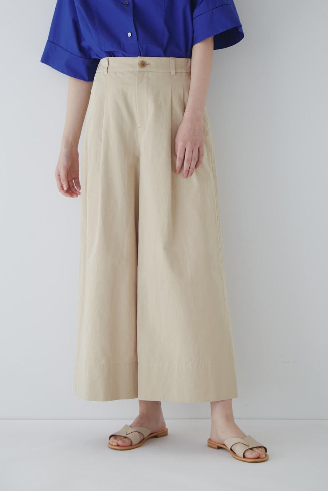 體積寬大的長褲,是夏季休閒風格的完美選擇 [設計要點] 寬大的長褲,具有大體積感,同時營造出輕鬆的感覺,深色兩襉細節和背部鬆緊帶規格使臀部遠離皮膚,腰部可通過腰帶背面的抽繩帶收緊,營造出利落的感覺。腰帶背面還有抽繩帶,可收緊腰部,使腰部看起來更加豐滿。面料採用輕薄的棉麻斜紋面料,帶有細微的橫向絨毛,給人一種夏日輕盈的感覺。面料採用雙圓頂處理,給人一種細緻入微的感覺。這款長褲的廓形豐滿,有很強的存在感,因此我們建議搭配剪裁得體的上衣或內搭上衣,這也是今年的典型風格。