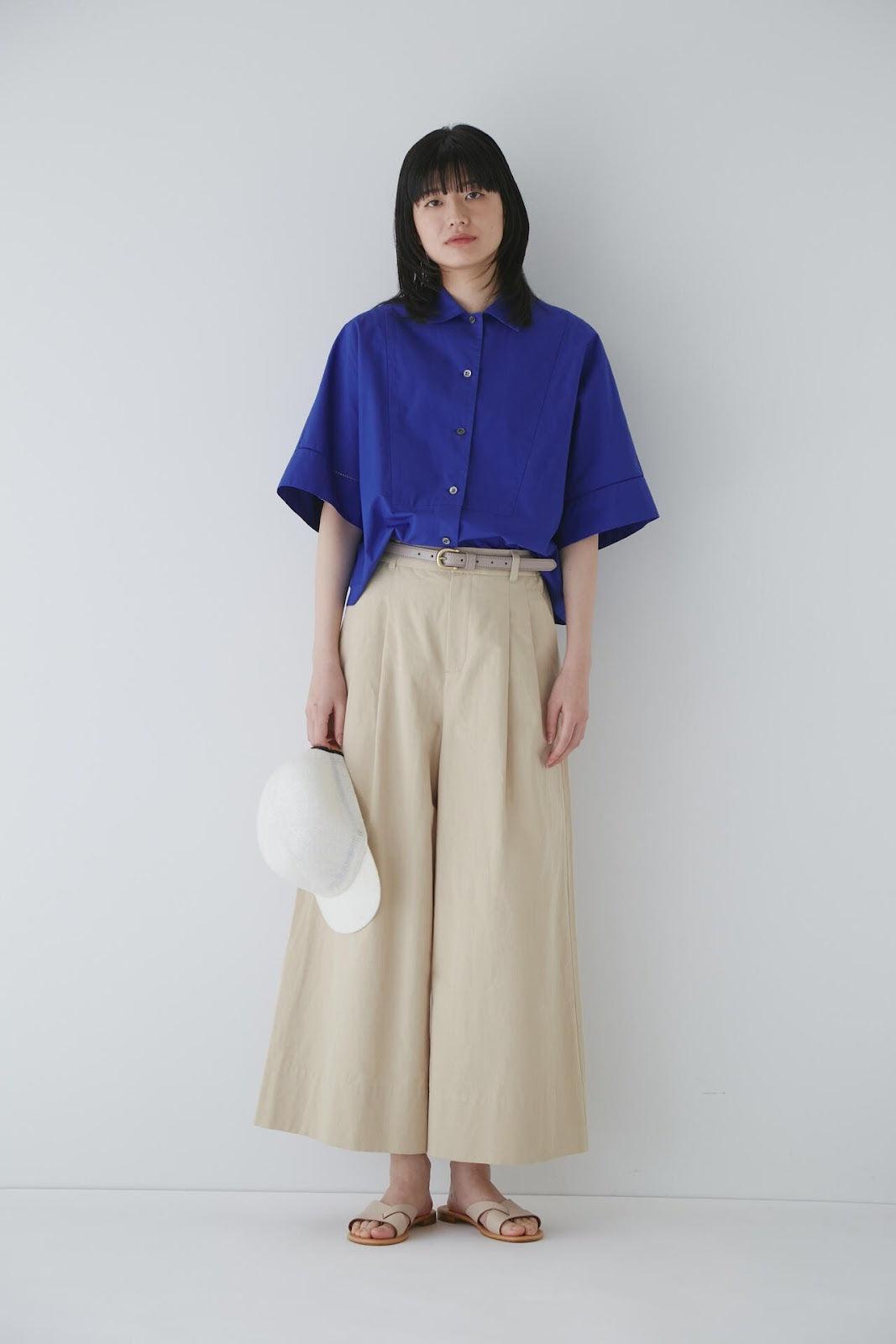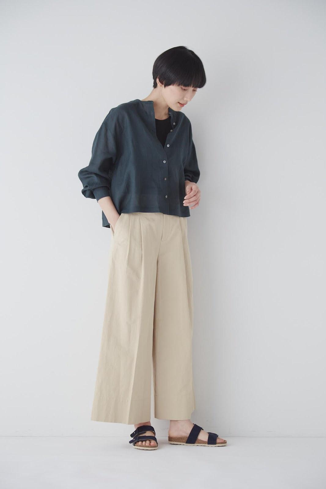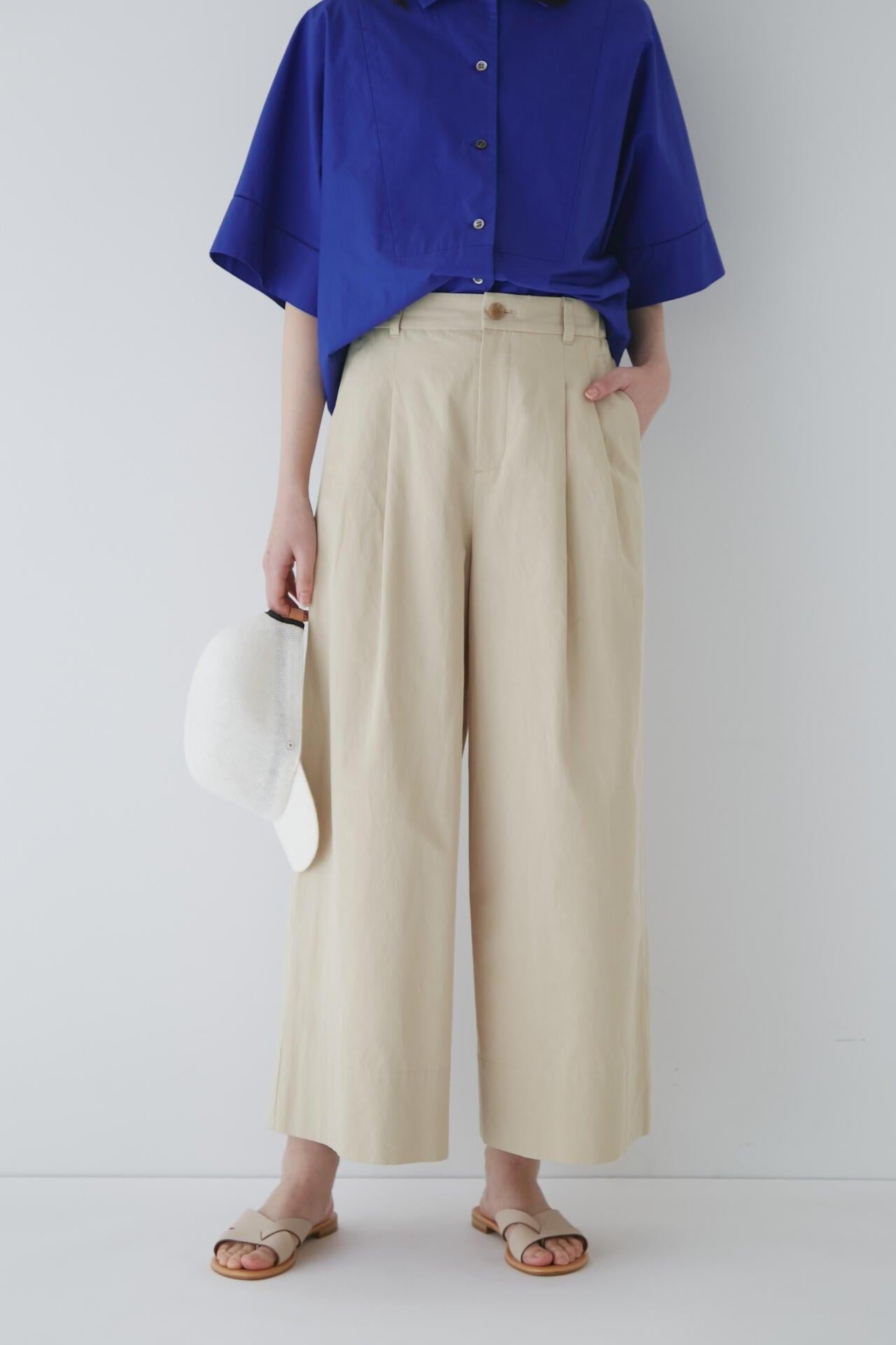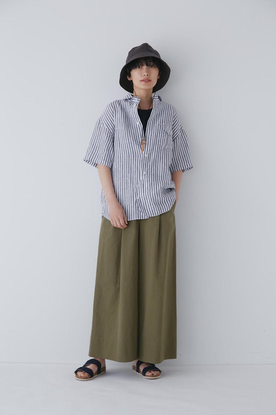 體積寬大的長褲,是夏季休閒風格的完美選擇 [設計要點] 寬大的長褲,具有大體積感,同時營造出輕鬆的感覺,深色兩襉細節和背部鬆緊帶規格使臀部遠離皮膚,腰部可通過腰帶背面的抽繩帶收緊,營造出利落的感覺。腰帶背面還有抽繩帶,可收緊腰部,使腰部看起來更加豐滿。面料採用輕薄的棉麻斜紋面料,帶有細微的橫向絨毛,給人一種夏日輕盈的感覺。面料採用雙圓頂處理,給人一種細緻入微的感覺。這款長褲的廓形豐滿,有很強的存在感,因此我們建議搭配剪裁得體的上衣或內搭上衣,這也是今年的典型風格。