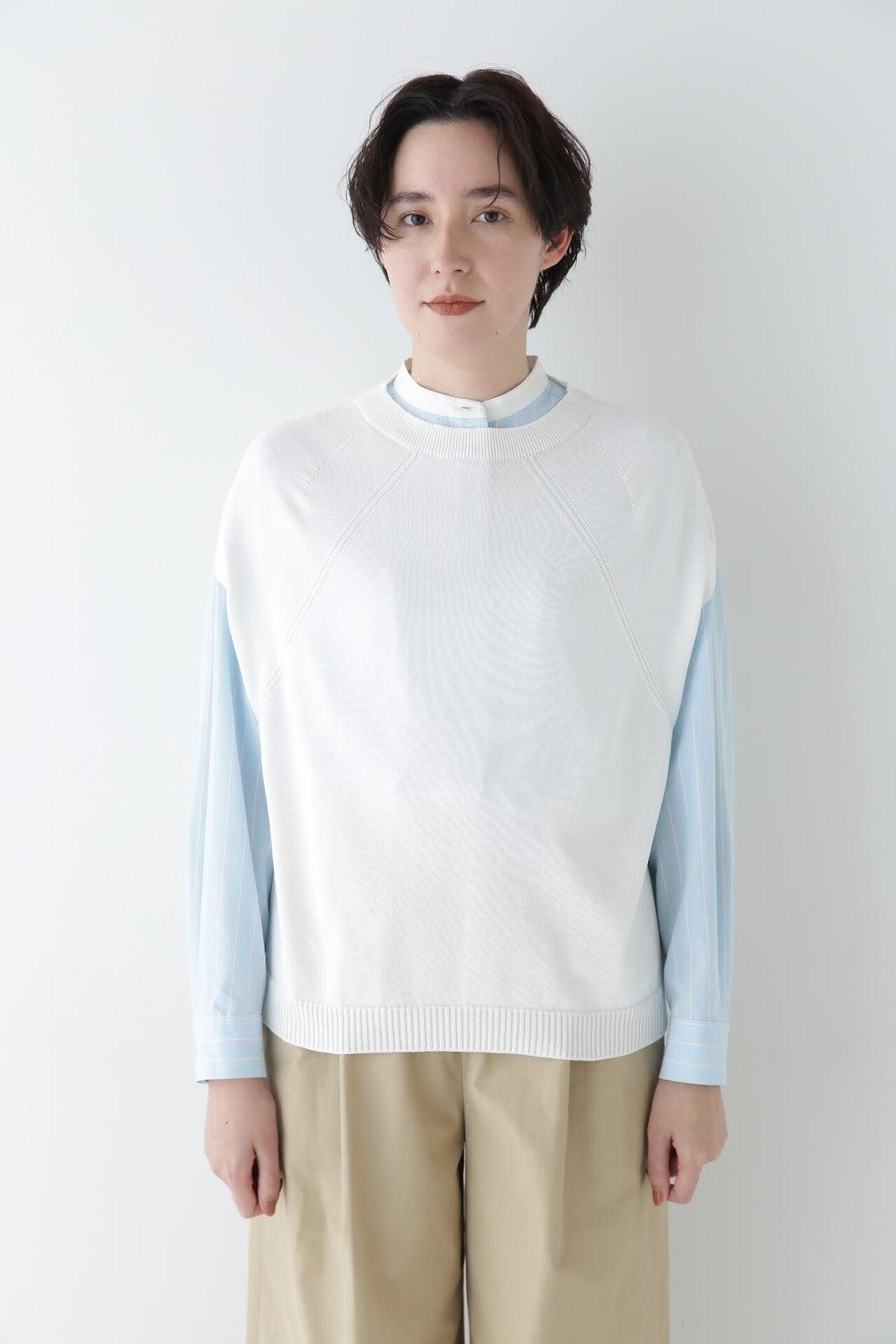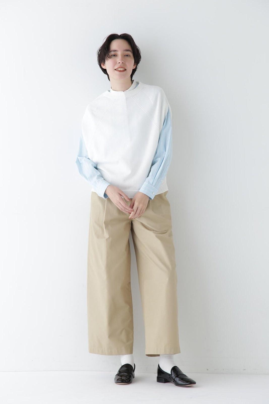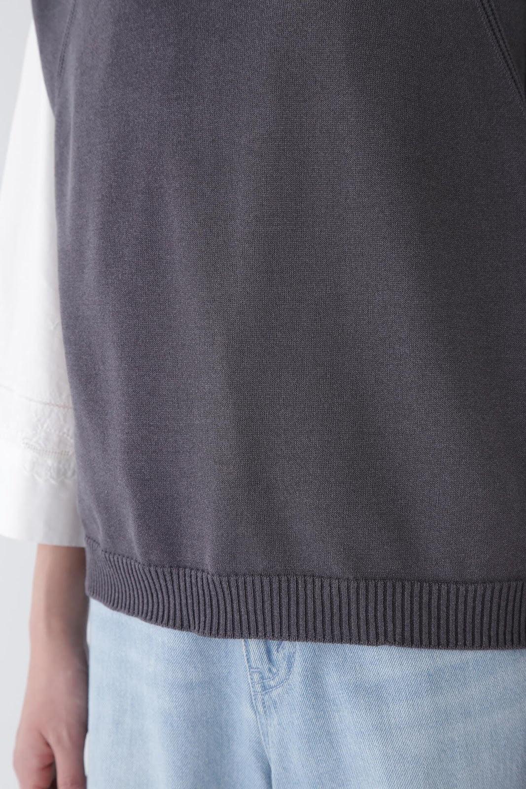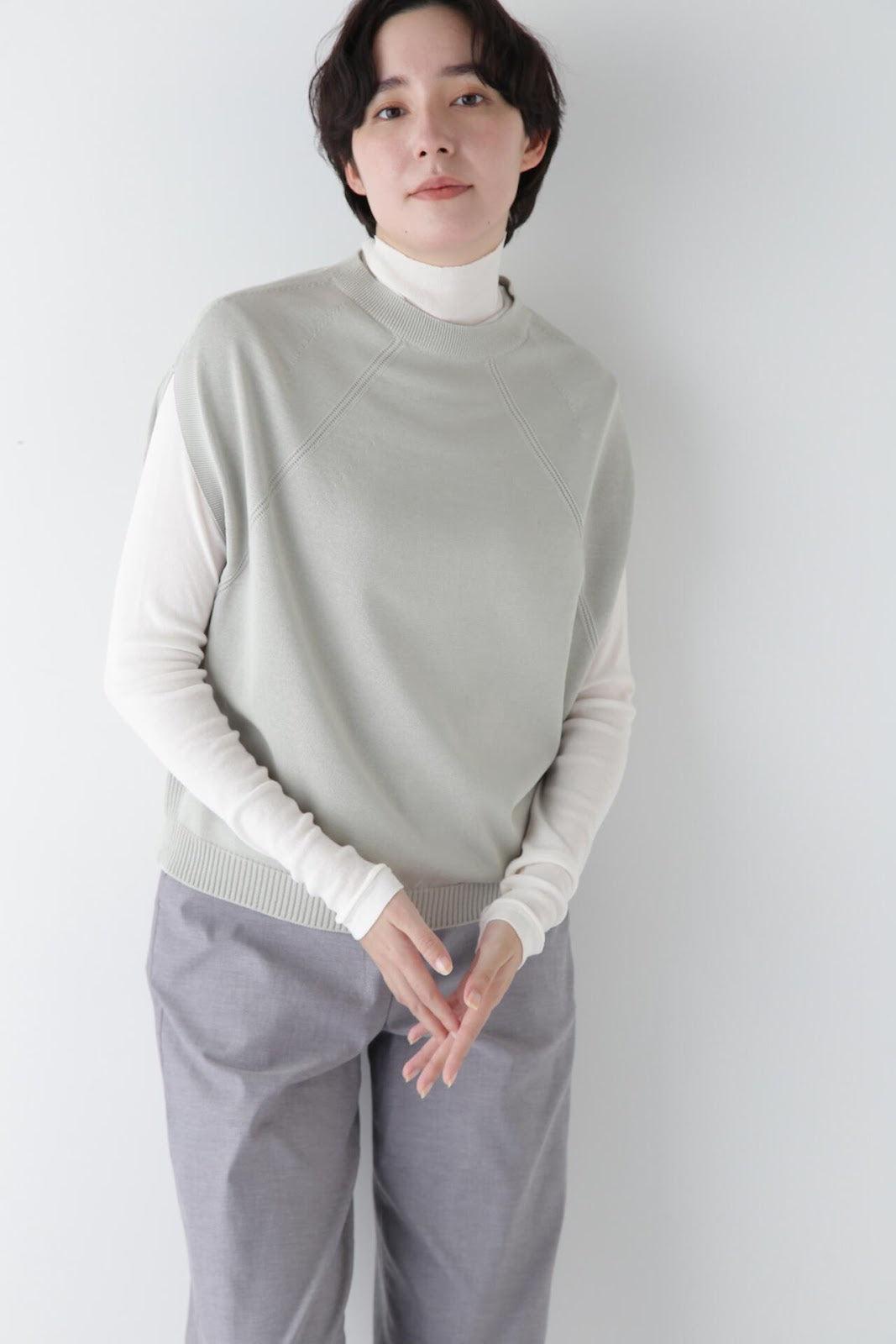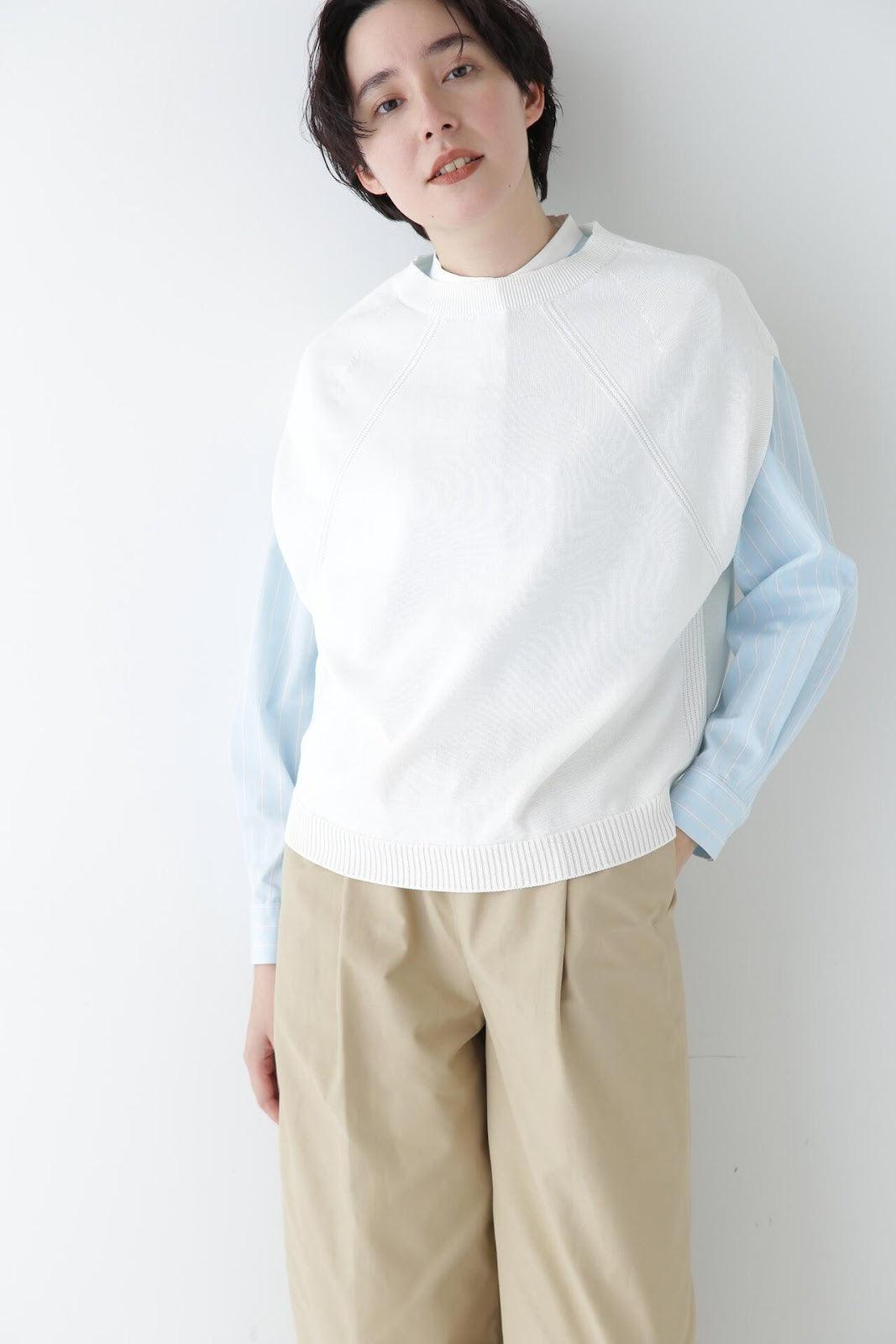 款式多樣的針織馬甲 [設計要點] 全成型針織圓領馬甲。其輪廓的特點是一條類似於raglan的斜線環繞在肩部。背心由棉尼龍製成,表面堅固清晰。乾爽的觸感讓您可以長期穿著。推薦搭配】這是一款針織馬甲,在溫暖的天氣裡可以單獨穿著。在整個季節裡,您都可以享受與襯衫和裁剪縫製的疊穿。