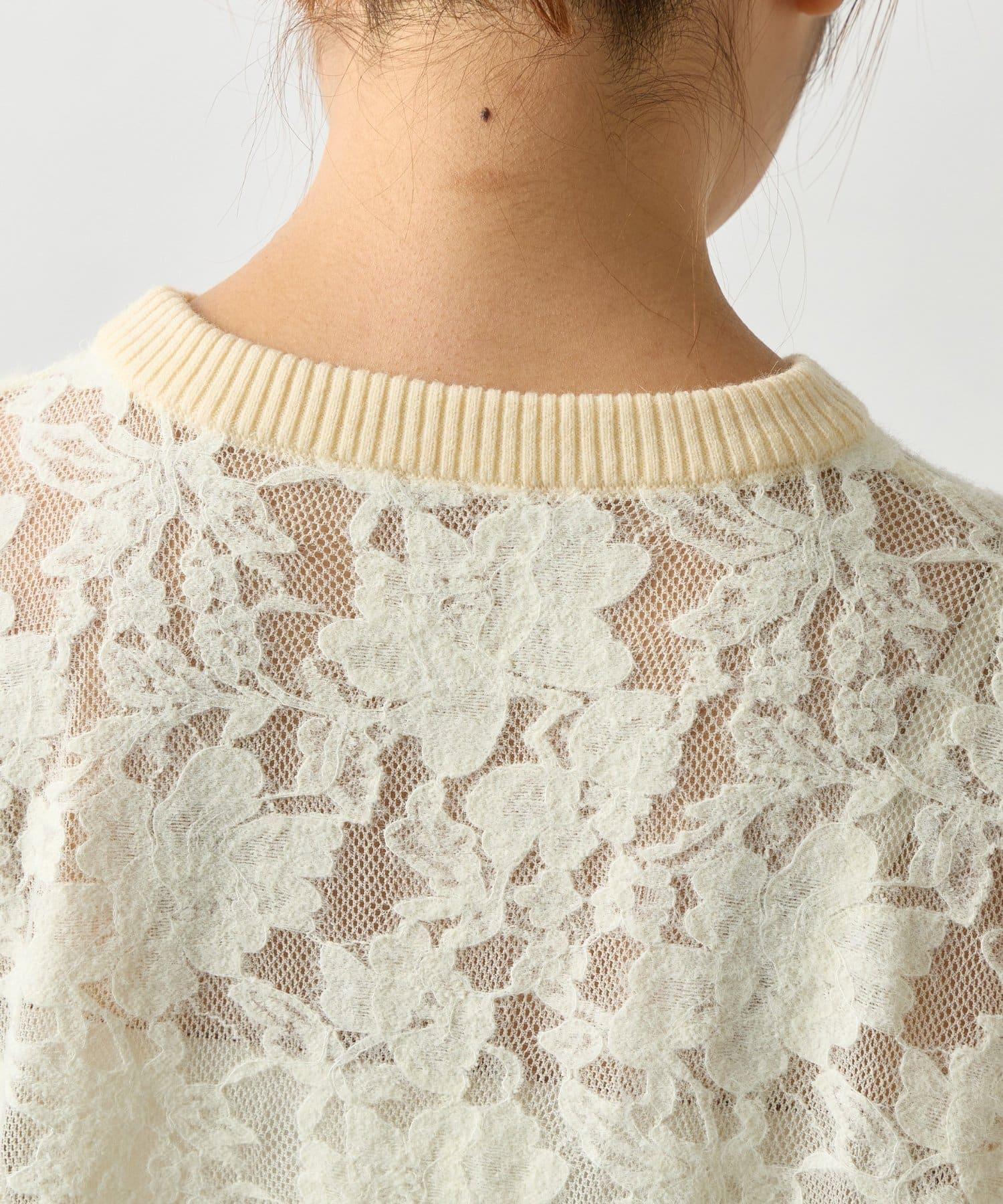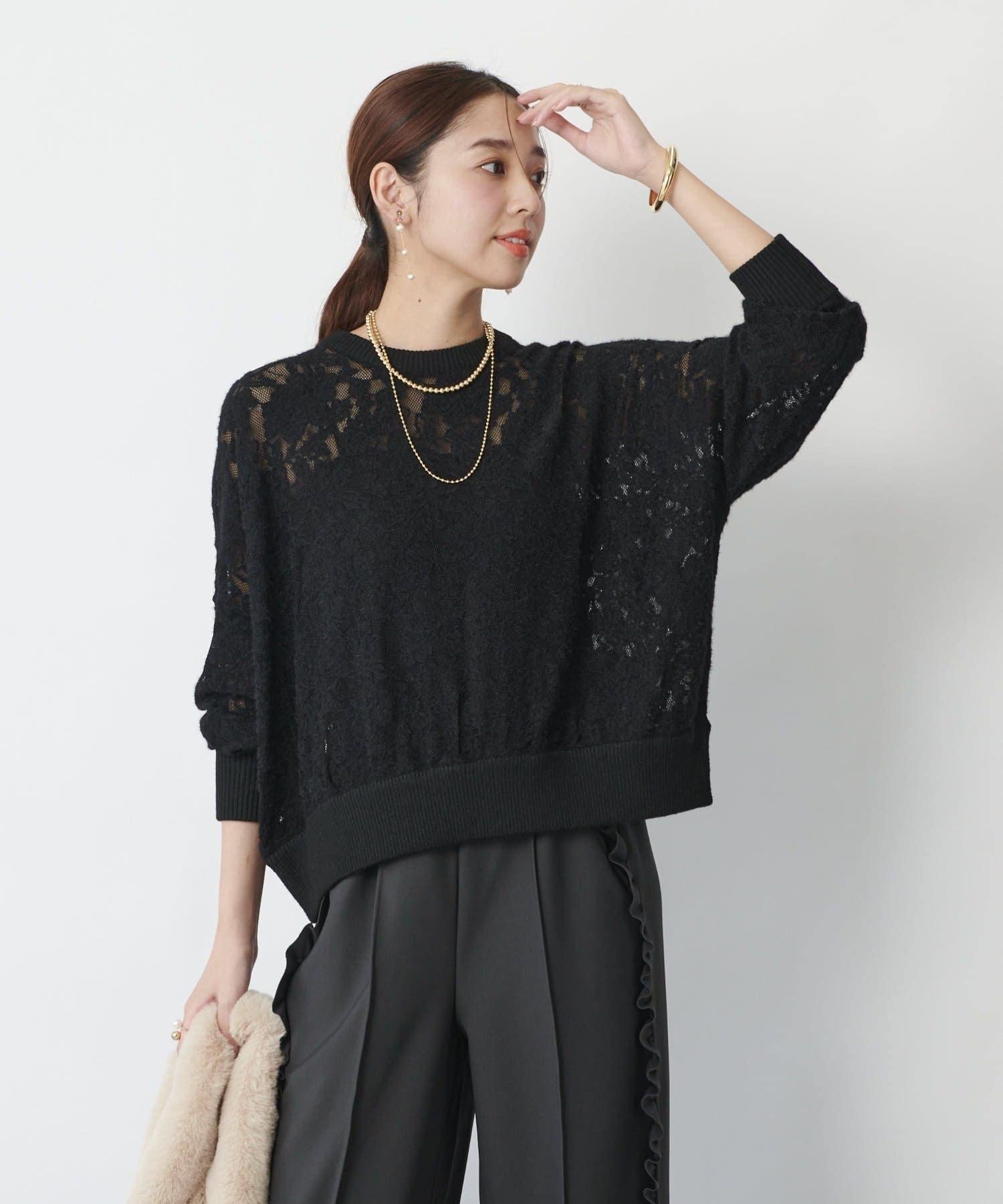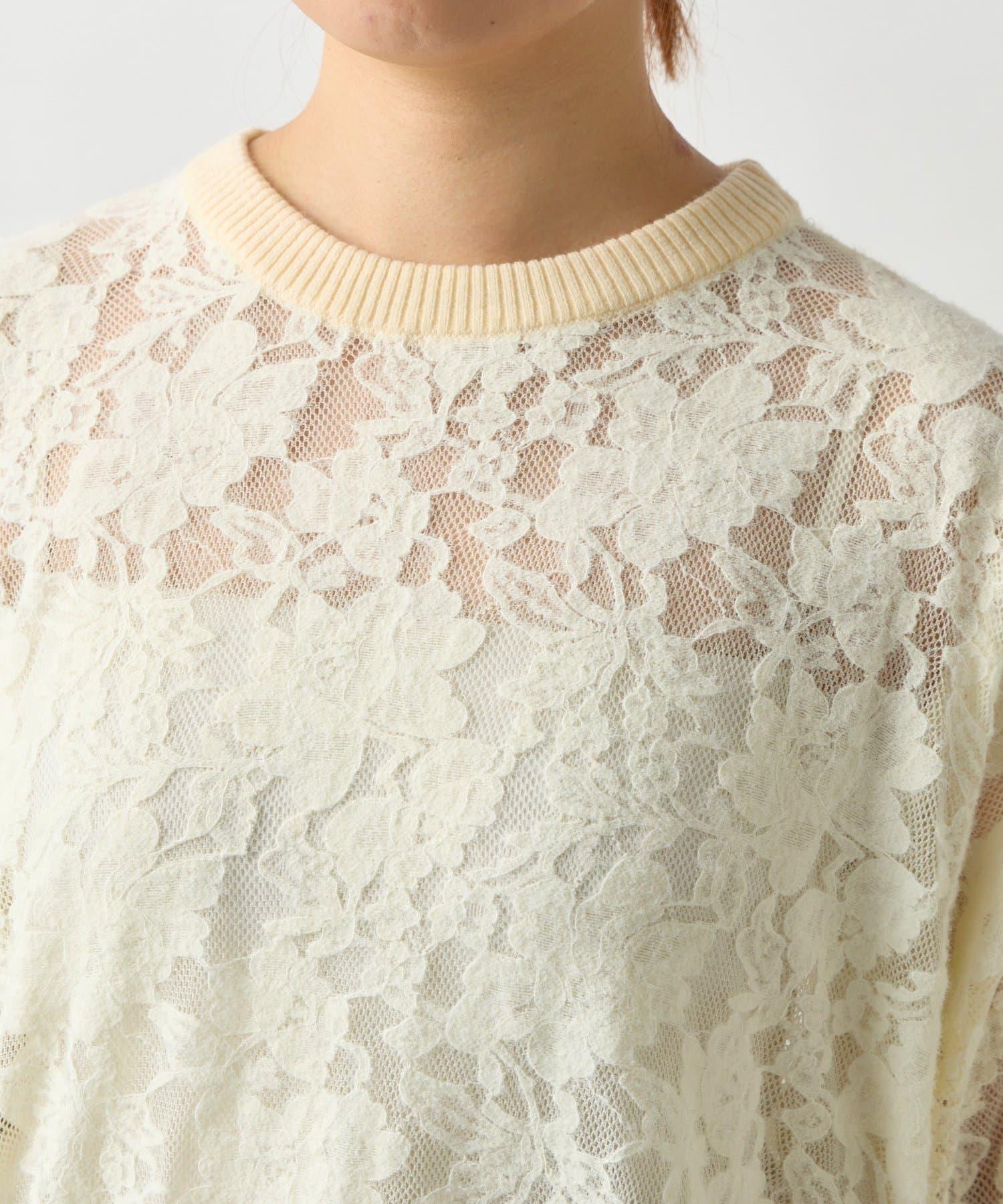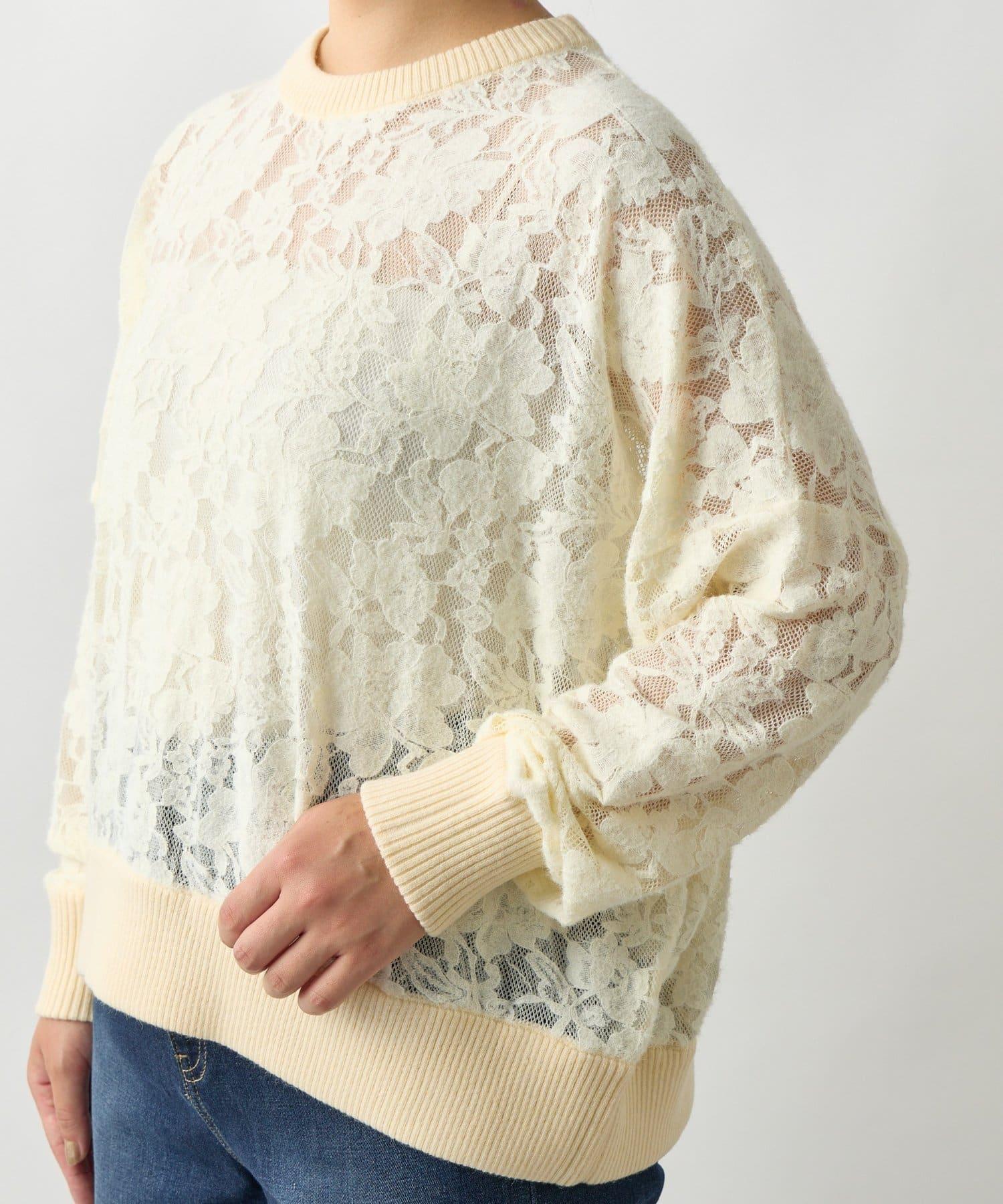 這款套頭衫具有成人女性的情調,採用精緻的蕾絲製成,具有奢華的透視感。