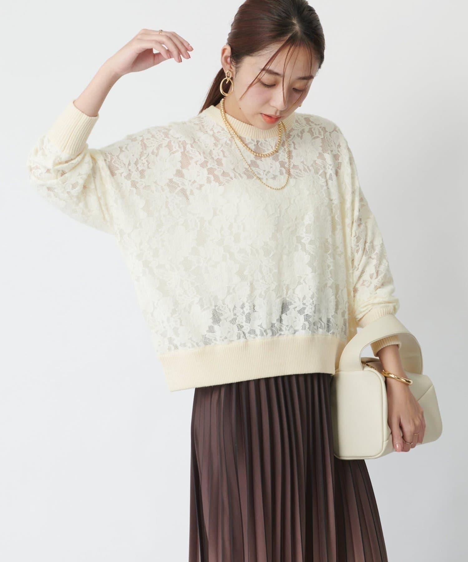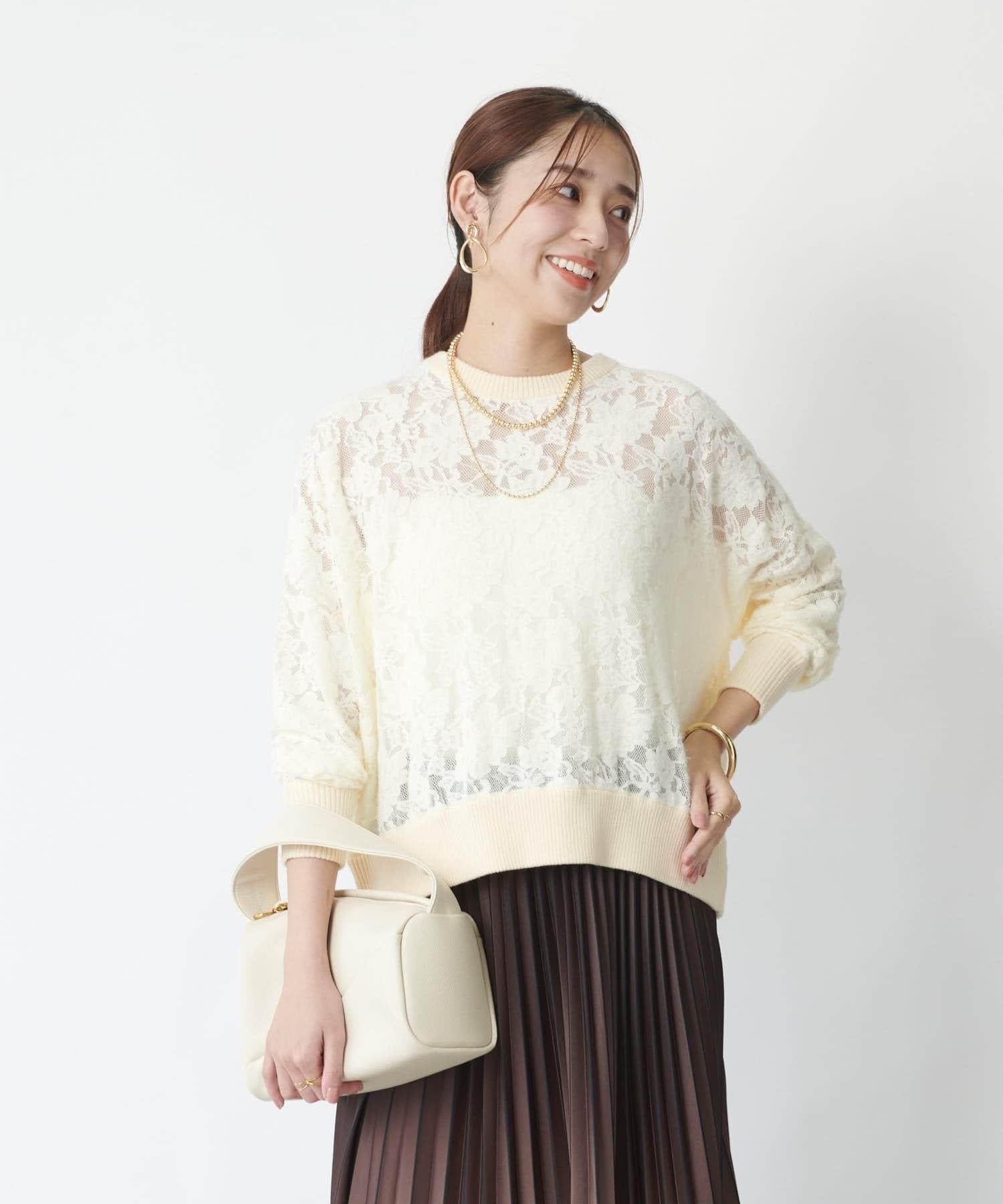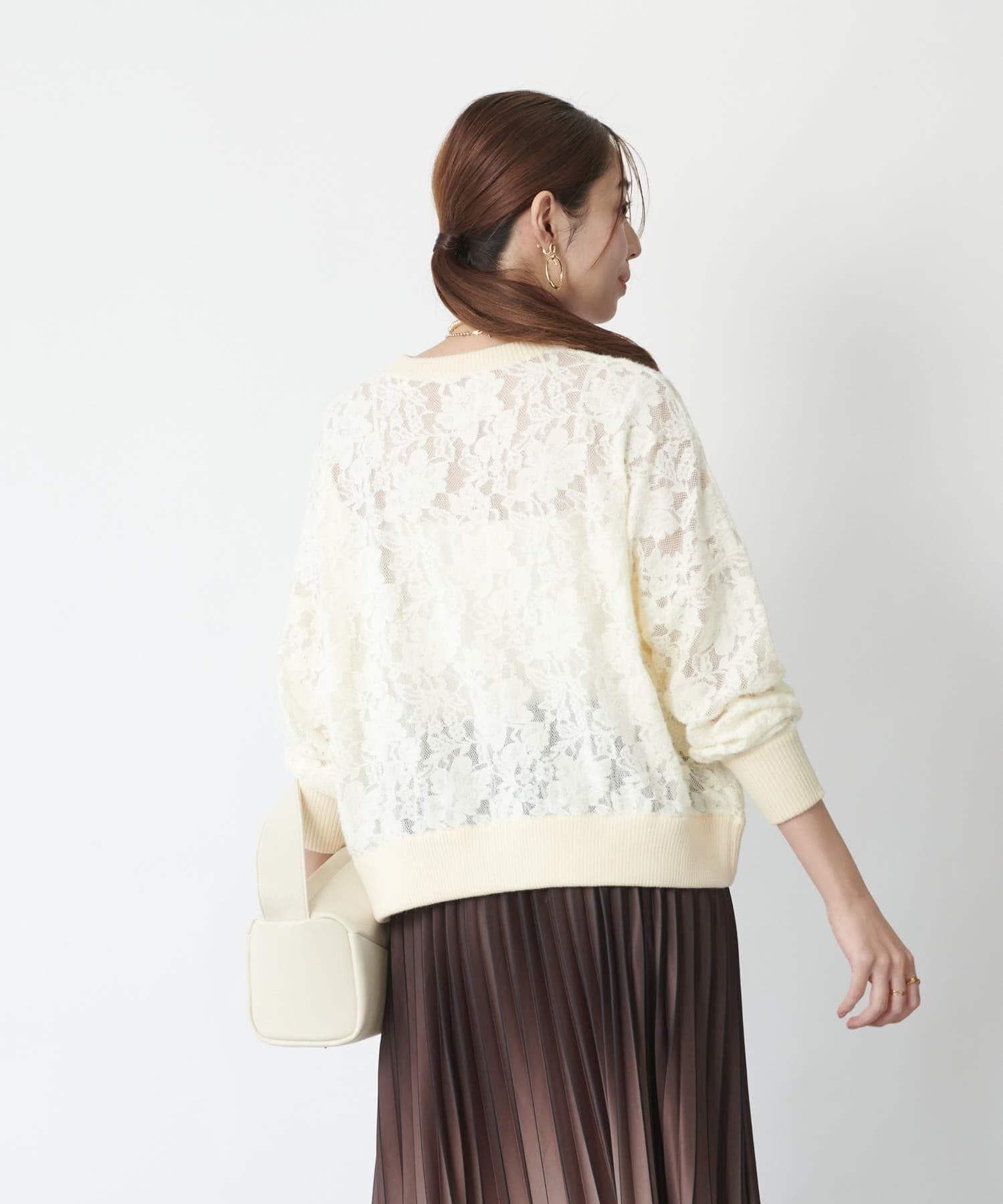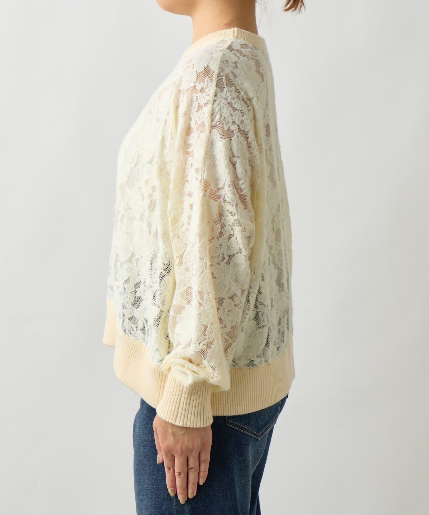 這款套頭衫具有成人女性的情調,採用精緻的蕾絲製成,具有奢華的透視感。